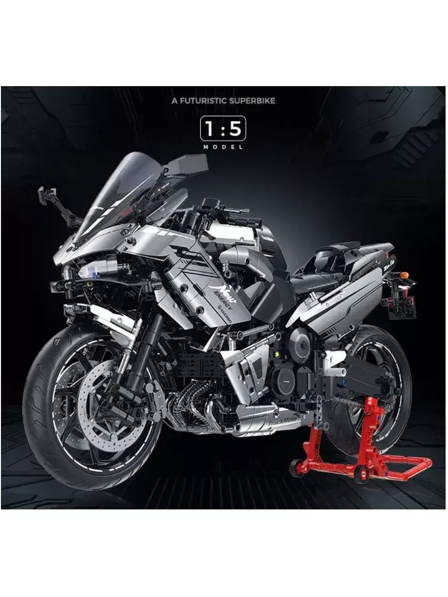 Погрузитесь в мир высоких скоростей и инженерного совершенства с конструктором «Мотоцикл Kawasaki Ninja H2R» из 2156 деталей! Этот детализированный набор позволяет собрать точную копию одного из самых мощных и быстрых спортбайков в мире — легендарного Ninja H2R.