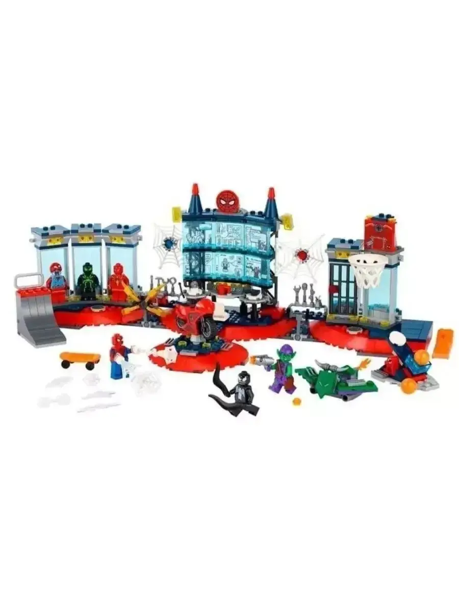 Юные супергерои будут в восторге от конструктора Super Heroes «Нападение на мастерскую паука». Игровой набор по фильму – это первая версия необычной квартиры супергероя. Классный конструктор сочетает в себе штаб супергероя, нашпигованный современной техникой, и крутую комнату тинейджера. В комнате отдыха Человека-Паука есть баскетбольное кольцо с механизмом вбрасывания мечей, компьютер, зона с напитками и рампа для скейтборда. В один миг берлога тинейджера становится высокотехнологичной штаб-квартирой Питера Паркера. В квартире есть оружие, железный костюм, камера и оборудование для тренировок. Тюремная камера пригодится, когда Веном и злодей Зеленый Гоблин решат заглянуть в гости без приглашения к Человеку-Пауку. Создавайте собственную фантастическую историю или переживайте любимые моменты фильмов. Конструктор с супергероями – отличный подарок ребенку на 8 лет на Новый год, день рождения, 1 Сентября или любой другой праздник.В крутом конструкторе есть 5 минифигурок, поэтому он подходит как для времяпрепровождения с друзьями, так и для одиночной игры.Скейтборд с рампой, мотоцикл, фотоаппарат, тюремная камера, оружие, зона с напитками и зона для баскетбола помогут разнообразить игровой процесс.Чтобы победить злодеев, ребятам придется использовать собственную смекалку.