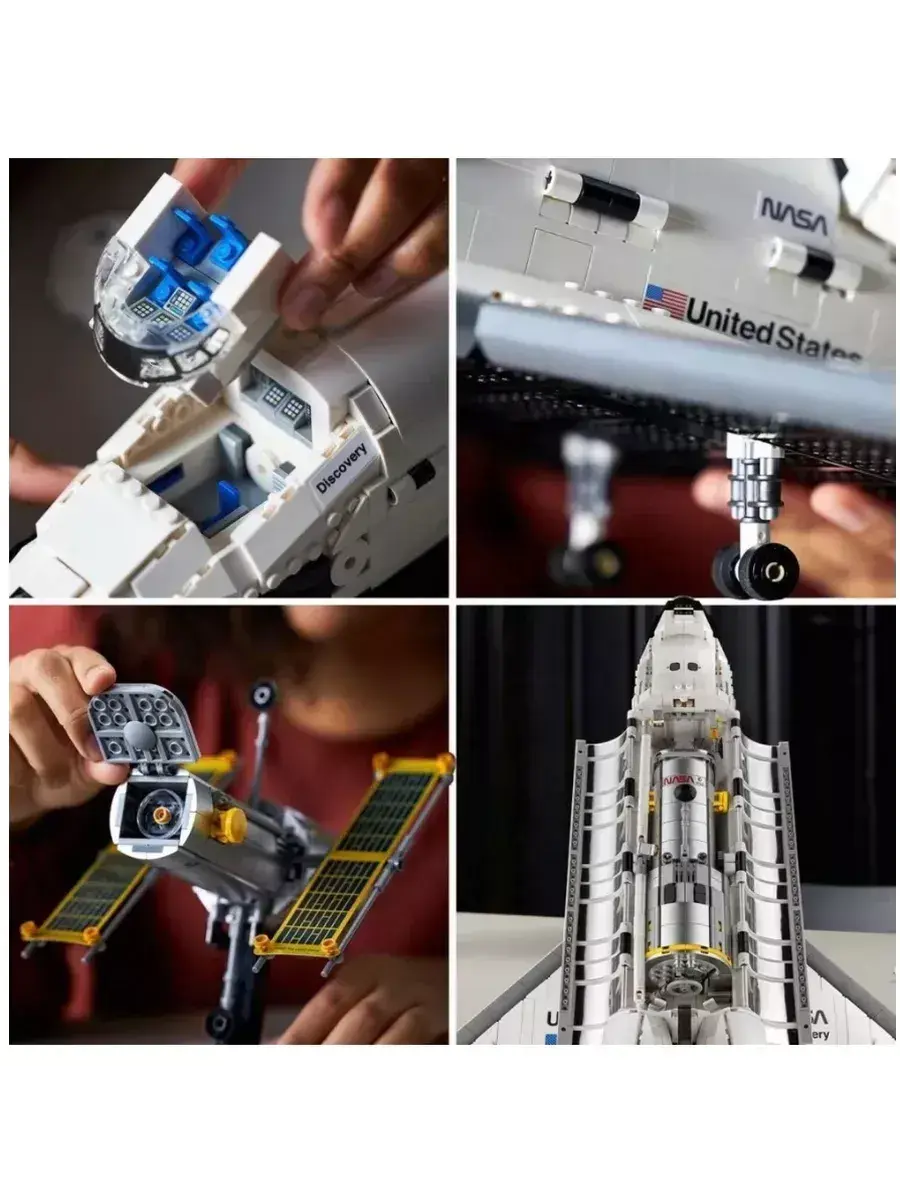 Конструктор состоит из 2354 элементов, из которых собирается не только культовая ракета, но и сам телескоп. Телескоп, как и сам шаттл, имеет удобную подставку и табличку со всеми техническими характеристиками. В собранном в виде шаттл обладает внушительными размерами, его длина составляет около 50 см. Космический корабль и телексом можно демонстрировать вместе или по отдельности, в любом случае, конструктор станет прекрасным дополнением любого интерьера и обязательно заинтересует и удивит всех ваших гостей. Каждая из моделей имеет массу интересных функций и возможностей. Корпус космического корабля плавно раскрывается, внутри него удобно располагается телескоп. Телескоп оборудован подвижными солнечными батареями и крышкой диафрагмы. Космический шаттл оснащен шасси и специальным посадочным механизмом, который позволит его мягко посадить. Командный модуль корабля максимально детализирован, что дает возможность почувствовать себя настоящим космонавтом.Каждый их нас мечтал в детстве стать космонавтом или просто задумывался : А что там, в небе? Только ли звёзды и планеты или существует иная жизнь? Ракетно-космические системы НАСА, Лунные корабли и научные базы, Шаттлы для исследования Марса и различные модули и модели для познания нашей, и не только, Солнечной системы помогут Вам раскрыть эти вопросы не выходя из комнаты! Соберите 3 ступени огромной ракеты, а потом установите ее на демонстрационную подставку или отправьте на орбиту. Чтобы завершить миссию по высадке людей на Луну, отсоедините ступени и состыкуйте командный модуль с луноходом. Конструктор поражает своей детализацией: мощное основание, фермы с площадками обслуживания, кабель-заправочные мачты, подъемные краны. Истинные ценители истории покорения космоса по достоинству оценят наборы!