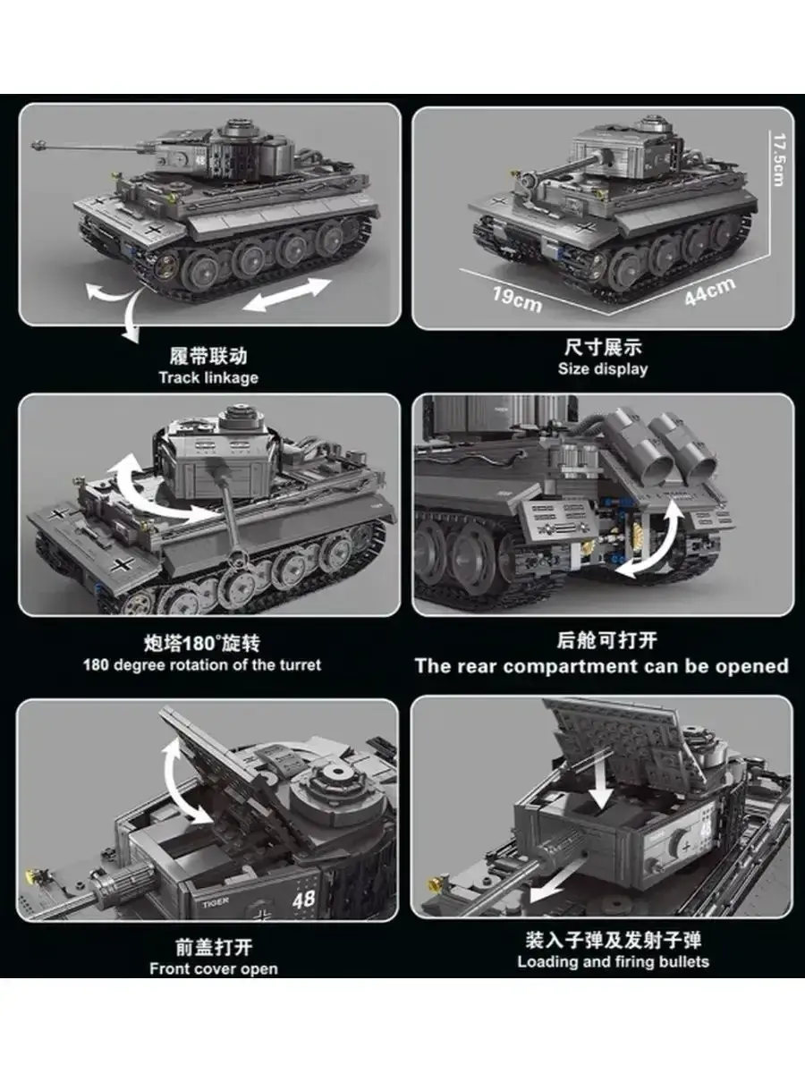 С мотором высокотехнологичный автомобиль T4016 2236 шт. Радиоуправляемый Танк военный бронированный автомобиль. Из деталей набора можно собрать очень детализированную модель немецкого тяжёлого танка времён Второй мировой войны, Башня, гусеницы подвижны. Башню можно снять и заглянуть внутрь. Детский военный конструктор – лучший подарок ребёнку. Яркая подарочная упаковка может стать отличным фоном для будущих гонок и сражений. Конструктор танк превращает развитие детей в увлекательное занятие. Смело покупайте этот детский конструктор и наслаждайтесь игрой вместе со своим ребенком. Этот яркий детский военный конструктор придётся по душе всем любителям занимательной сборки конструкторов военной техники. А это значит, что конструктор для мальчиков не оставит равнодушным никого. Пластиковый конструктор танк имеет красивую подарочную упаковку. Каждая деталь тщательно проработана, что делает игру реалистичнее. Конструктор оставит у вас самые лучшие впечатления. В процессе игры в конструктор для мальчиков ребёнок сам придумывает истории. Развивается воображение, навыки конструирования, мышление и мелкая моторика. Вложите в развитие ребёнка силы и время в первые годы жизни и получите в будущем великого изобретается!