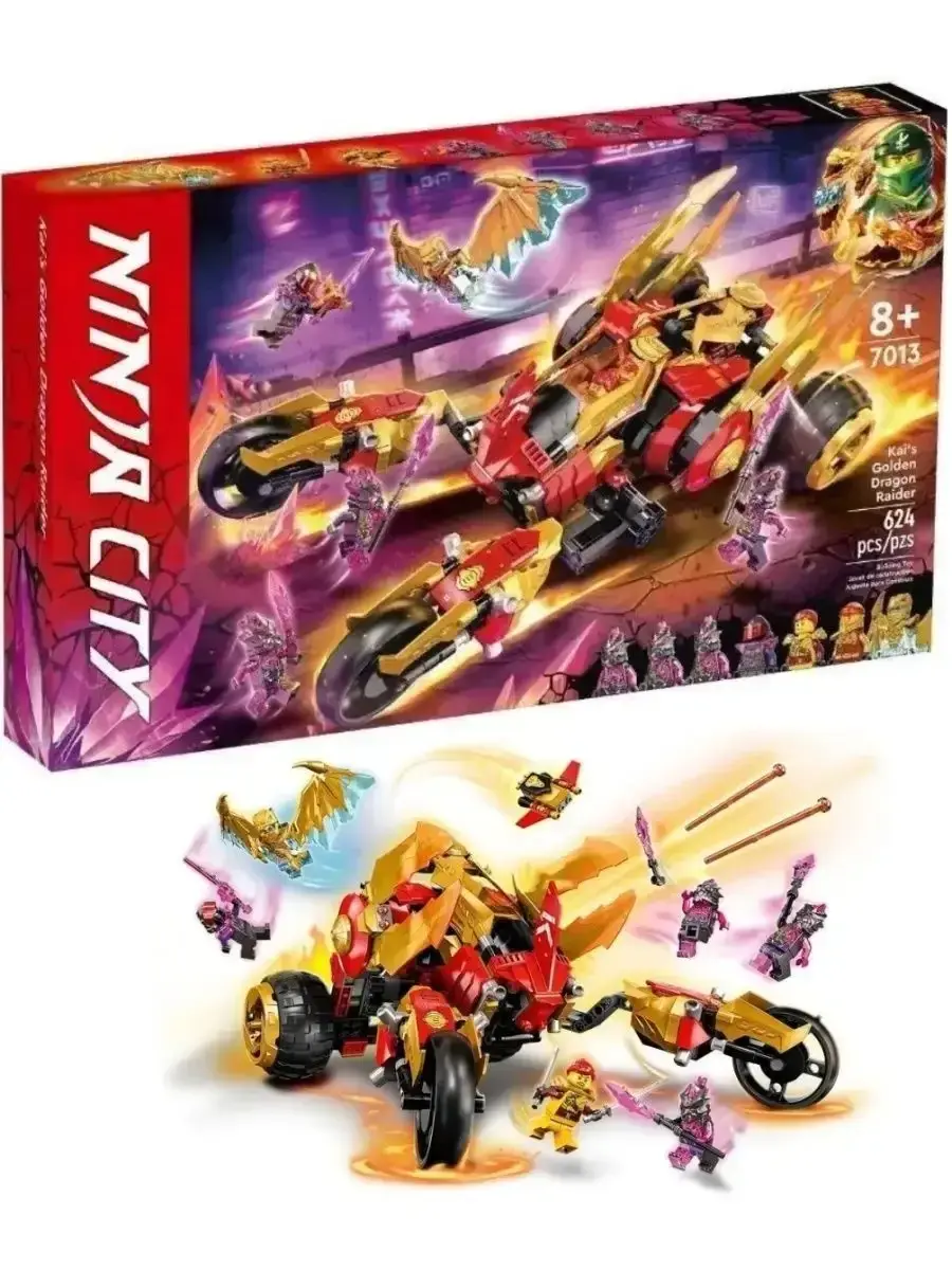Конструктор Ниндзя Багги Кая Золотой дракон — динамичный набор из 624 деталей, который позволит собрать мощный багги в стиле легендарного Кая и его Золотого дракона. Эта модель сочетает в себе скорость, стиль и боевые возможности, идеально подходя для захватывающих гонок и сражений в мире ниндзя.