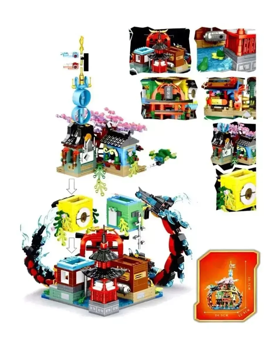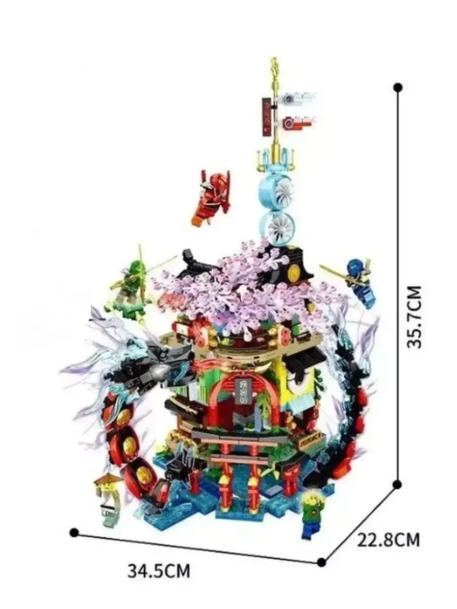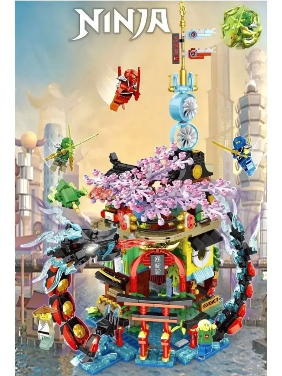 Конструктор Ниндзя Небесный Храм: Сады — грандиозный и детализированный набор из 1455 деталей, который погружает вас в волшебный мир древних тайн и величественной архитектуры. Соберите величественный Небесный Храм, окружённый живописными садами с цветущими деревьями, изящными мостиками и скрытыми аллеями. Этот храм — символ гармонии и силы, где ниндзя обучаются мудрости и боевым искусствам.
