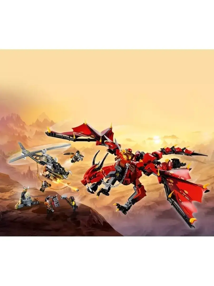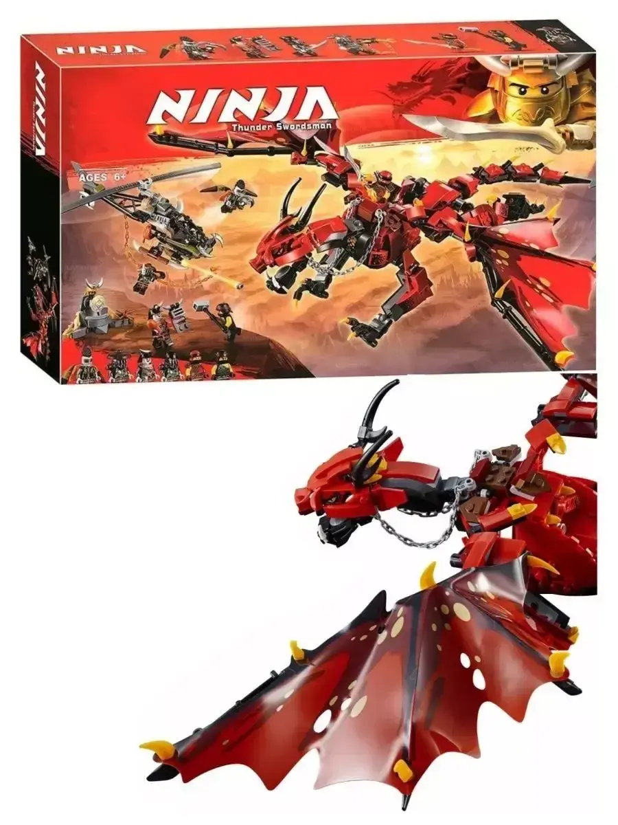 Конструктор Ниндзя Первый страж — это масштабный набор из 882 деталей, с которым ребёнок сможет собрать легендарное существо, охраняющее древние тайны мира ниндзя. Модель выполнена с потрясающей детализацией: подвижные лапы, хвост, челюсти и крылья придают дракону реалистичный и грозный облик. Первый страж сочетает в себе мощь, мудрость и волшебство, делая игру ещё более захватывающей.