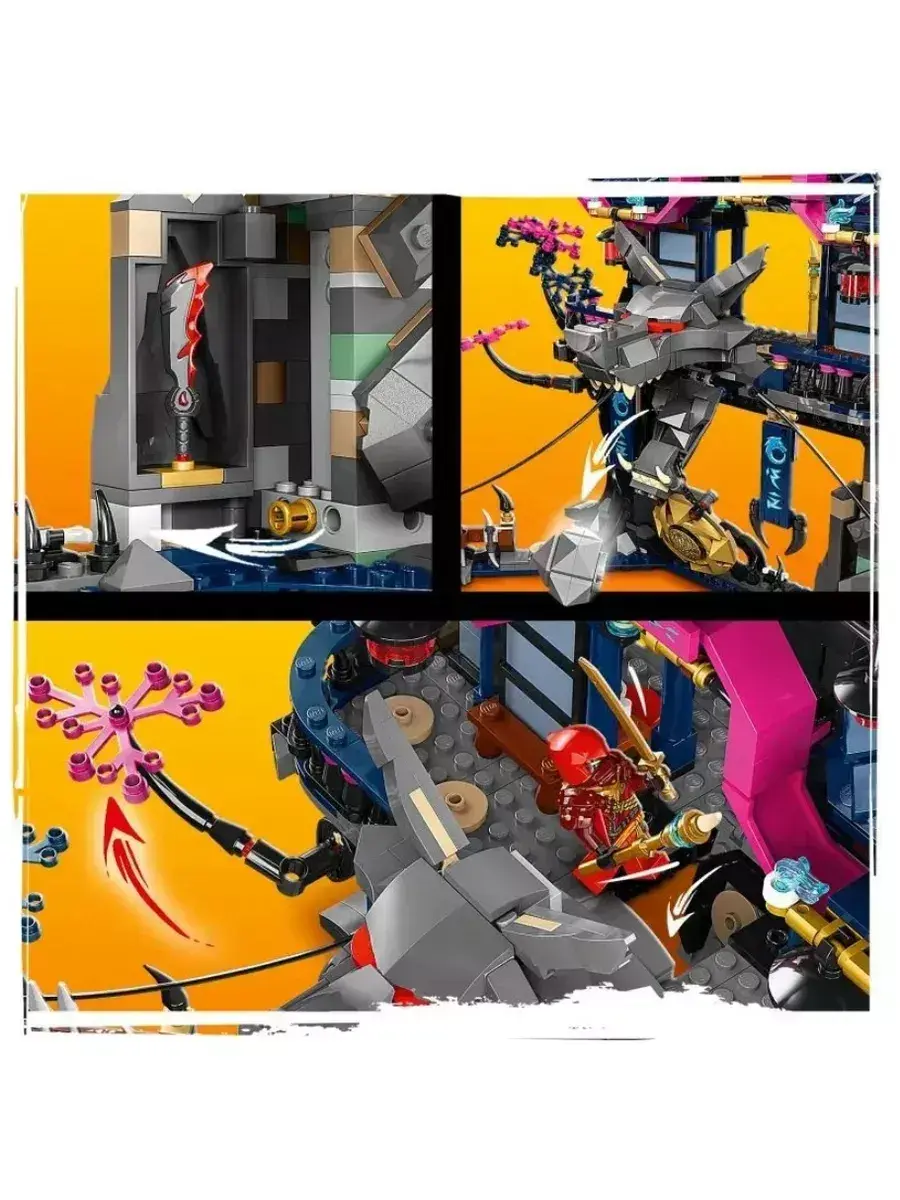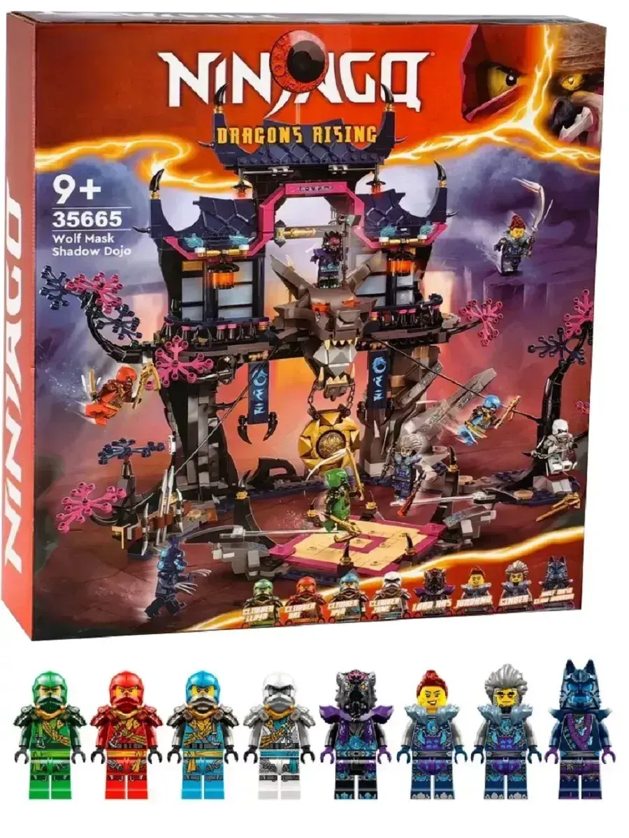 Конструктор Ниндзя Теневой Додзе Маска Волка — это масштабный и детализированный набор из 1190 деталей, который погружает ребёнка в загадочный мир ниндзя и таинственных боевых искусств. Модель представляет собой сложное додзе — тренировочный комплекс, украшенный символикой волка и наполненный секретными комнатами, ловушками и скрытыми механизмами. Благодаря продуманной архитектуре и богатой детализации, этот набор станет настоящим центром игровых приключений.