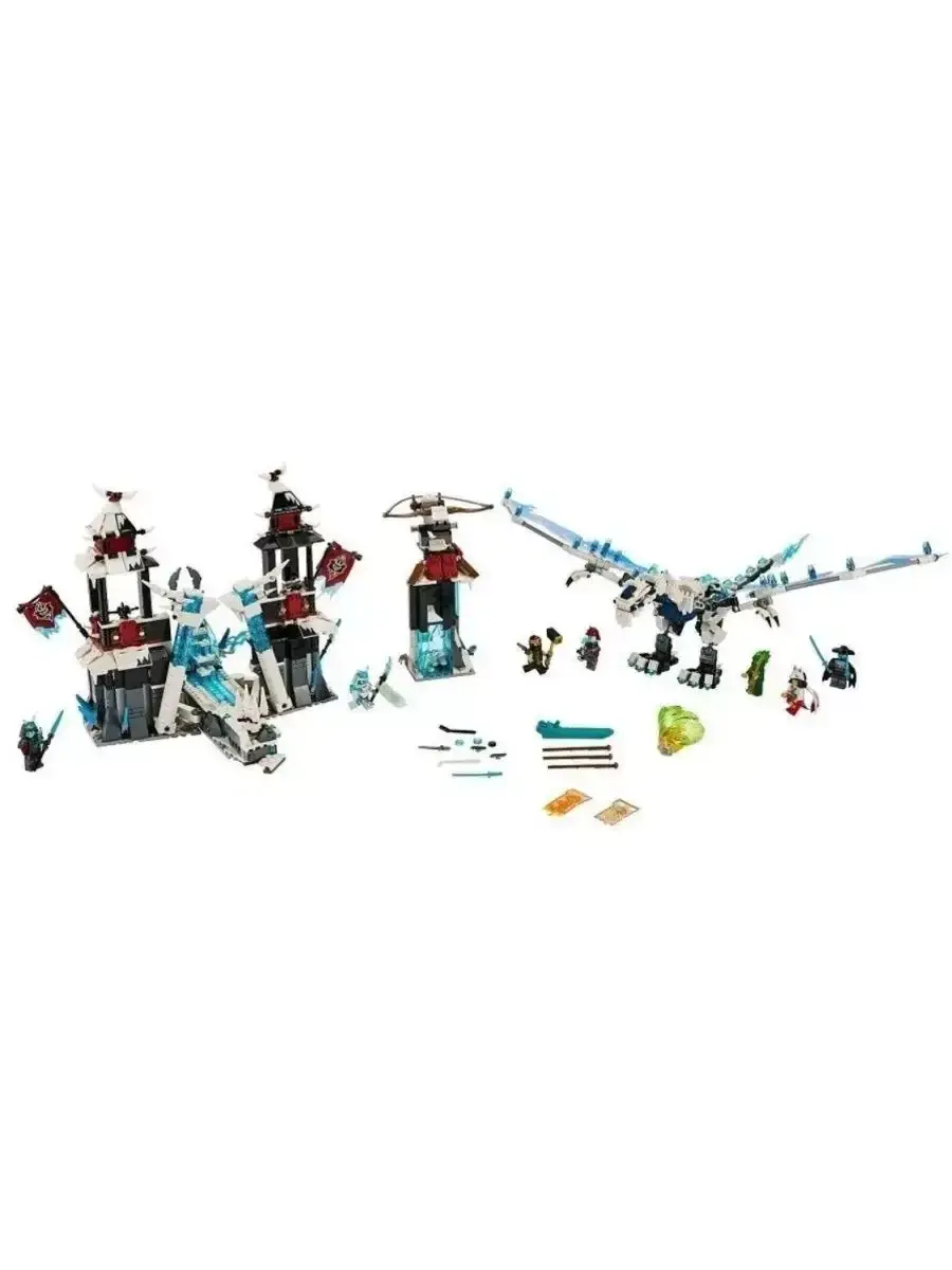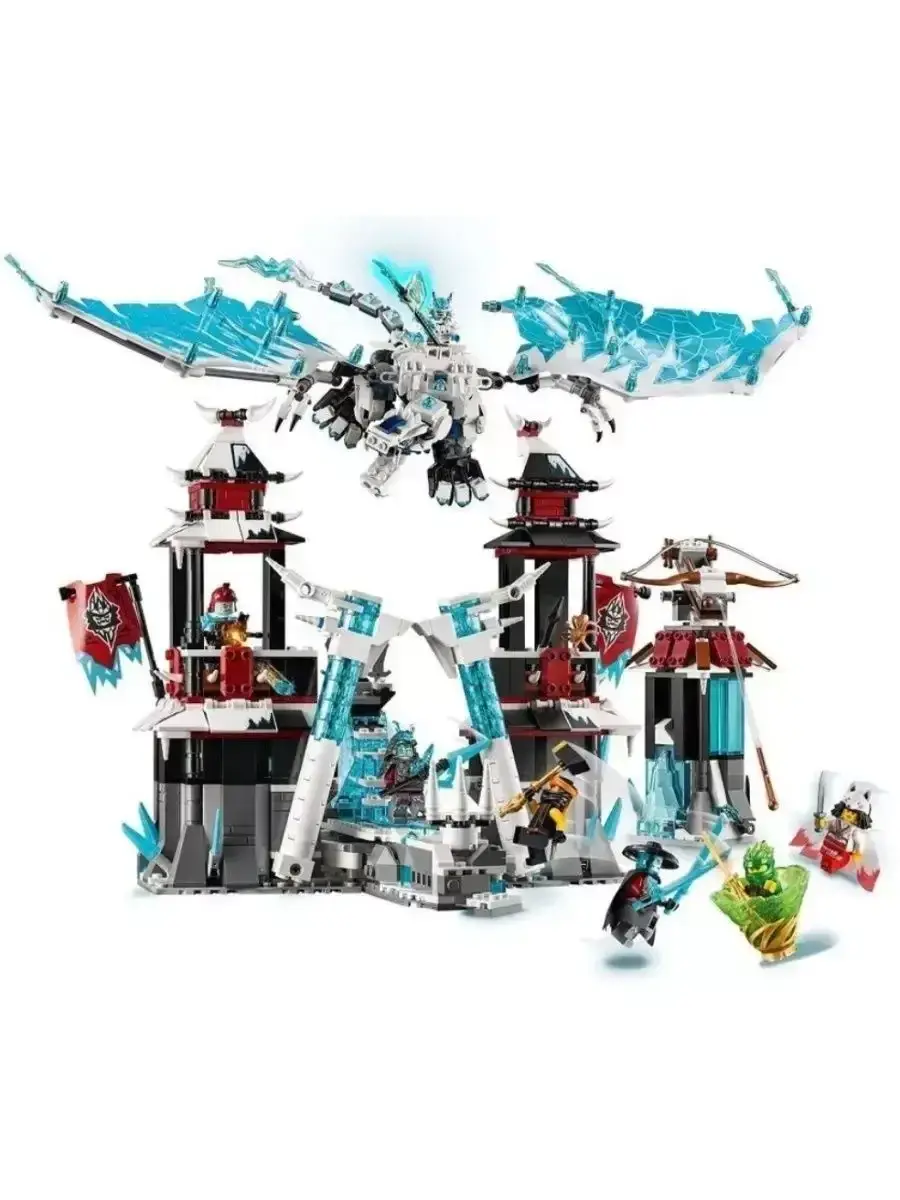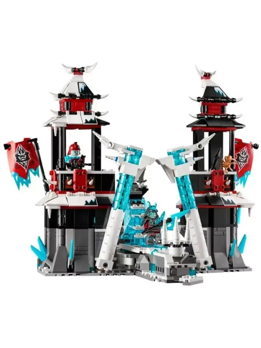 В комплект входят минифигурки ниндзя, проклятого императора и его приспешников, а также разнообразное оружие, аксессуары и интерактивные элементы, которые делают игру живой и динамичной. Множество подвижных деталей — открывающиеся ворота, вращающиеся башни, тайники и механизмы — позволяют создавать увлекательные игровые сценарии и погружаться в захватывающие приключения.
