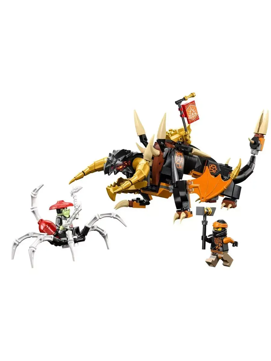 Конструктор Ниндзя Земляной Дракон Коула — это увлекательный набор из 285 деталей, который перенесёт ребёнка в мир захватывающих приключений и легендарных ниндзя. Модель представляет собой мощного Земляного Дракона, символизирующего силу и мудрость стихии земли, в сопровождении героя Коула. Яркий дизайн с выразительными элементами и подвижными частями делает игру интересной и динамичной.