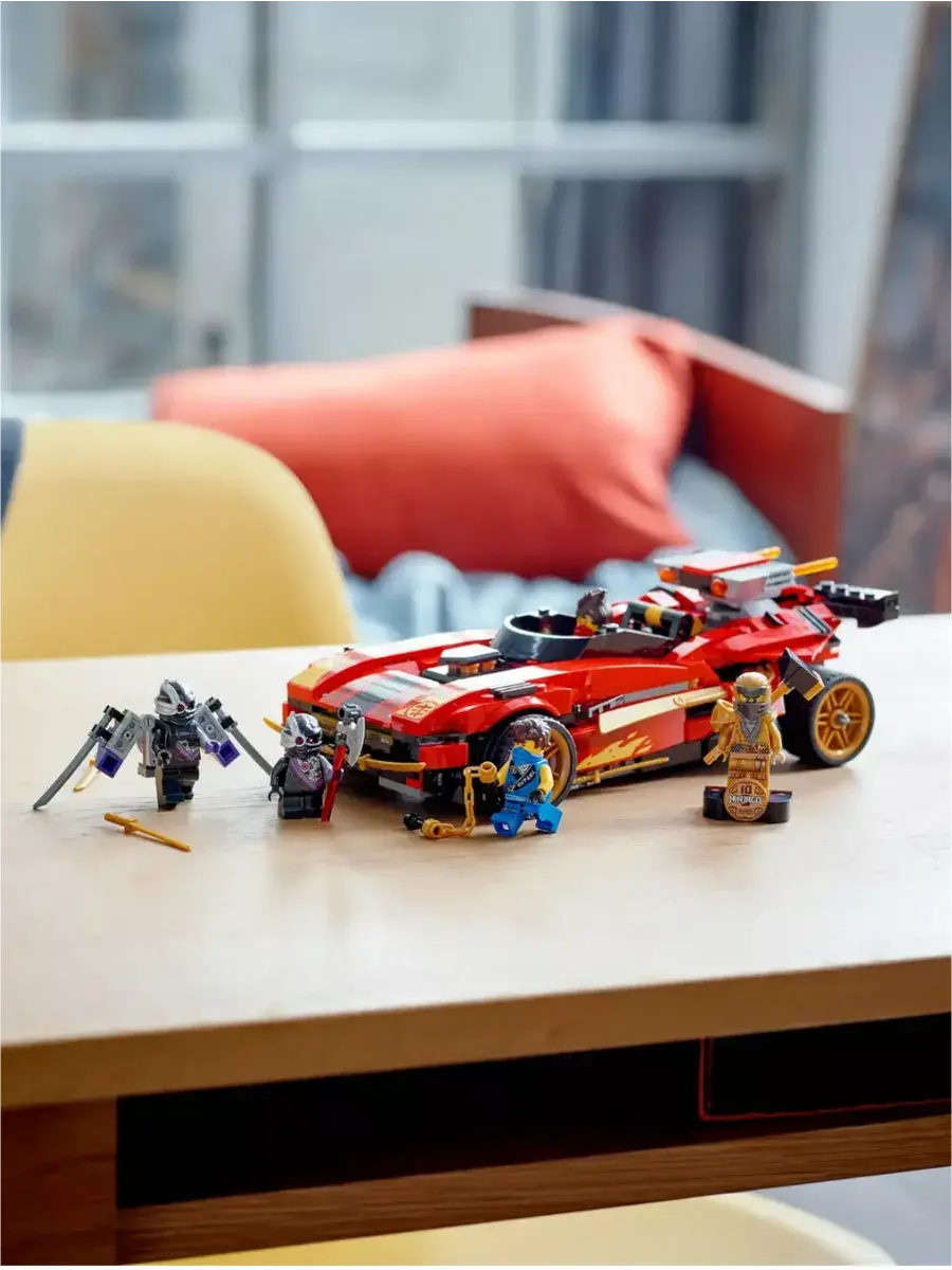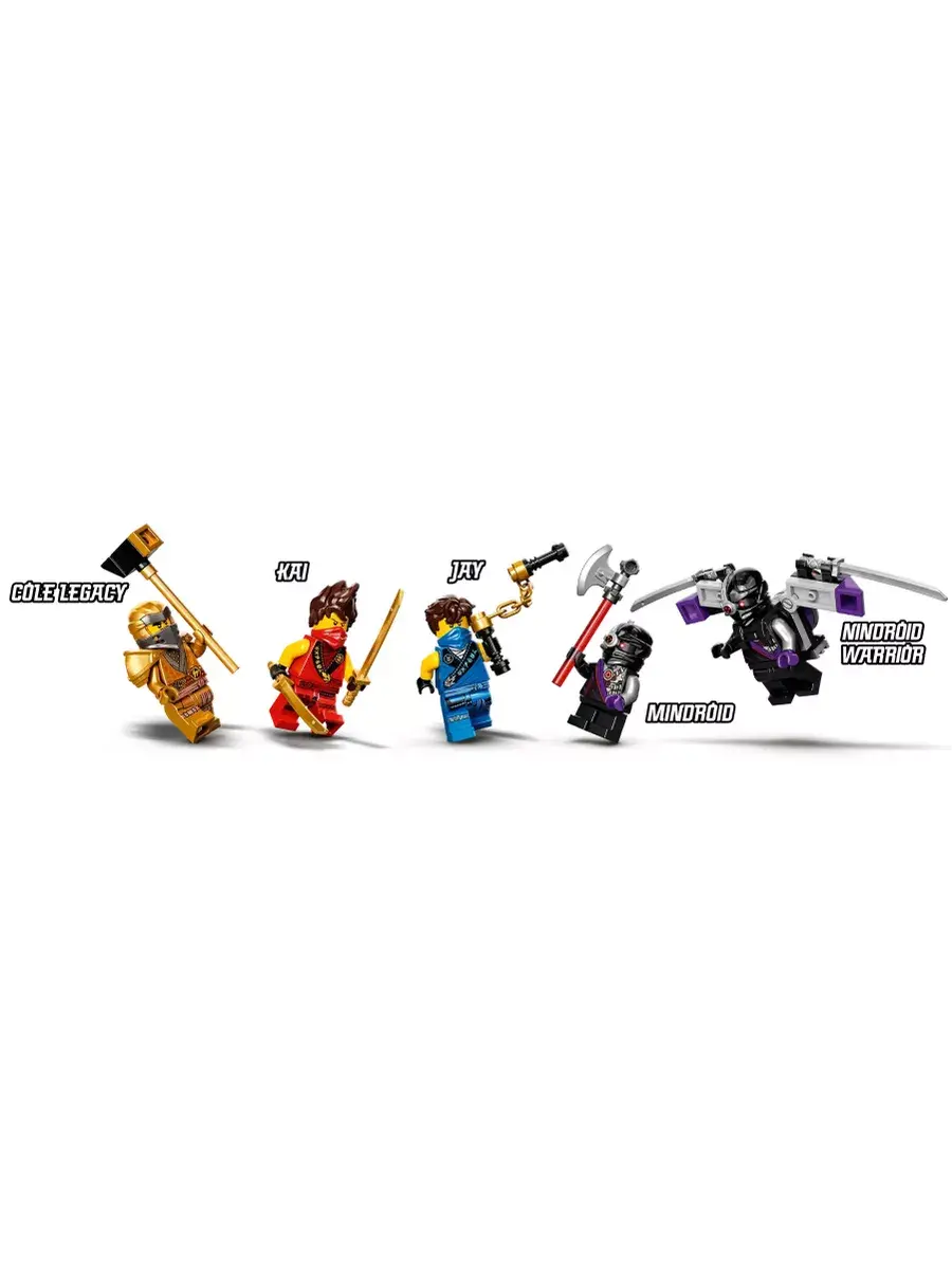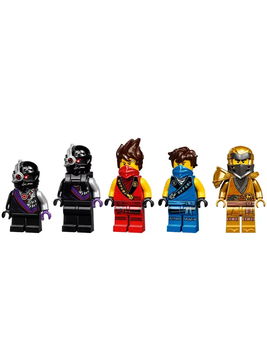Устремитесь в бой на потрясающем ниндзя-перехватчике Х-1, чтобы сразиться с ниндроидами. Устремитесь в бой вместе с Каем на его супер быстроБерегитесь воинов-ниндроидов, которые атакуют вас с неба на реактивных ранцах. Спасите город НИНДЗЯГО-Сити, а потом выставьте золотую минифигурку Коула ограниченной серии.м мотоцикле из автомобиля!За счет 5 минифигурок – это Джей, Кай, Коул, Миндроид и Ниндроид-воин – крутой конструктор подойдет для командной игры.Нажатием одной кнопки из перехватчика можно выстрелить скоростным мотоциклом.В ярком игровом наборе присутствует золотая коллекционная минифигурка «Наследие Коула» на подставке.Серия конструкторов Lеgo NinjaGo Мастера Кружитцу посвящен одноименному мультсериалу, который был выпущен в 2011 году. Конструкторы Ninjago имеют большой выбор моделей, в них можно найти множество объектов, мест, персонажей из мультфильма. Вселенная кишит разнообразием и неожиданностью: персонажи перерождаются в новых формах, темные сущности овладевают положительными героями, а отношения между разными фракциями постоянно меняются. Для нас раскрывается невероятно большой простор для фантазий и возможностей сюжетной игры, знакомые локации и герои, точно привлекут внимание.