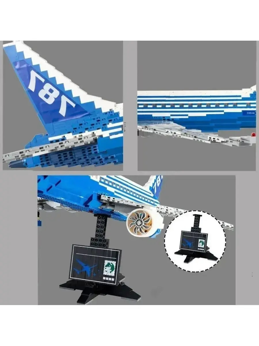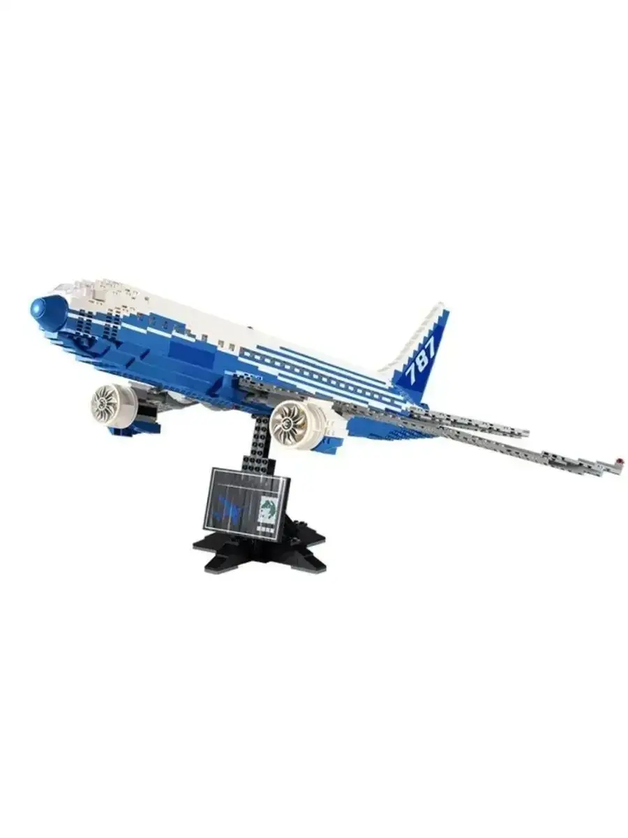 Конструктор Пассажирский самолёт БОИНГ 787 представляет собой набор из 1349 деталей, которые позволят вам собрать масштабную модель пассажирского самолёта BOEING 787. Набор включает в себя детали из пластика, а также инструкцию по сборке. После сборки модель будет иметь длину около 67 см и высоту около 66 см. Этот набор предназначен для детей от 6 лет и старше. Детали хорошо скрепляются между собой. Конструктор упакован в яркую коробку, детали внутри запаяны в пакеты.