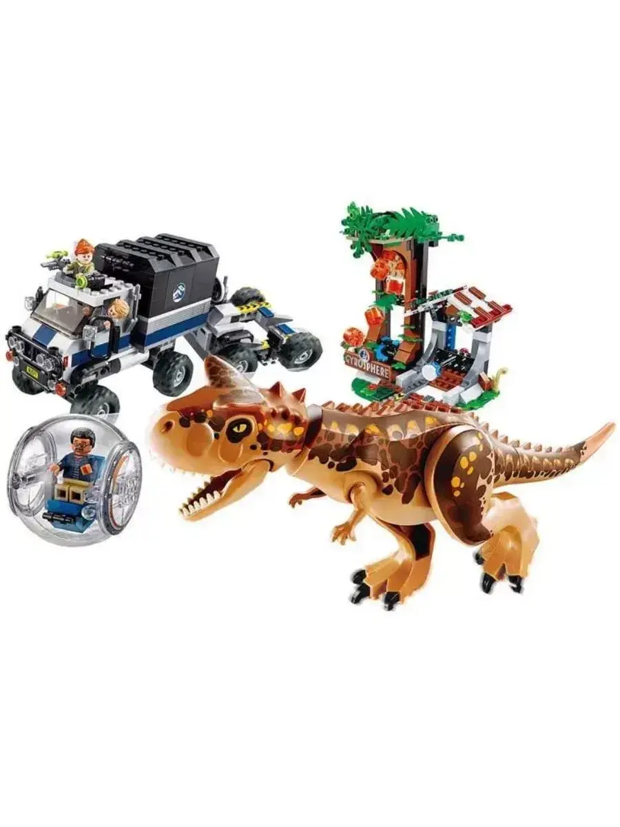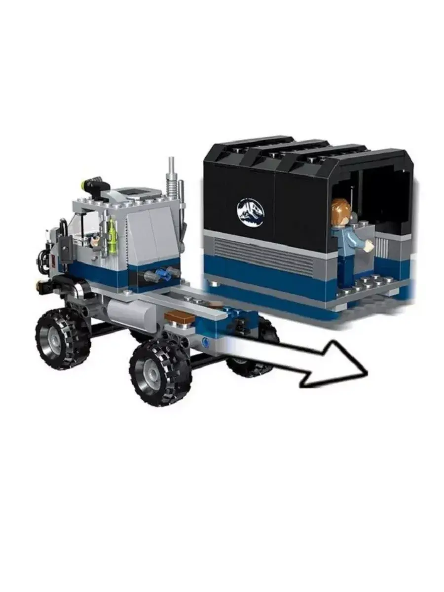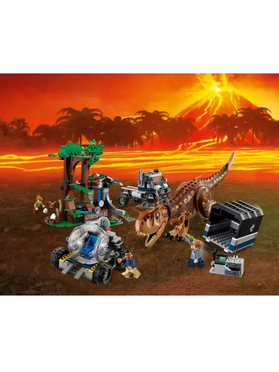 Свершилось то, чего боялись все жители острова Нублар. И даже больше! Началось извержение вулкана, а на свободу вырвался карнотавр — смертельно опасный хищник с острейшими, как пила, зубами. Куда бежать? Может, прыгнуть в вертолет и улететь с острова? Это удел слабых! А Оуэн, Клэр и Франклин к ним не относятся. Помоги им избежать потоков лавы и лап карнотавра: спрячься в специальном мобильном центре или же запусти аттракцион «Гиросфера», но ни в коем случае не забудь спасти детеныша динозавра и яйца.Чтобы запустить гиросферу, надави на устройство пусковой установки, расположенное позади агрегата. Гиросфера вылетит с поразительной скоростью. Кабина трейлера вмещает две минифигурки, оборудована люком и пушкой, установленной на крыше. К машине крепится съемный трейлер, который тоже способен запускать гиросферы.Бегом в грузовик: включай самую большую скорость и несись на помощь к ученым, которые спасаются от убийцы-карнотавра и раскаленной лавы! Яркие впечатления неизбежны.
