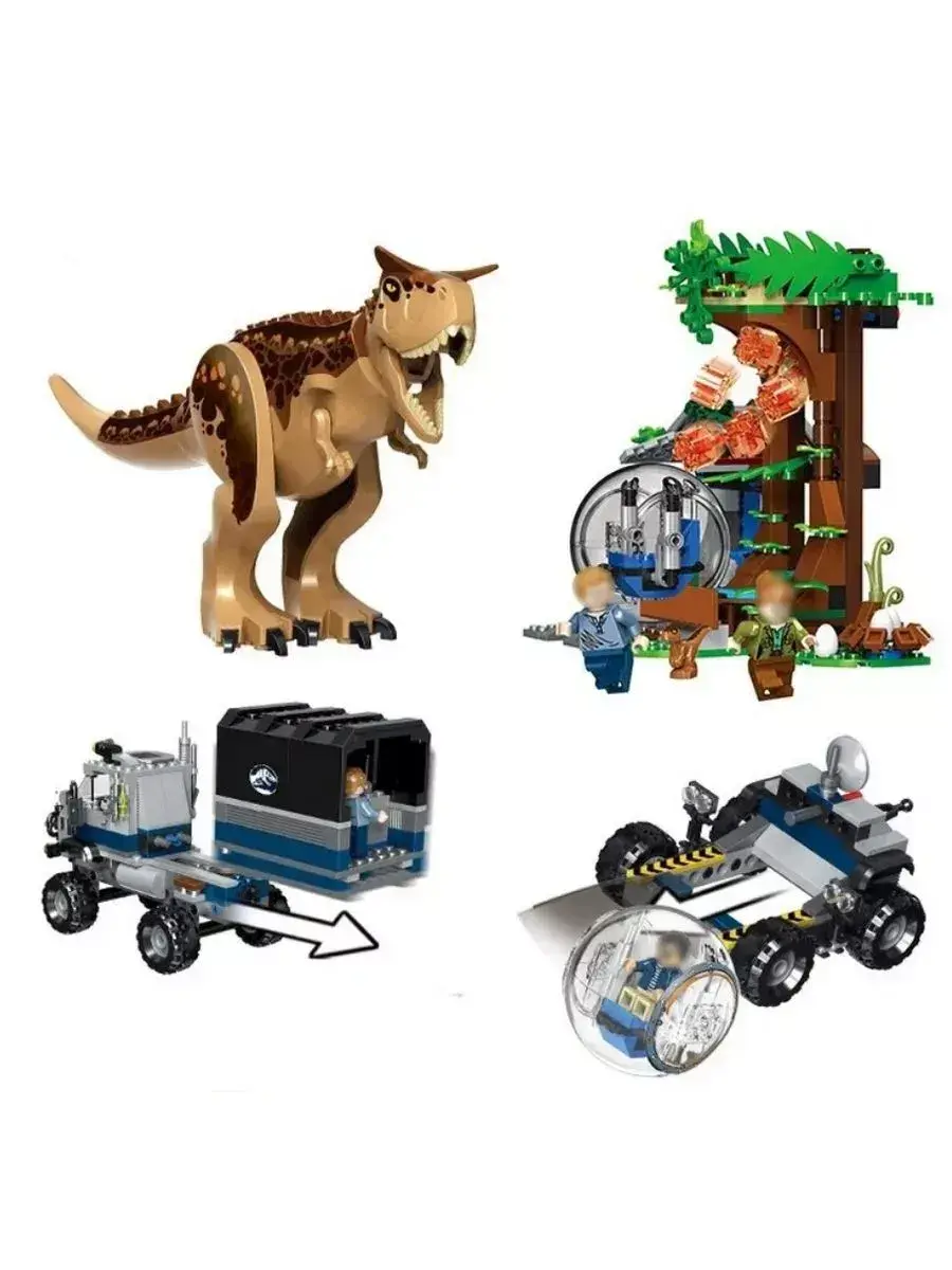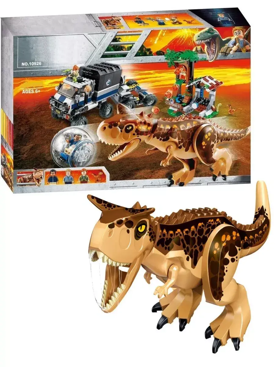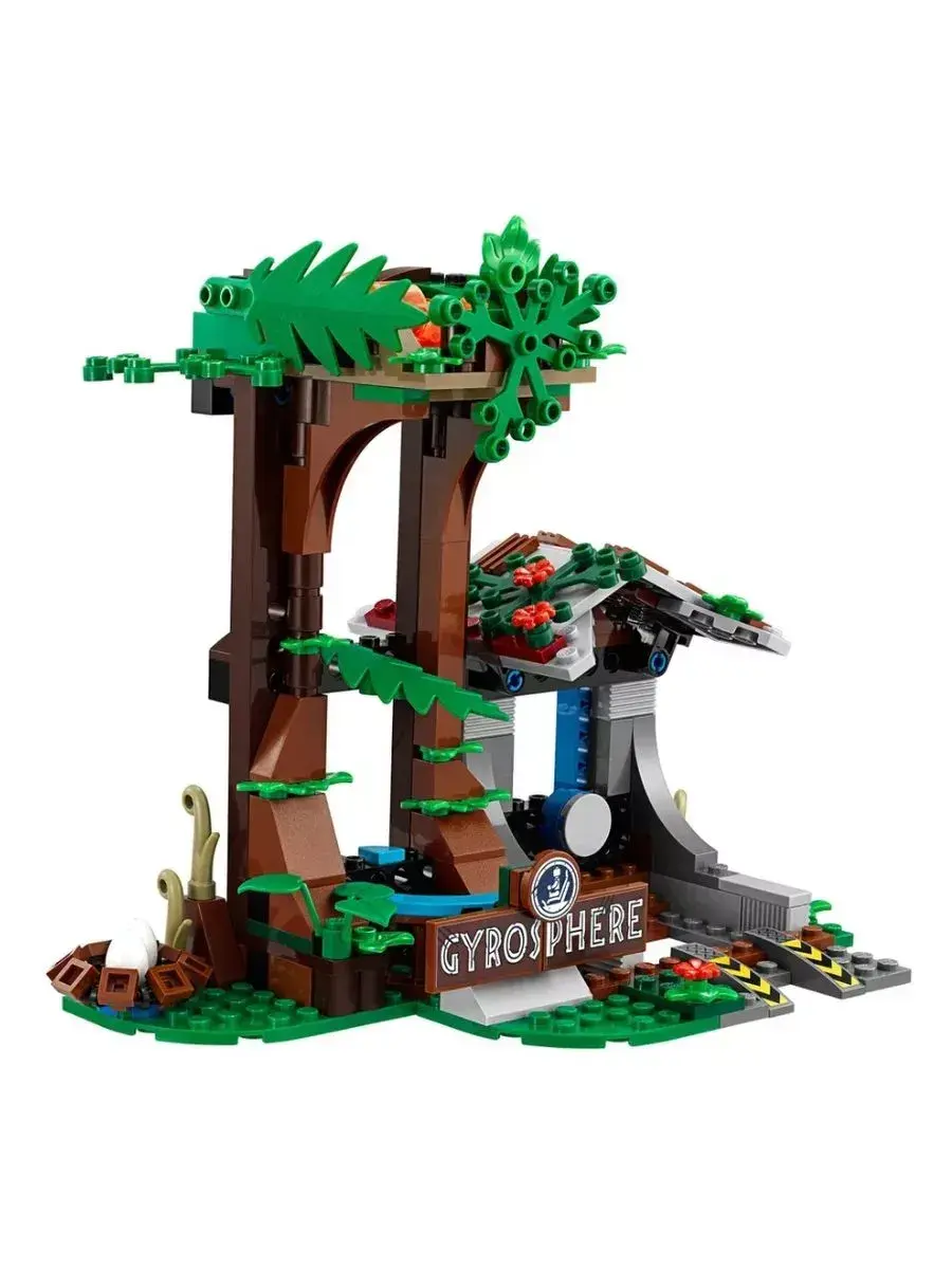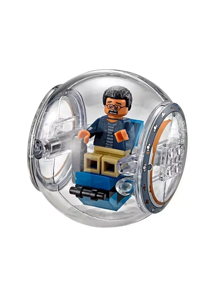 Свершилось то, чего боялись все жители острова Нублар. И даже больше! Началось извержение вулкана, а на свободу вырвался карнотавр — смертельно опасный хищник с острейшими, как пила, зубами. Куда бежать? Может, прыгнуть в вертолет и улететь с острова? Это удел слабых! А Оуэн, Клэр и Франклин к ним не относятся. Помоги им избежать потоков лавы и лап карнотавра: спрячься в специальном мобильном центре или же запусти аттракцион «Гиросфера», но ни в коем случае не забудь спасти детеныша динозавра и яйца.Чтобы запустить гиросферу, надави на устройство пусковой установки, расположенное позади агрегата. Гиросфера вылетит с поразительной скоростью. Кабина трейлера вмещает две минифигурки, оборудована люком и пушкой, установленной на крыше. К машине крепится съемный трейлер, который тоже способен запускать гиросферы.Бегом в грузовик: включай самую большую скорость и несись на помощь к ученым, которые спасаются от убийцы-карнотавра и раскаленной лавы! Яркие впечатления неизбежны.