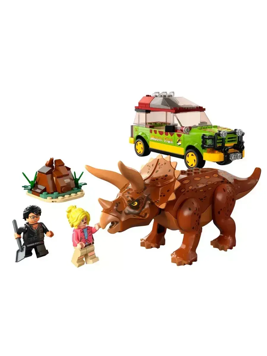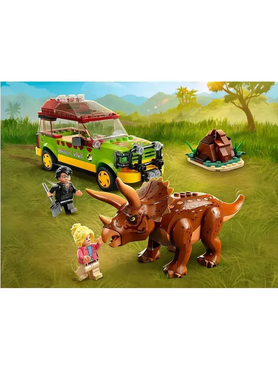 Игровой набор для детей, которые любят динозавров и игрушечные транспортные средства, — разыграйте незабываемую сцену из «Парка Юрского периода» с этим набором Поиски трицератопса, в который входит сборный Ford Explorer и экскременты динозавра. Игрушечный динозавр и 2 минифигурки — в набор входит подвижная фигурка трицератопса, а также Ян Малкольм и доктор Элли Сэттлер с лопатой, чтобы вычерпать спрятанные токсичные ягоды из сборных экскрементов динозавра. Ford Explorer — игрушечный автомобиль наполнен аутентичными деталями внедорожника из «Парка Юрского периода», внутри есть место как для минифигурок, так и для элемента бортовой навигационной системы. Портативная игра — сборный Ford Explorer имеет размеры более 8 см в высоту, 16 см в длину и 6 см в ширину. Набор поместится в детский рюкзак, так что в него можно играть на ходу.