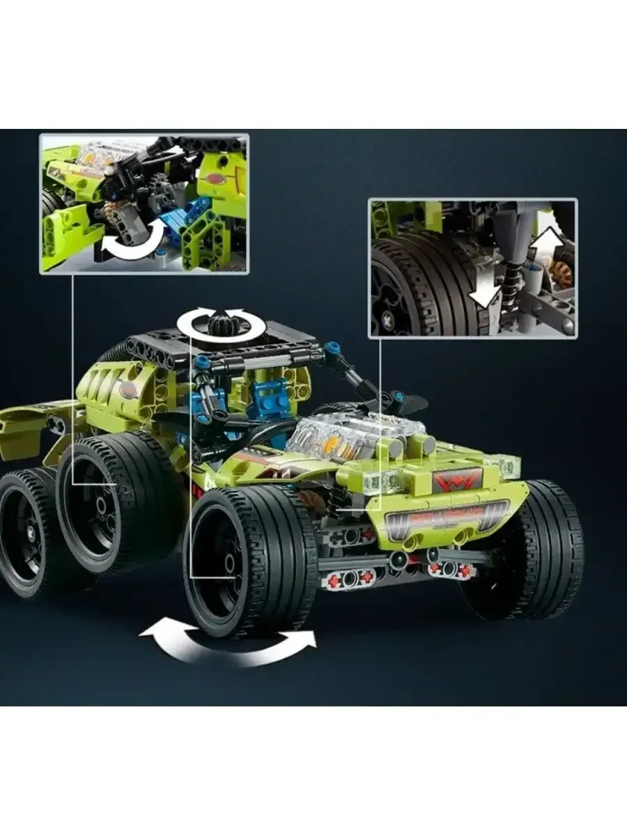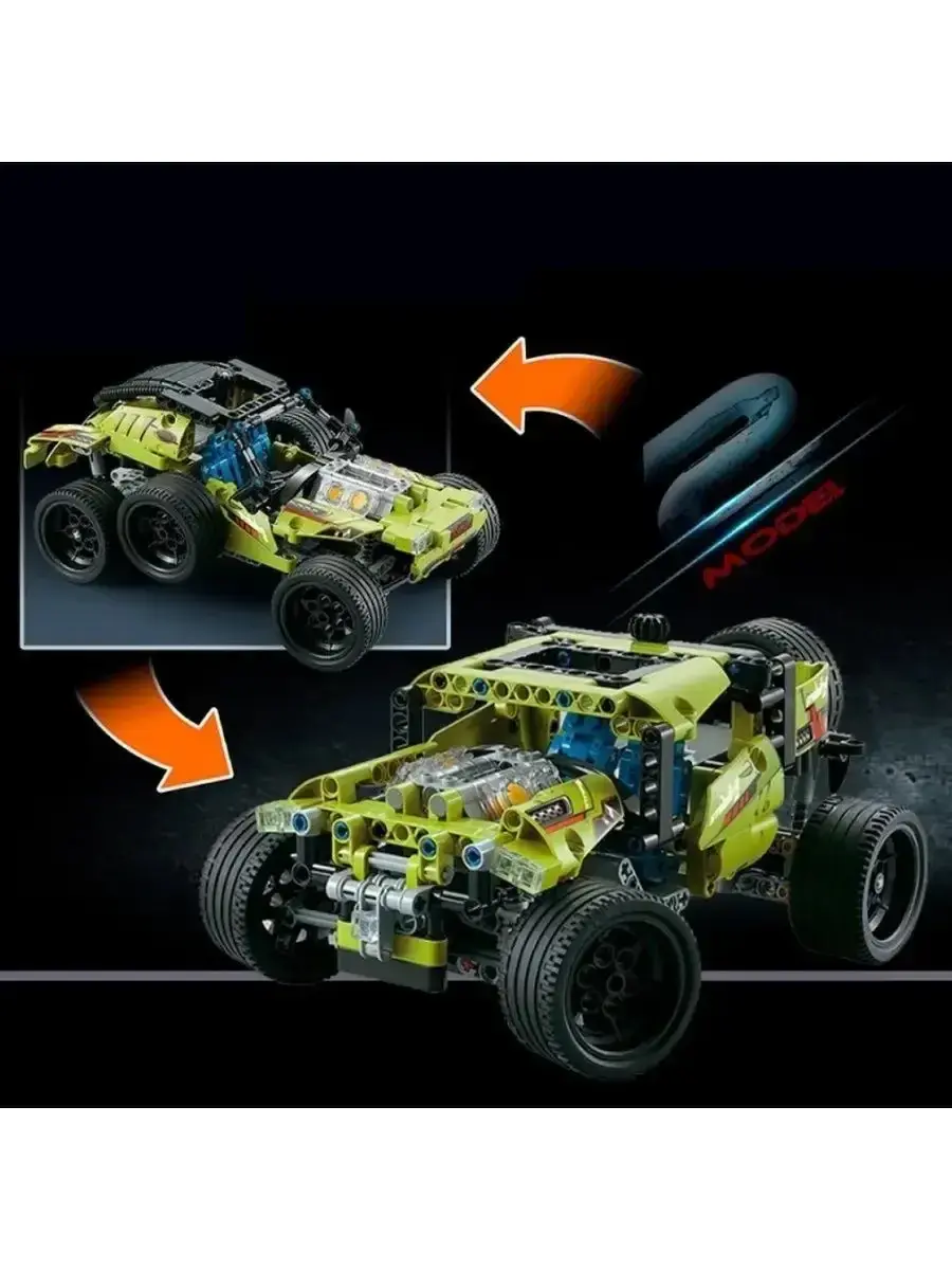 Благодаря этому конструктору юный автомобилист познакомится с двумя моделями спортивных машин, оригиналы которых выпускаются на автомобильном заводе SANDSTORM Automotive в Объединенной Арабской республике. Итак, у обладателя сборной игрушки будет возможность построить копию спорткара в двух различных модификациях. В обоих случаях длина автомобиля составляет в пределах 25 см, колеса оснащены очень широкими шинами. Но в целом по внешнему виду оба варианта кардинально различаются: если в одной версии набора Ралли-кар Sandstorm машина смотрится как легкая спортивная модель, то во второй это уже довольно тяжеловесный вездеход.Сборная игрушка наделена хорошим игровым функционалом: передние колеса можно разворачивать в любую сторону, покрутив рычажок, установленный на крыше авто;двери машины открываются и закрываются;при движении вперед или назад поршневая система автомобиля начинает по-настоящему работать.