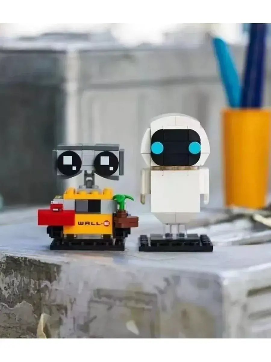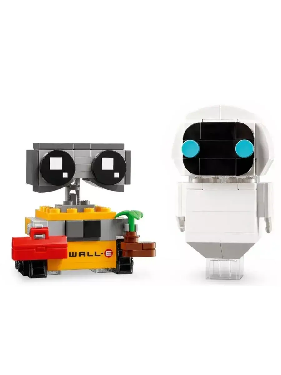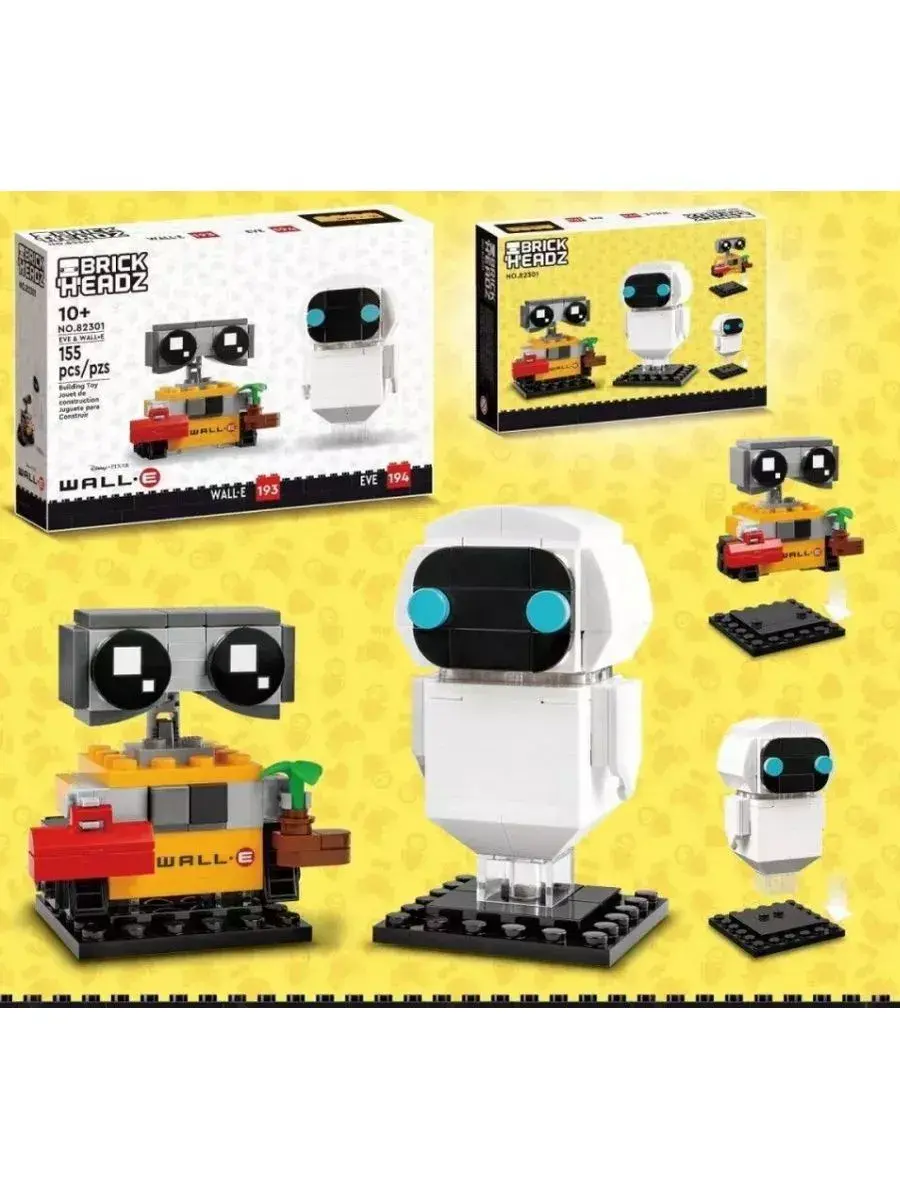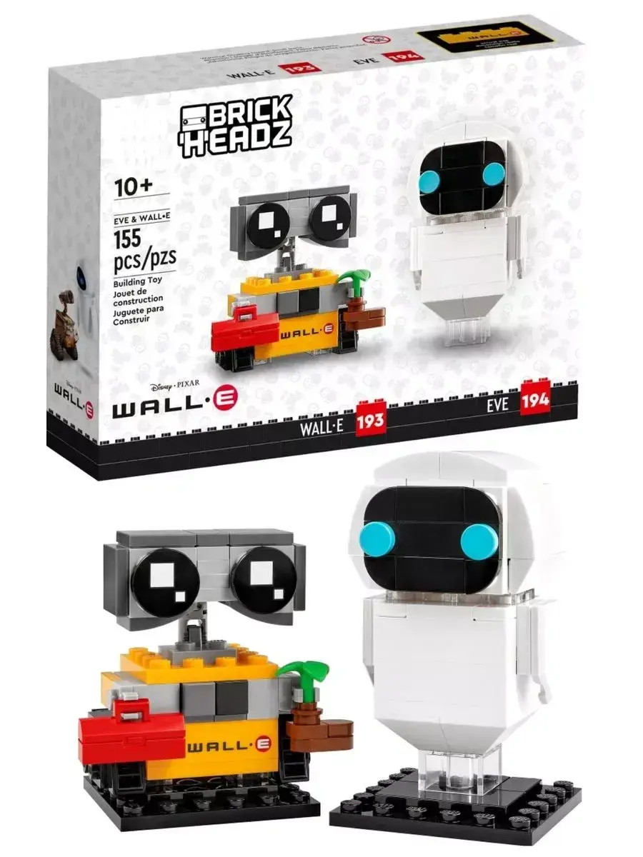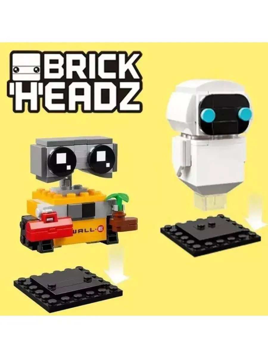 Валл-И вернулся в новом небольшом наборе от Brick Headz! Но он не один, наконец-то вместе с ним его главная возлюбленная - андроид Ева. Эта милая парочка роботов готова стать украшением Вашей коллекции. Набор из 155 деталей предлагает собрать миниатюрные копии желтого симпатяги мусоросборщика Валли и его продвинутую подругу Еву. Собранные фигурки можно установить на черные подставки, входящие в комплект.