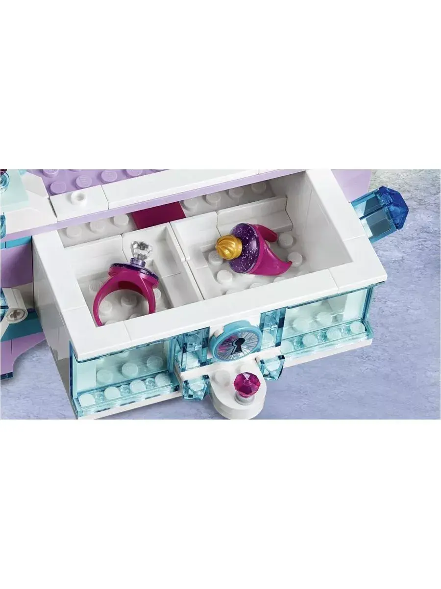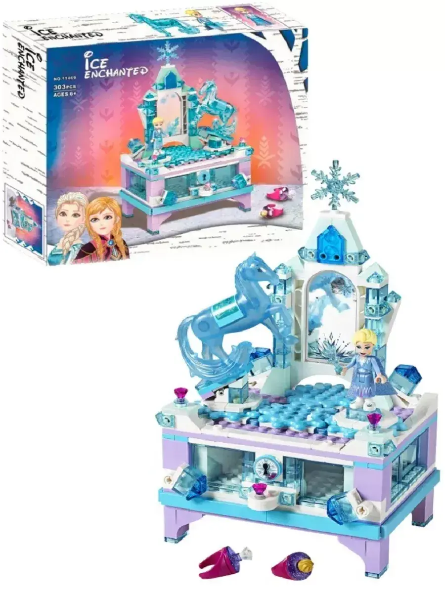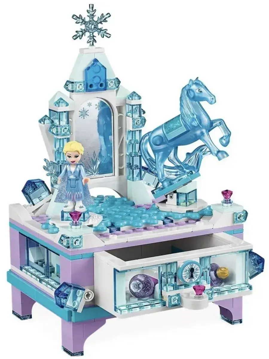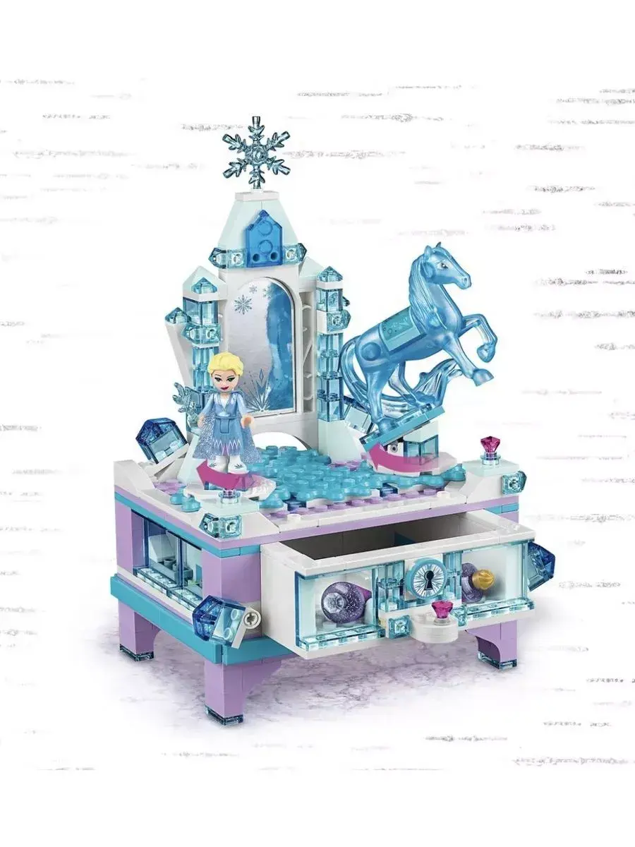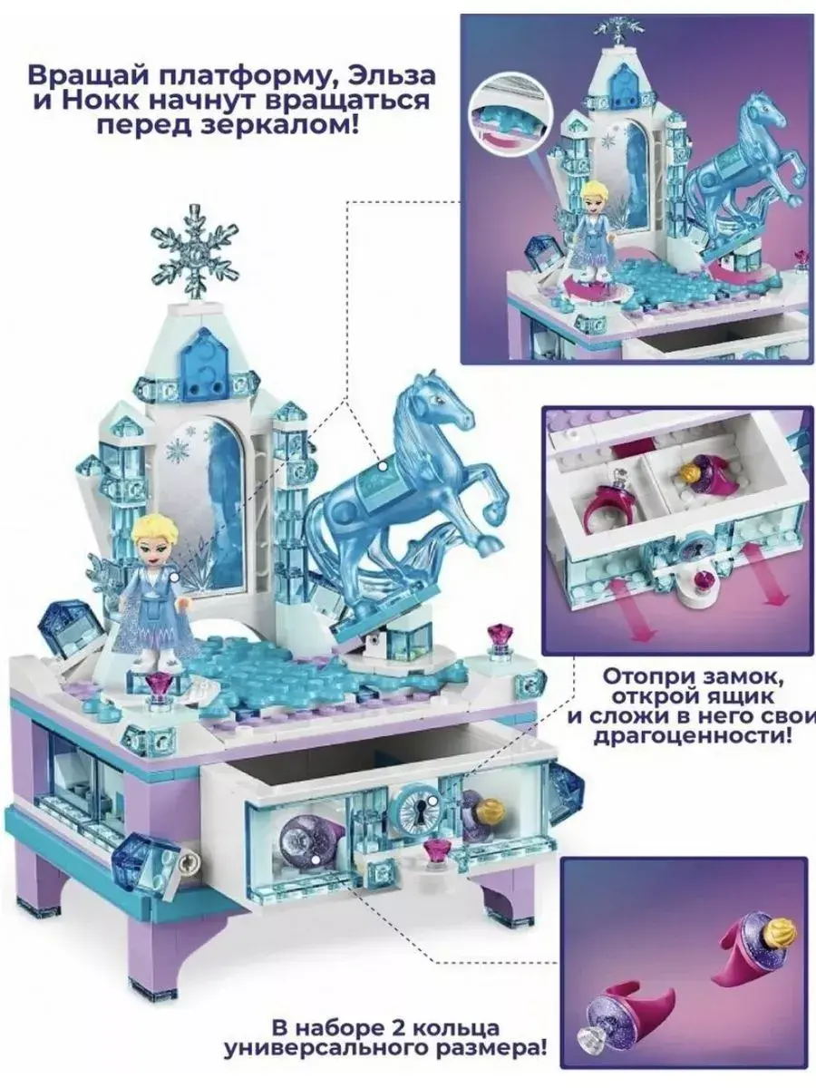 Из данного конструктора Вы сможете собрать шкатулку для драгоценностей с запирающимся ящиком, зеркало, функцию вращения для Эльзы и Нокка и 2 кольца.Ящик можно заблокировать с помощью функции блокировки. Красивая шкатулка для драгоценностей - идеальный подарок на день рождения или Рождество, а также для поклонников фильмов Диснея с "Холодным сердцем".Шкатулка имеет высоту 23 см, ширину 15 см и глубину 12 см