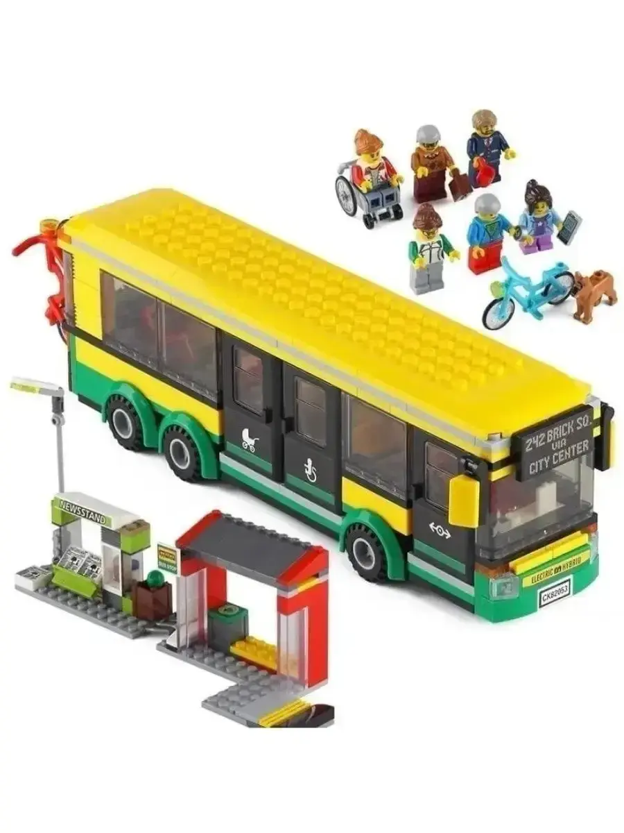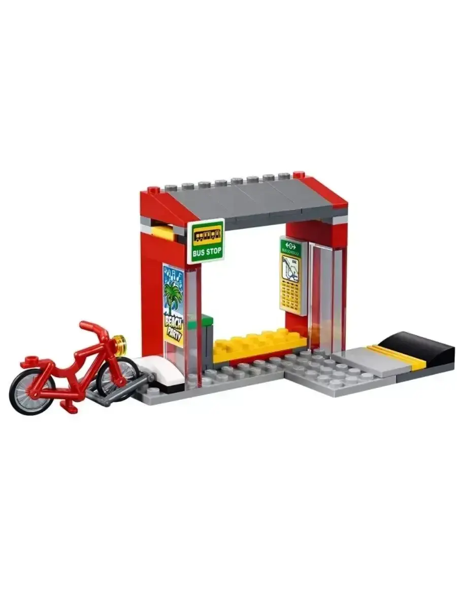 Конструктор Сити Автобусная остановка — это яркий и интересный набор из 337 деталей, который позволит ребёнку построить реалистичную городскую остановку для автобусов. В комплект входят здание остановочного павильона с крышей и скамейками, автобус, фигурки пассажиров и водителя, дорожные знаки и аксессуары для организации комфортного и безопасного ожидания транспорта.