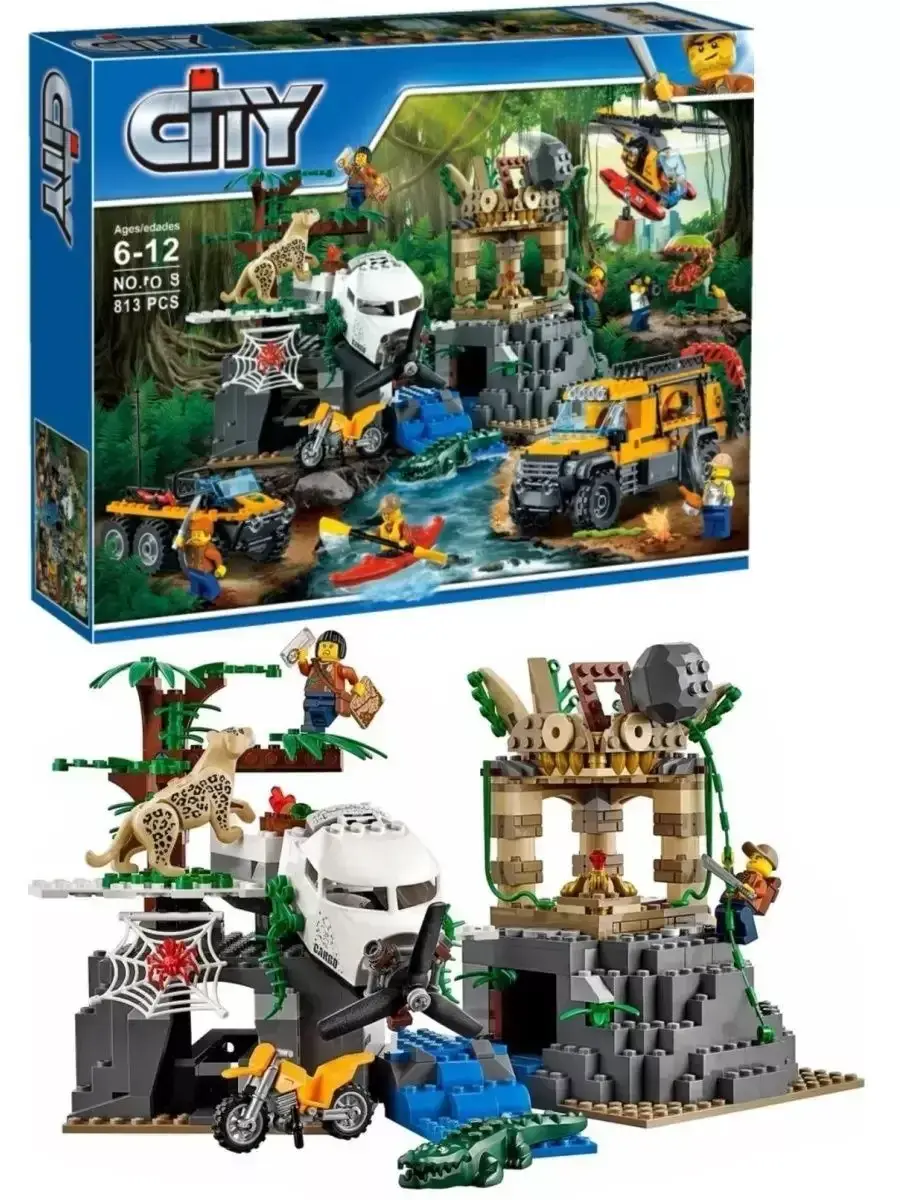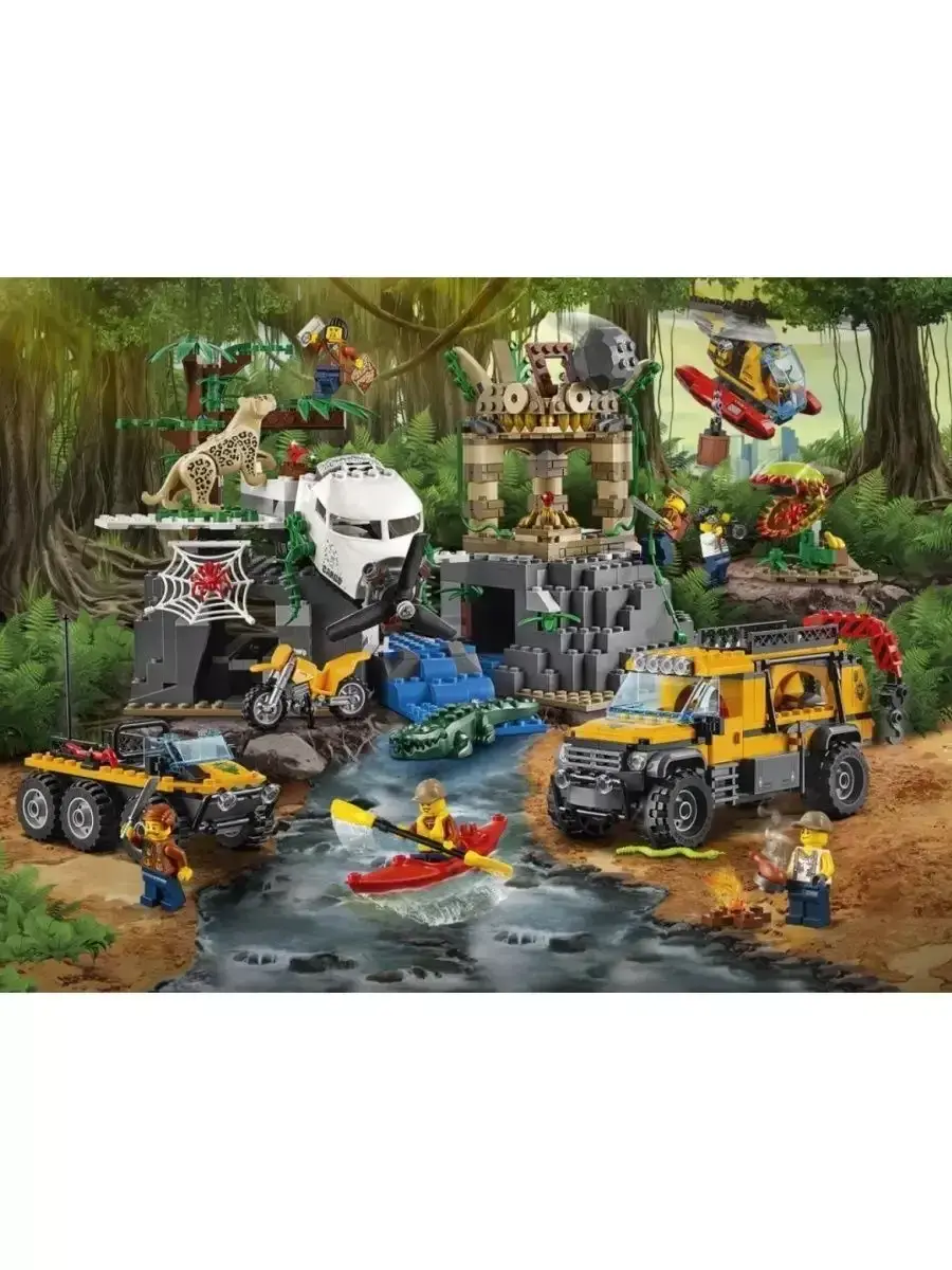 Конструктор Сити База исследователей джунглей — это большой и увлекательный набор из 813 деталей, который позволит ребёнку построить полноценную базу для приключений и исследований в дикой природе. В комплект входят основные постройки базы, исследовательский автомобиль, вертолет, фигурки учёных и исследователей, а также разнообразные аксессуары для проведения экспедиций.