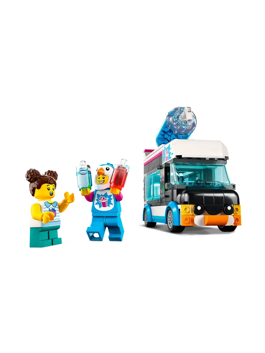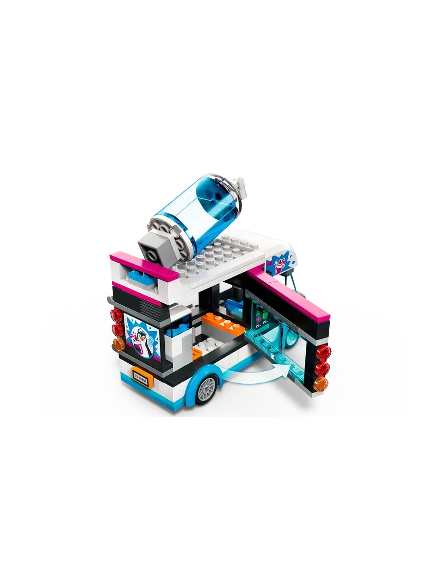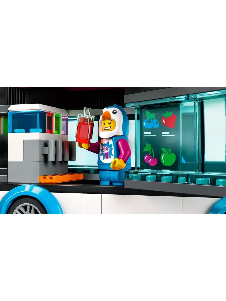 Конструктор из серии Сити Фургон для шейков "Пингвин" состоит из 213 деталей. Из деталей набора можно собрать оригинальный фургон для изготовления и продажи коктейлей. В фургоне есть специальное оборудование для производства различных напитков и раздвижной люк в зоне выдачи. В комплекте минифигурки и аксессуары. Конструктор станет отличным подарком на день рождения или другой праздник. Данный конструктор совместим с Лего