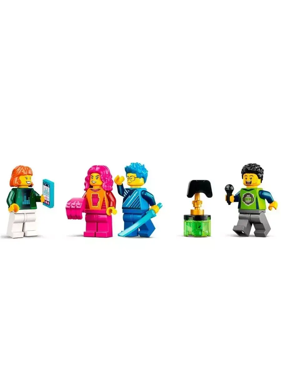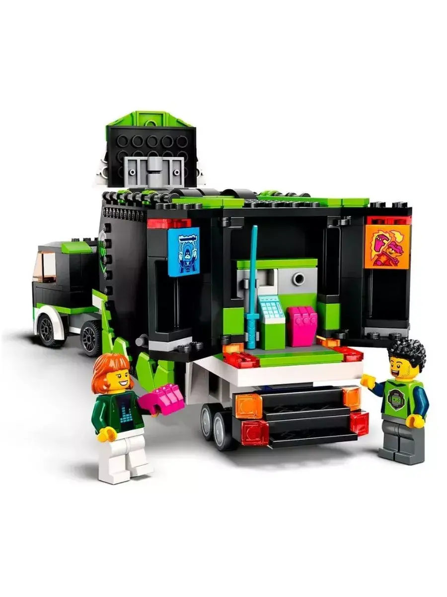 Конструктор «Сити Геймерский грузовик для турниров» — это уникальный набор из 378 деталей, который подарит ребёнку возможность создать настоящий мобильный центр для игровых соревнований. Соберите мощный грузовик с функциональной кабиной, зоной для размещения оборудования и выдвижной сценой для проведения турниров. В комплект входят мини-фигурки геймеров, аксессуары в виде игровых контроллеров и техники, а также детали для оформления и детализации грузовика.