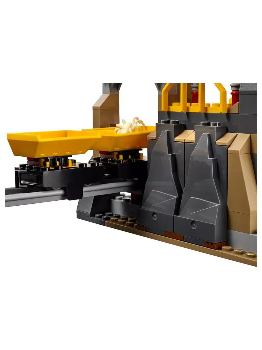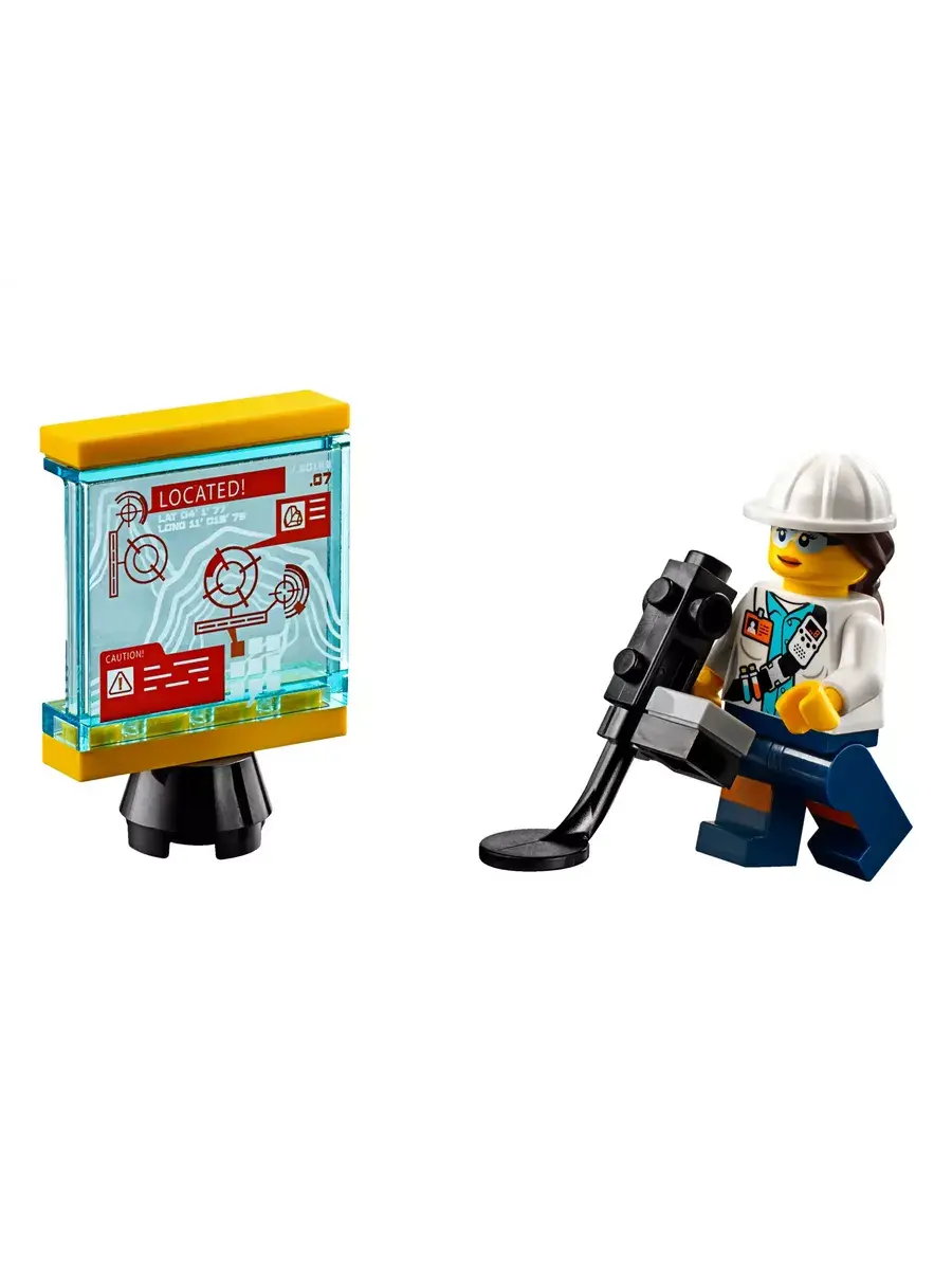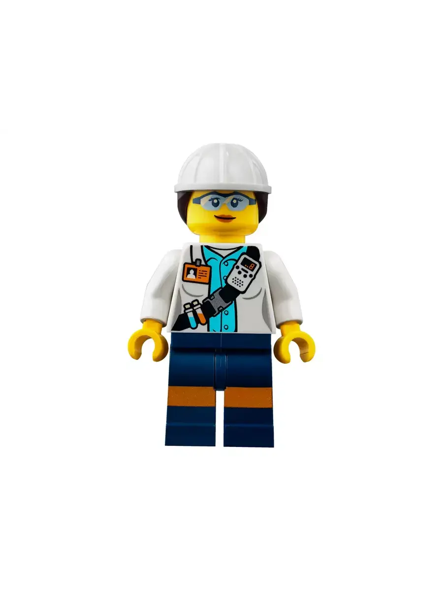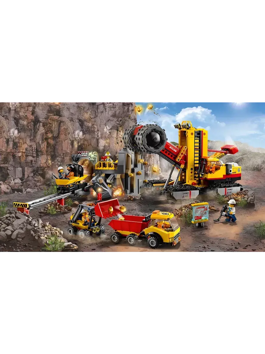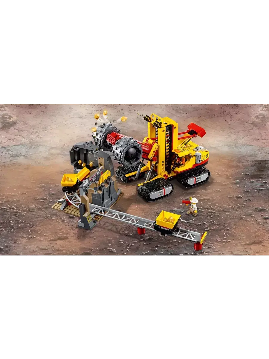 Конструктор из серии Сити Шахта состоит из 919 деталей. В наборе достаточно много разнообразной техники, которая применяется при подземных горных выработках. Среди всех представленных моделей самой внушительной получится дробильной машины на гусеничном ходу. Техника привлекает внимание большой дробильно буровой установкой роторного типа. В модели она рабочая приводится в действие при поднятии и опускании противовеса. Затем необычным выглядит устройство ходовой части. Именно оригинальные четыре выносных опоры на широких гусеничных лентах позволяют внешне неуклюжему гиганту легко передвигаться и маневрировать. Дополнительно из деталей собирается самосвал для перевозки грузов и небольшой погрузчик с ковшом. Для более полного погружения в жизнь шахтеров из деталей также собирается фрагмент горы с проложенными шахтерскими путями. В этой локации вы найдете разрушающуюся каменную стену, тоннель, цех для погрузки, элементы железной дороги и вагонетки. В комплект входят 6 фигурок с профессиональными шахтерскими аксессуарами.