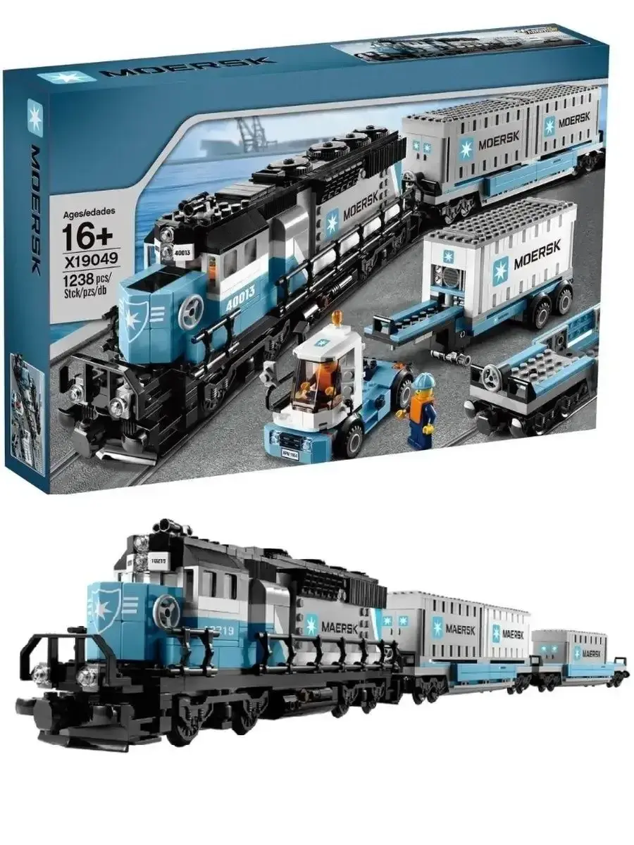 Конструктор Сити Грузовой поезд Маерск — это впечатляющий набор из 1239 деталей, который позволит ребёнку собрать мощный и реалистичный грузовой поезд, предназначенный для перевозки больших и тяжёлых грузов. В комплект входят локомотив с детализированной кабиной, несколько грузовых вагонов, контейнеры с символикой Маерск, железнодорожные пути, стрелочные переводы и фигурки машинистов и грузчиков.