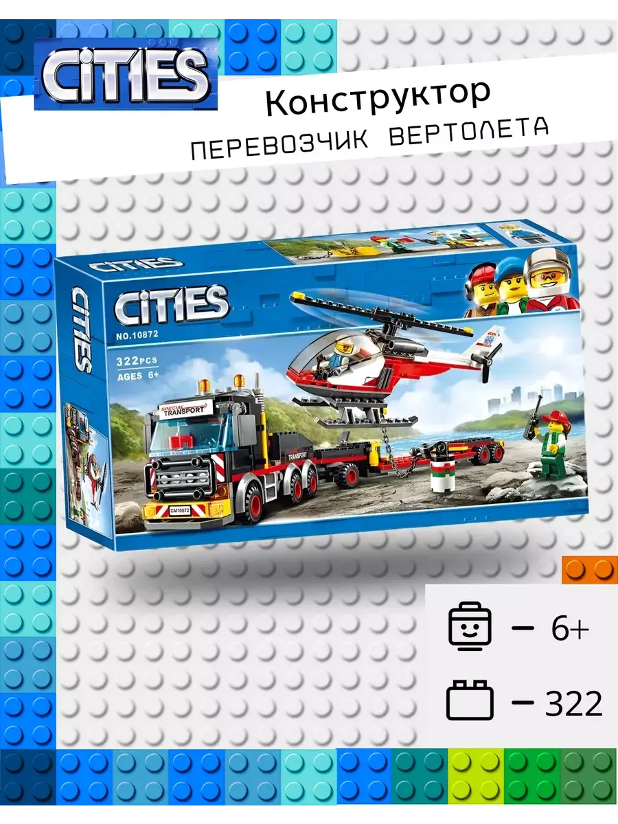 Отличный подарок для ребенка. Развивает мышление, воображение, мелкую моторику. Конструктор "Перевозчик вертолета" позволит организовать бесперебойную доставку крупногабаритных грузов. Представленный набором на 322 детали, он обеспечит поставку летательного аппарата и другого в пункт назначения. Данный конструктор - это транспортное средство черно-серых тонов с контрастами в виде красных и жёлтых вставок. Техника опирается на мощные, шипованные колеса. Заниженная подвеска тягача обеспечивает высокое сцепление с дорогой. Подвижная сцепка машины упрощает и делает легким процесс управления транспортировочной платформой буксировщика. Спереди перевозчика вертолета City находится бампер с металлическим обвесом и номерным знаком. За ним располагается вместительная кабина управления.
