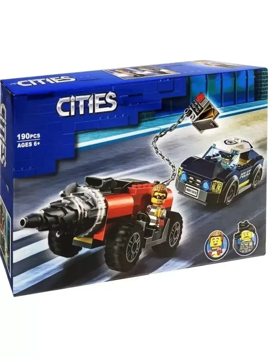 Конструктор Сити Погоня за бурильщиком — это захватывающий набор из 190 деталей, который позволяет ребёнку воссоздать динамичную сцену погони за подозреваемым на специальной технике. В комплект входят полицейский автомобиль, бурильщик с техникой, фигурки полиции и нарушителя, а также разнообразные аксессуары для создания реалистичной и увлекательной игры.