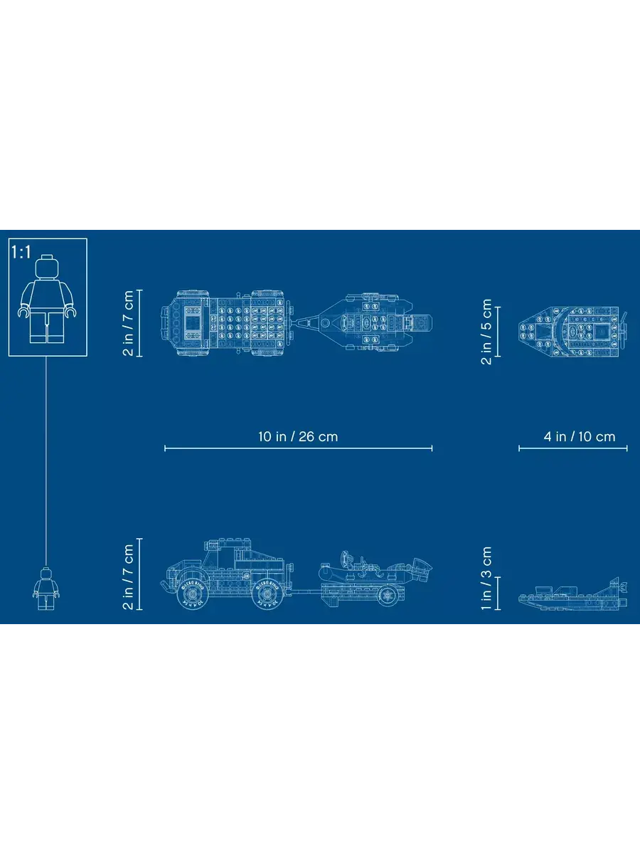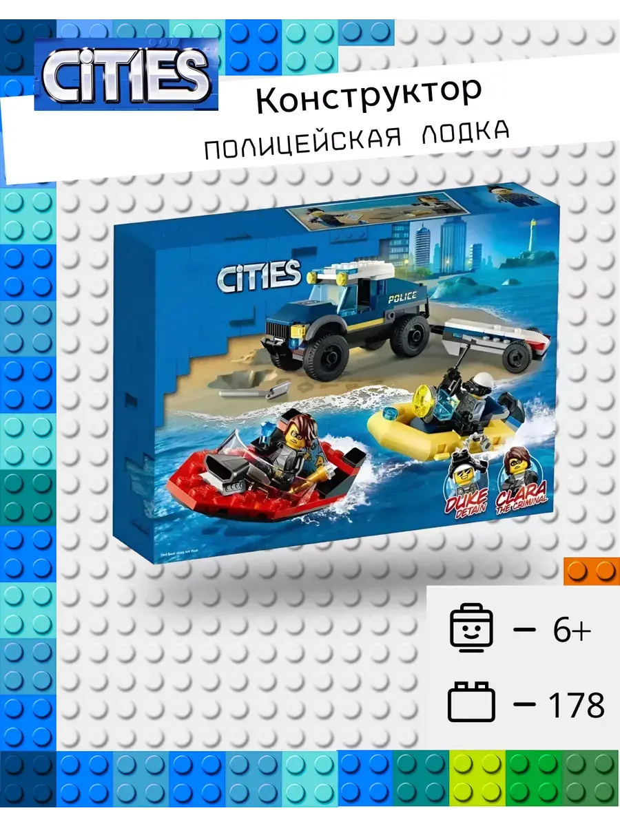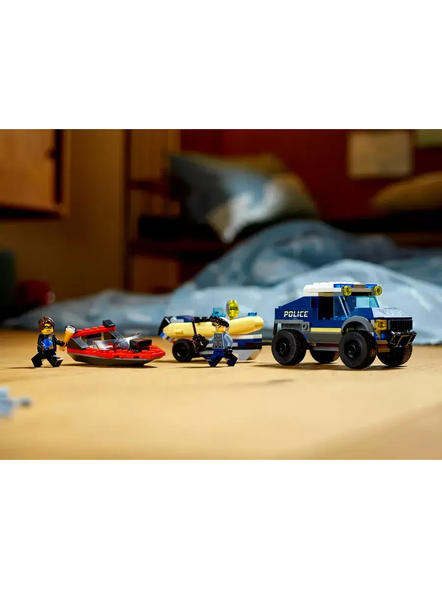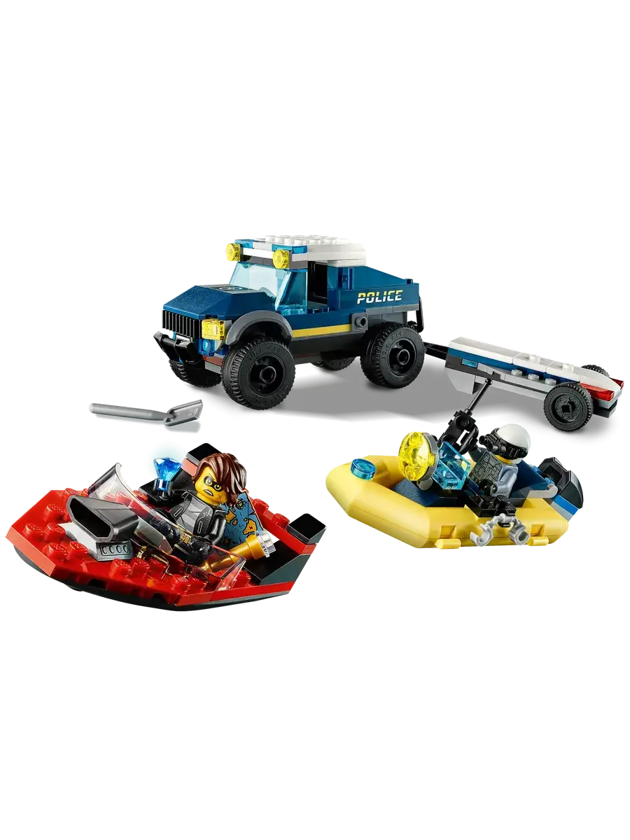 Воришка пытается скрыться с награбленными драгоценностями на суперскоростном катере. Скорее гони к месту преступления на бронированном внедорожнике. Выгрузи крутую полицейскую лодку из прицепа, хватай бинокль ночного видения и отправляйся в погоню за воришкой, который вот-вот скроется в темноте. Это всего лишь ещё один обычный день элитного отряда Полиции. В этот набор входит бронированный полицейский внедорожник с открепляемым прицепом для лодок, надувная лодка и крутой катер. Простая в сборке модель. Крутые игрушки из этого набора предлагают увлекательные сценарии для игр, которые являются творческим переосмыслением реальной жизни. Реалистичные транспортные средства и забавные персонажи призваны пробуждать воображение и вдохновлять на творческие игры детей и взрослых. Конструктор станет отличным подарком на день рождения или другой праздник. Данный конструктор совместим с Лего