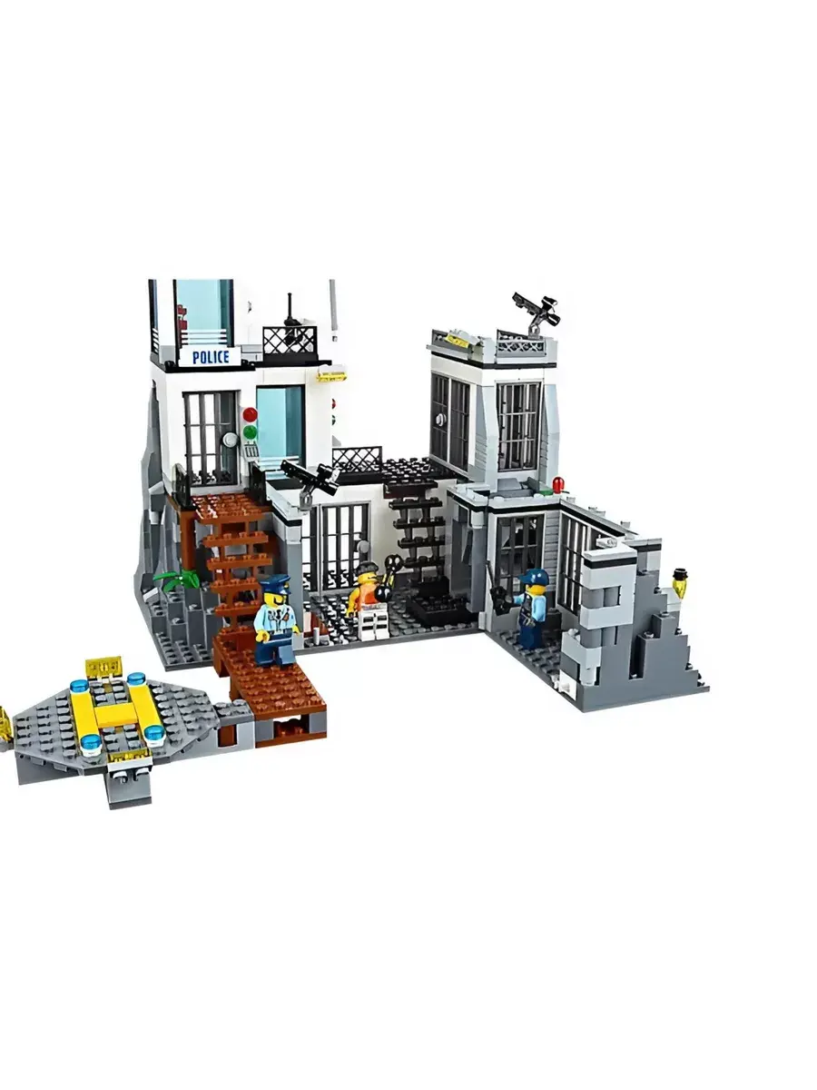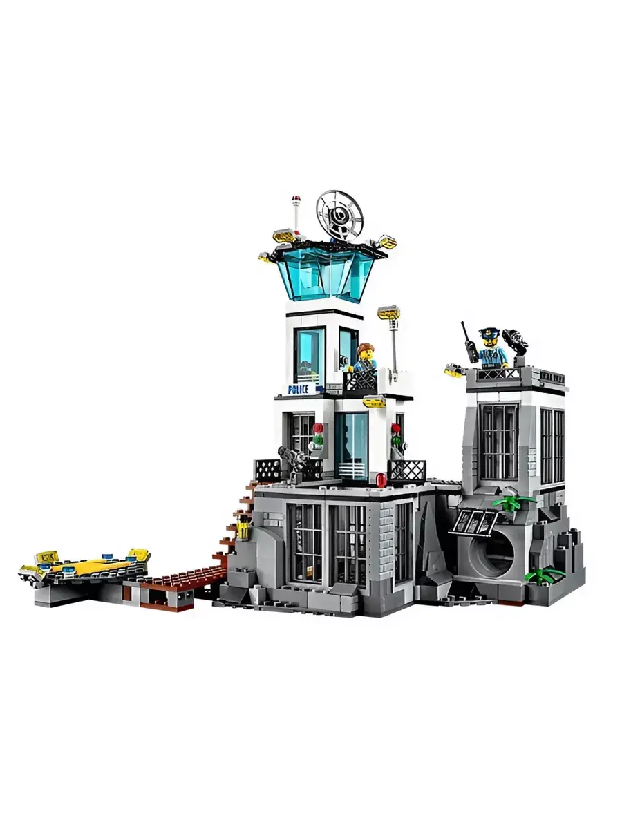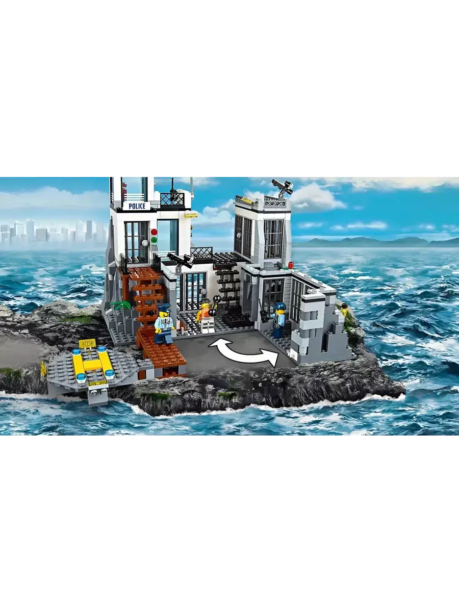 Конструктор Остров-тюрьма - модель государственного учреждения особого назначения. Представленная набором, состоящим из 846 деталей, она позволит игроку вершить правосудие - задерживать преступников, содержать их под стражей, а после отдавать под суд. Это четырехэтажное строение бело-черного цвета. Относящееся к режимным объектам, оно расположено таким образом, что к нему можно добраться только на воздушном шаре или вертолете по воздуху или на лодке по воде. Путь от пирса до самого здания Остров-тюрьма находится под видеонаблюдением. При входе каждый сотрудник госучреждения вводит идентификационный пароль. Полицейский участок условно делится на три функциональные зоны. С правой стороны располагается деревянная лестница, ведущая на проходную. Этажом выше располагается комната отдыха с панорамными окнами. Над ней находится дозорная вышка с мощной системой прожекторов, спутниковой связью и сигнальным огнем.