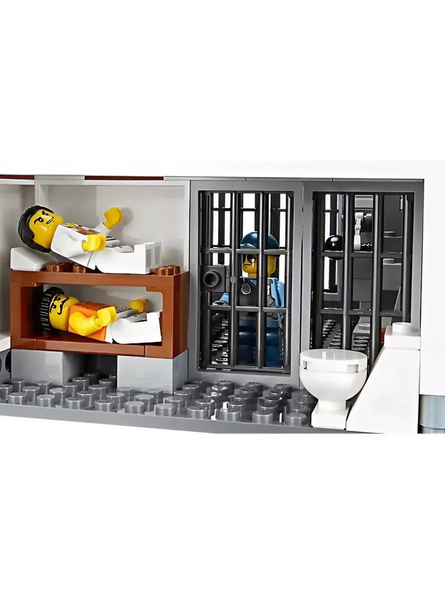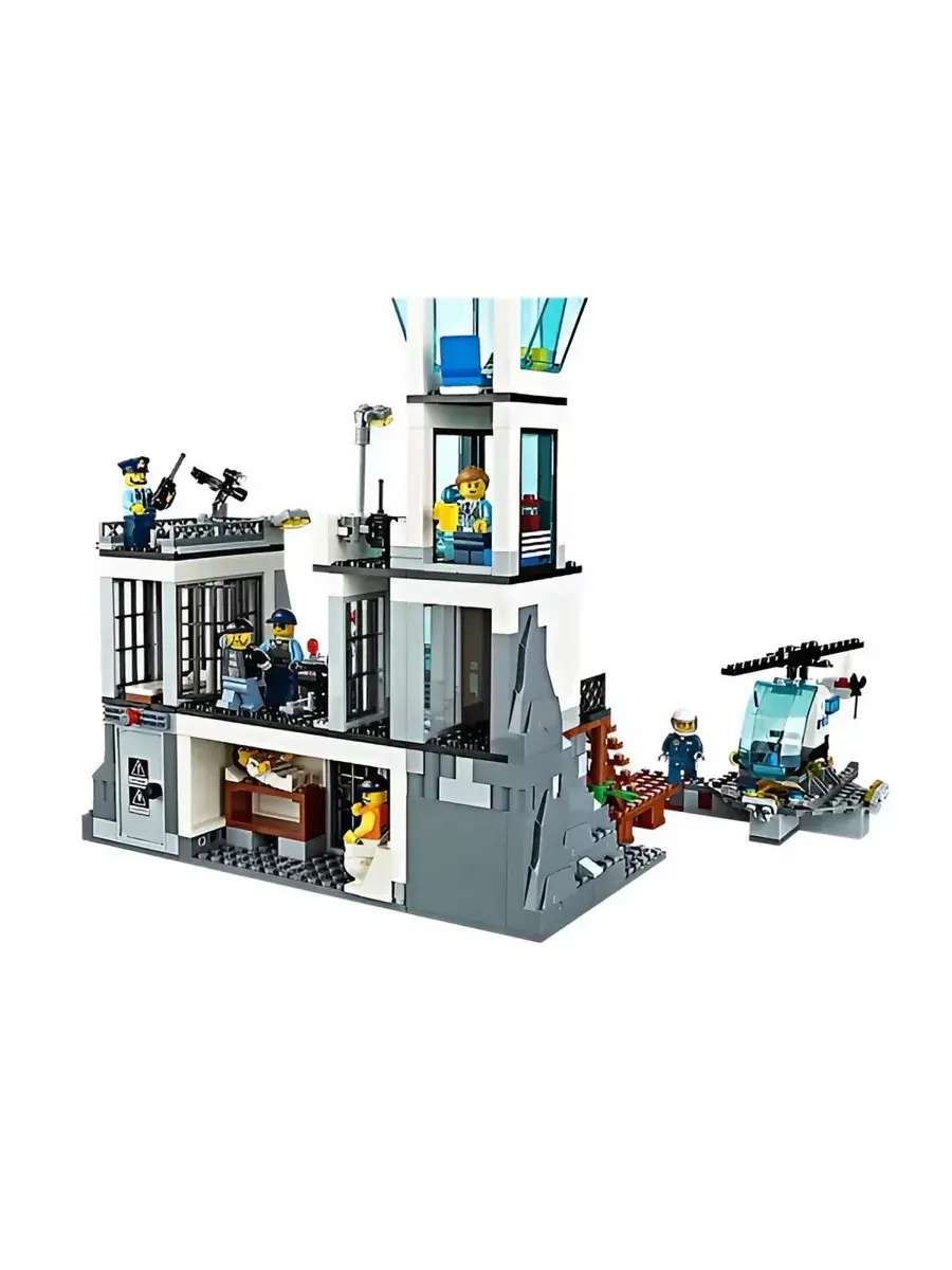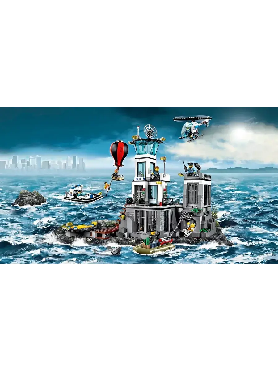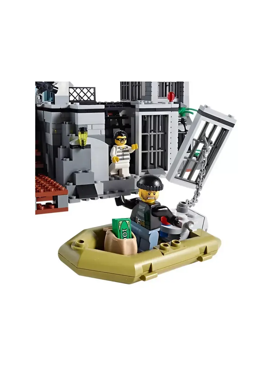 Конструктор Остров-тюрьма - модель государственного учреждения особого назначения. Представленная набором, состоящим из 846 деталей, она позволит игроку вершить правосудие - задерживать преступников, содержать их под стражей, а после отдавать под суд. Это четырехэтажное строение бело-черного цвета. Относящееся к режимным объектам, оно расположено таким образом, что к нему можно добраться только на воздушном шаре или вертолете по воздуху или на лодке по воде. Путь от пирса до самого здания Остров-тюрьма находится под видеонаблюдением. При входе каждый сотрудник госучреждения вводит идентификационный пароль. Полицейский участок условно делится на три функциональные зоны. С правой стороны располагается деревянная лестница, ведущая на проходную. Этажом выше располагается комната отдыха с панорамными окнами. Над ней находится дозорная вышка с мощной системой прожекторов, спутниковой связью и сигнальным огнем.