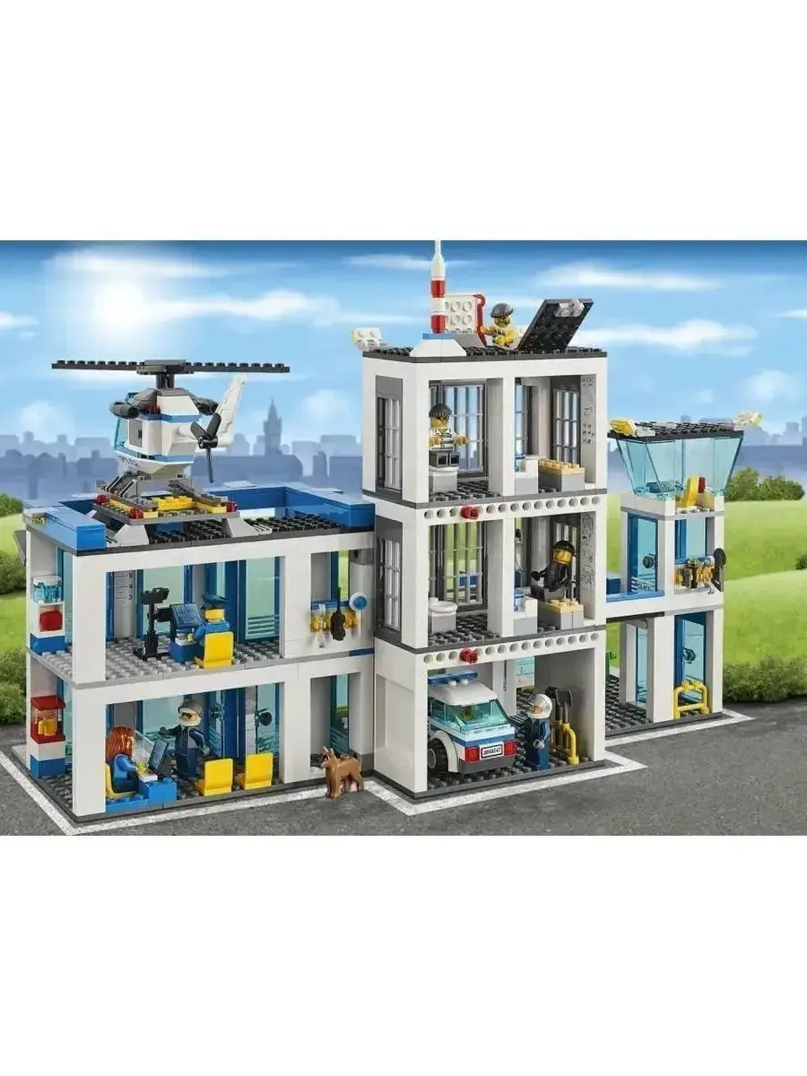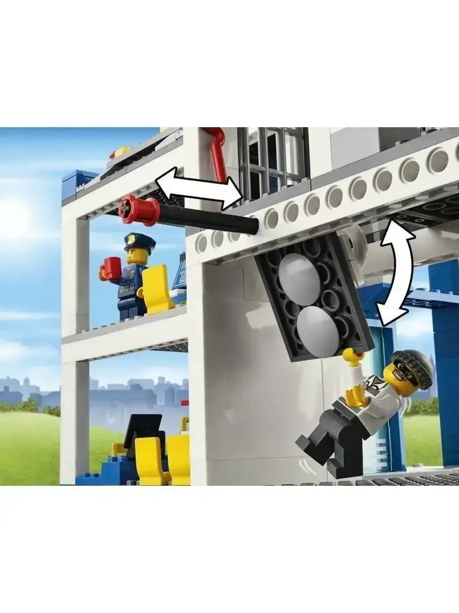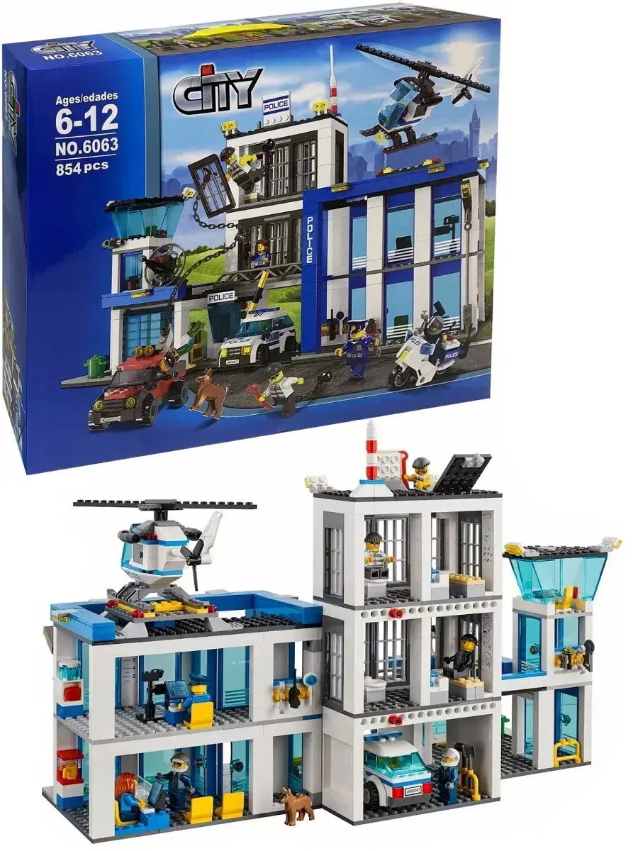 Конструктор «Сити Полицейский участок» — это масштабный набор из 854 деталей, который позволяет ребёнку построить полноценную базу для поддержания порядка в городе. В набор входит трёхэтажное здание полицейского управления с камерами, кабинетом начальника, дежурной частью и смотровой вышкой. Также в комплекте — полицейский автомобиль, мотоцикл, ворота, а ещё — мини-фигурки полицейских, заключённых и собак, что делает игру максимально реалистичной и насыщенной.