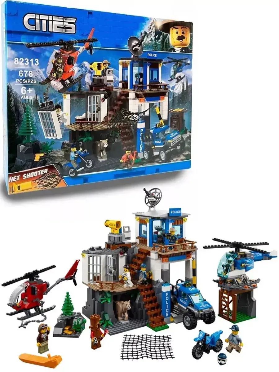 Конструктор «Сити Полицейский участок в горах» — это масштабный набор из 678 деталей, который позволит ребёнку построить настоящую горную полицейскую базу с различными функциональными элементами. Соберите участок с охранными вышками, гаражами для патрульных машин, вертолётной площадкой и постом охраны, оснащёнными всей необходимой техникой и оборудованием. В комплект входят мини-фигурки полицейских, спасателей и нарушителей, а также аксессуары: рации, ограждения, сигнальные огни и прочие элементы для создания реалистичных игровых сценариев.