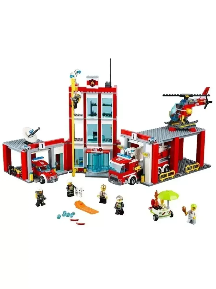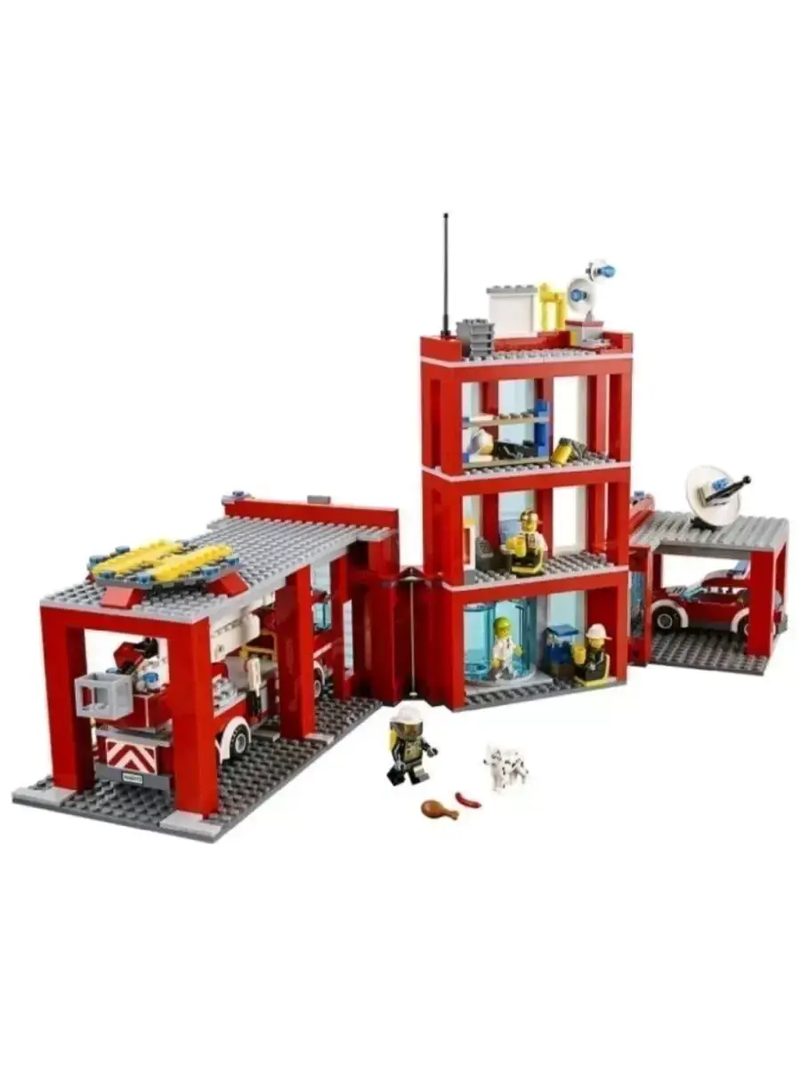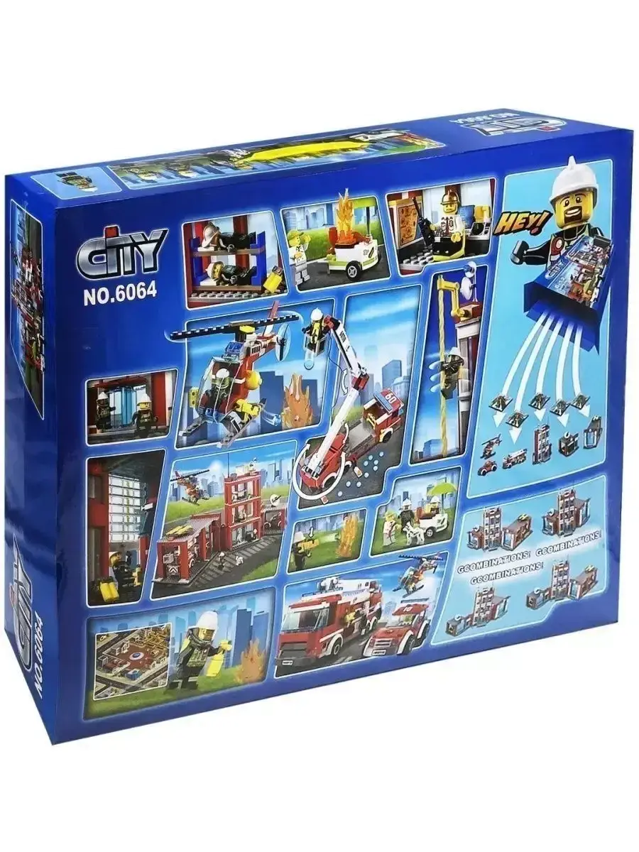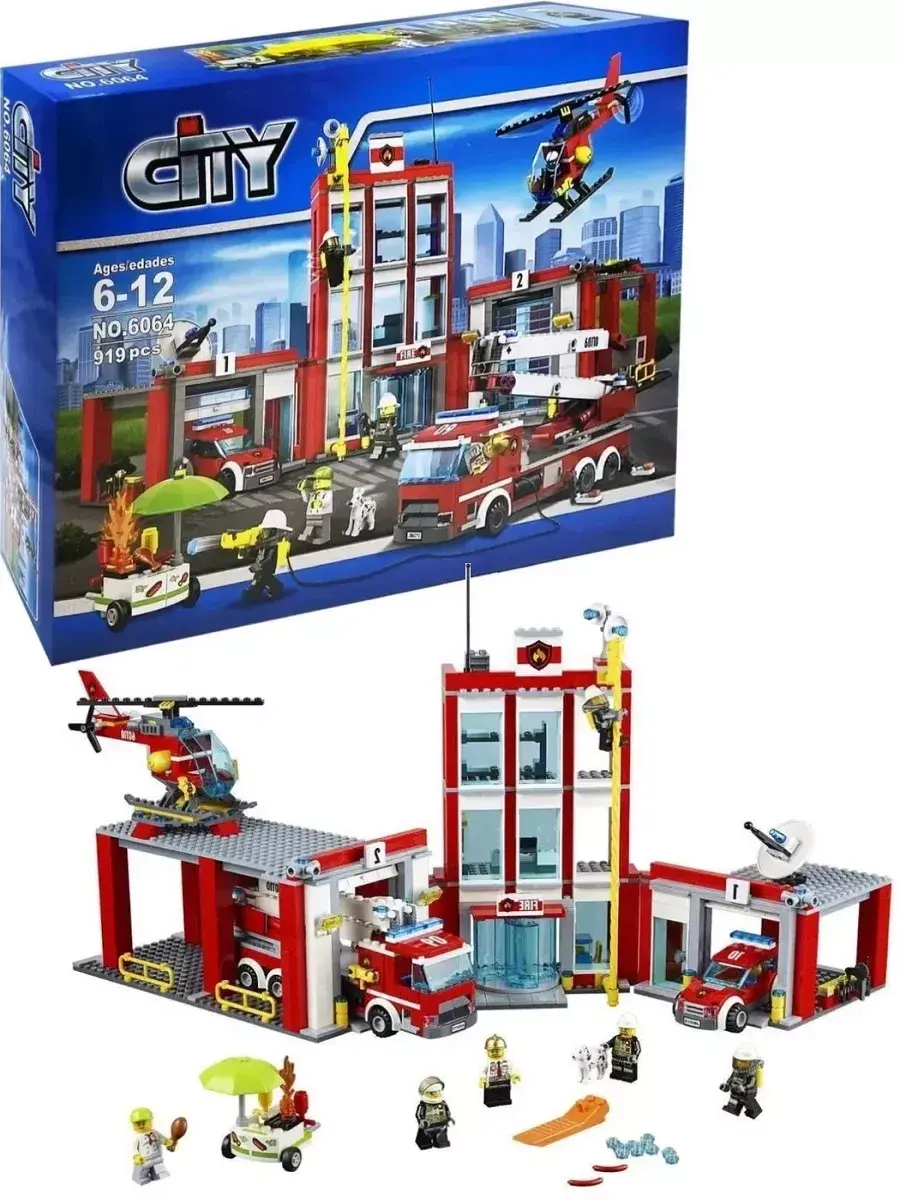 Конструктор Сити Пожарная часть 919 деталей 6064 станет отличным подарком для Вашего ребенка! Из конструктора ребенок построит трехэтажное здание с двумя гаражами и вертолетной площадкой. В правом корпусе хранятся огнетушители и оборудование для пожарной машины. По утрам бригада из пяти человек проверяет исправность лестницы, брандспойта и сирены именно там. Механик проверяет двигатель грузовика, чтобы ничто не помешало спасателям быстро добраться к месту пожара. В левом корпусе стоит маленькая машина, которой пользуются патрульные. Они следят, чтобы на улицах было спокойно, и тушат мелкие возгорания: например, траву или мусорные баки. Наверху стоит вертолет. Он принимается за дело, когда пожар вспыхнул в труднодоступной части города или где-то на высотке. Вертолет не стоит в пробке и добирается до места быстрее грузовика. Когда в городе спокойно, бригада поднимается на второй этаж: там можно выпить чай и поиграть в карты. В комплекте есть преданный пес, любимец всей бригады - веселый терьер, который не раз спасал жизни жителям города.