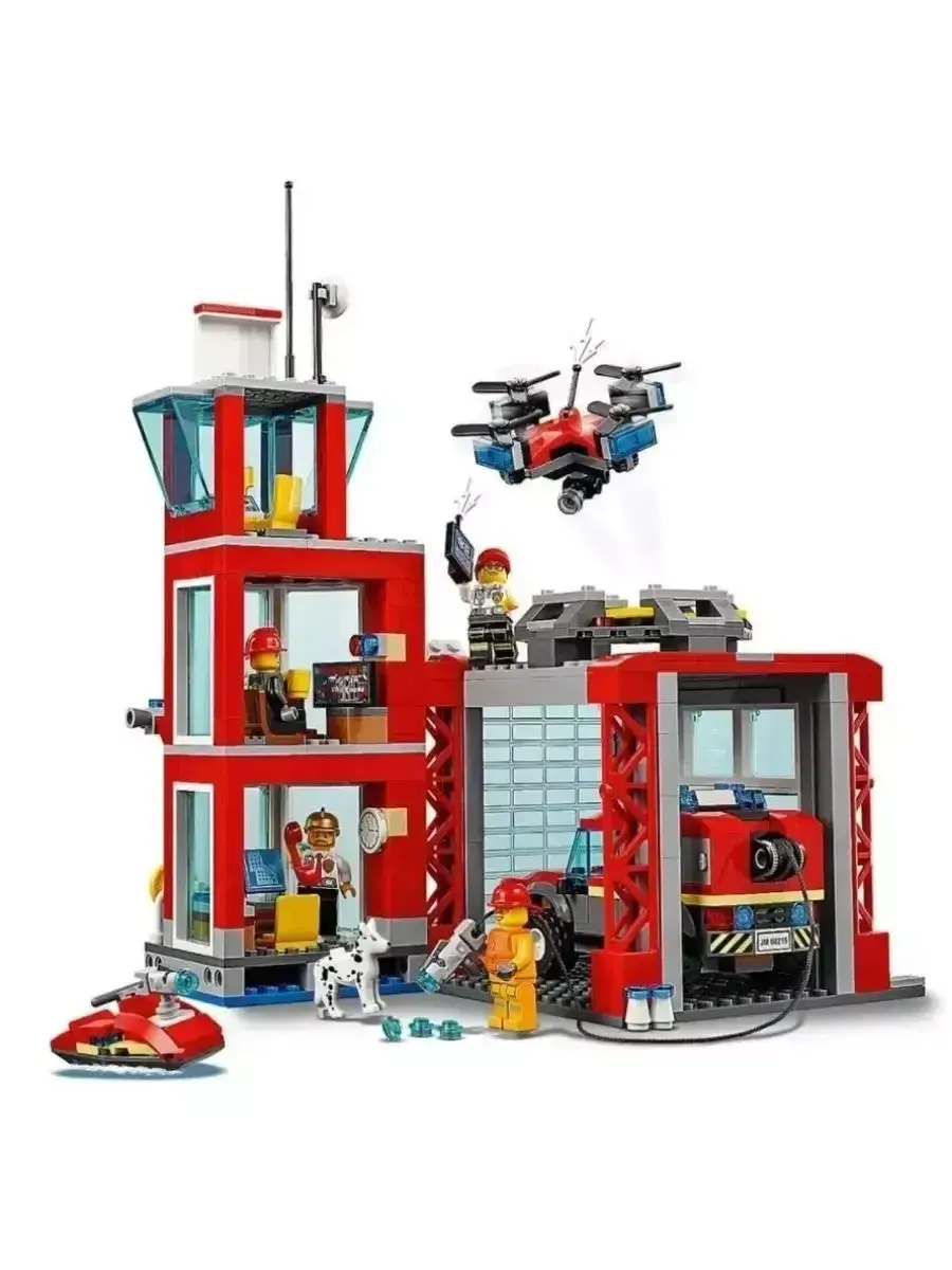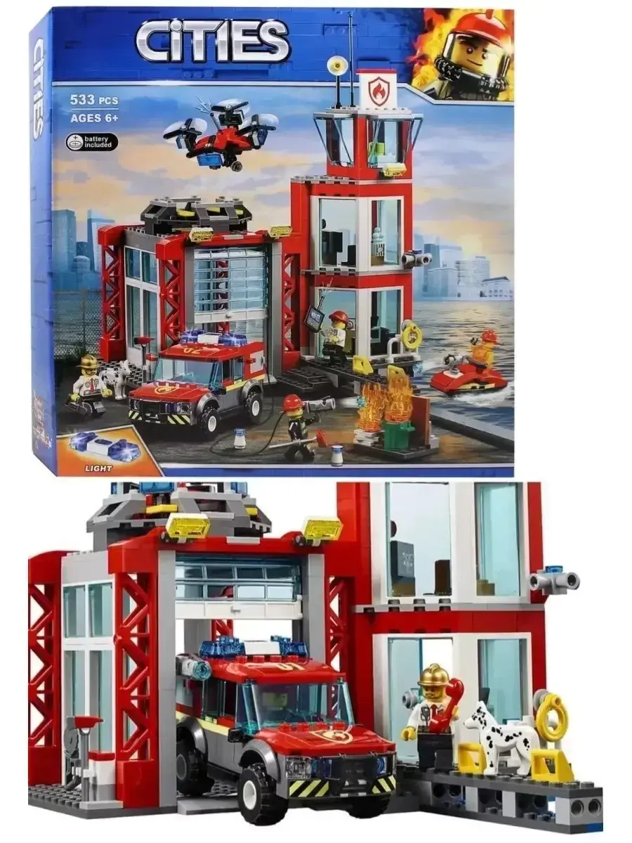 Конструктор Сити Пожарное депо — это увлекательный набор из 533 деталей, который позволит ребёнку создать полноценную пожарную станцию с гаражом для техники и штабом спасателей. В комплект входят пожарная машина с выдвижной лестницей, мотоцикл, здание депо с подъёмником для машин, фигурки пожарных и аксессуары для тушения пожаров. Детали продуманы до мелочей и дают возможность разыгрывать настоящие спасательные миссии.