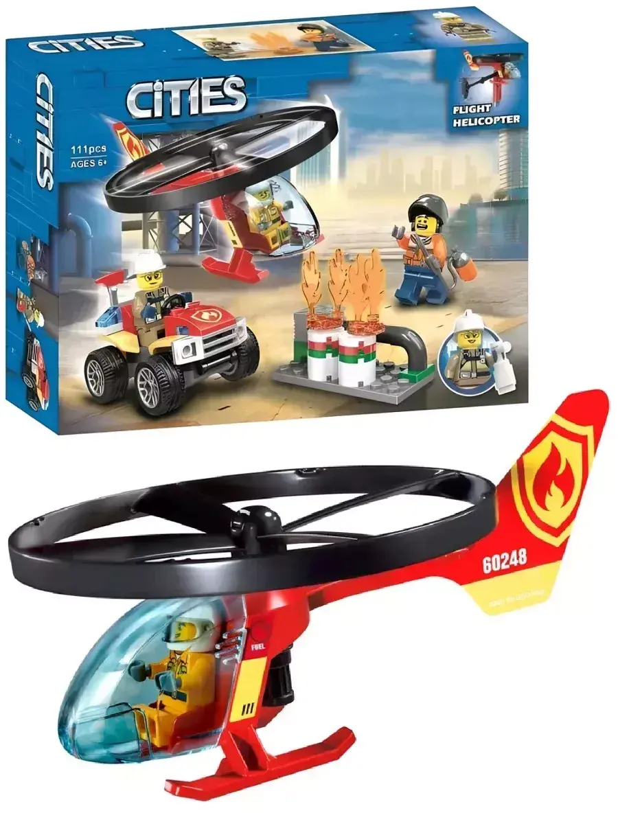 Конструктор «Сити Пожарный спасательный вертолёт» — это увлекательный набор из 111 деталей, который позволяет ребёнку собрать реалистичную модель пожарного вертолёта, готового к спасательным операциям в самых труднодоступных местах. Вертолёт оснащён вращающимися лопастями, открывающейся кабиной пилота и специальным оборудованием для тушения пожаров и спасения людей. В комплект входят мини-фигурка пилота-спасателя и необходимые аксессуары — пожарный шланг, спасательная корзина и инструменты.