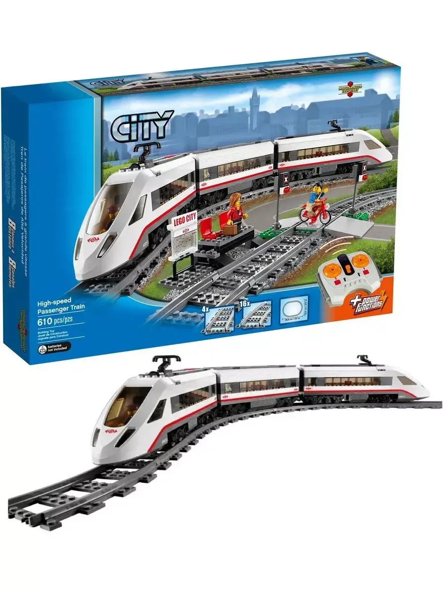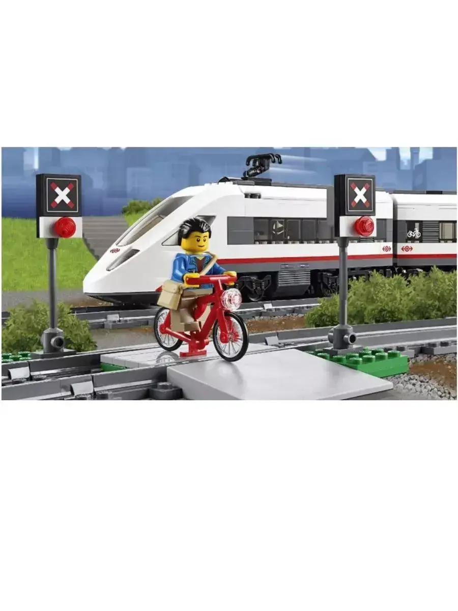 Конструктор Сити Скоростной пассажирский поезд — это увлекательный набор из 610 деталей, который позволяет ребёнку построить современный высокоскоростной поезд и воссоздать атмосферу настоящих железнодорожных путешествий. В комплект входят локомотив с кабиной машиниста, два пассажирских вагона, железнодорожный переход, светофор, участок рельсов и фигурки пассажиров и персонала.