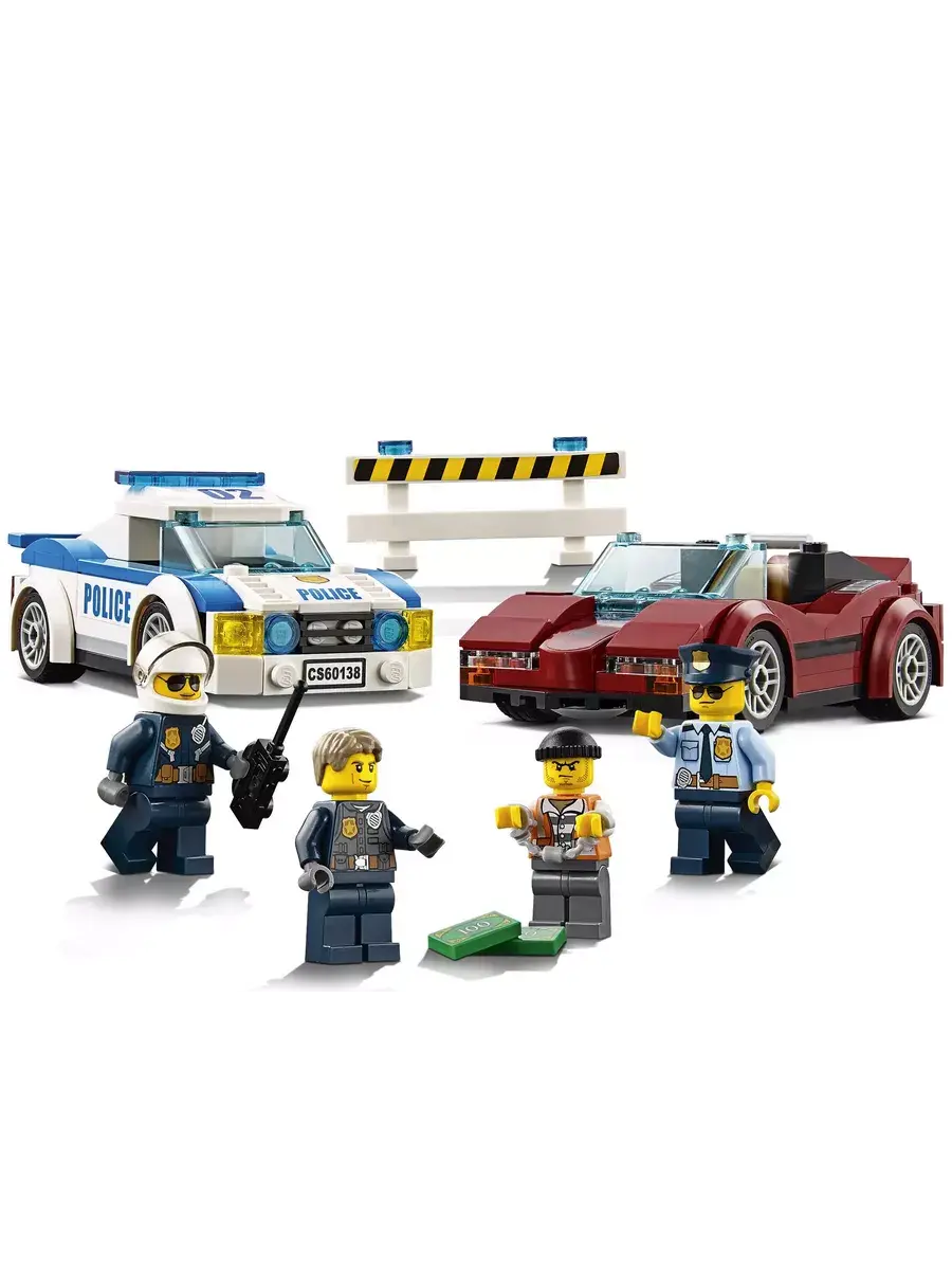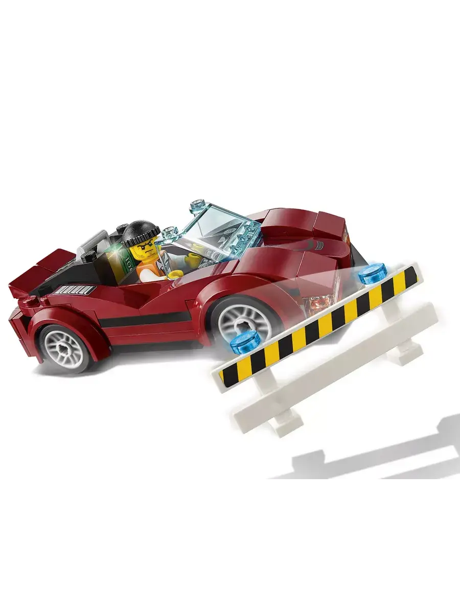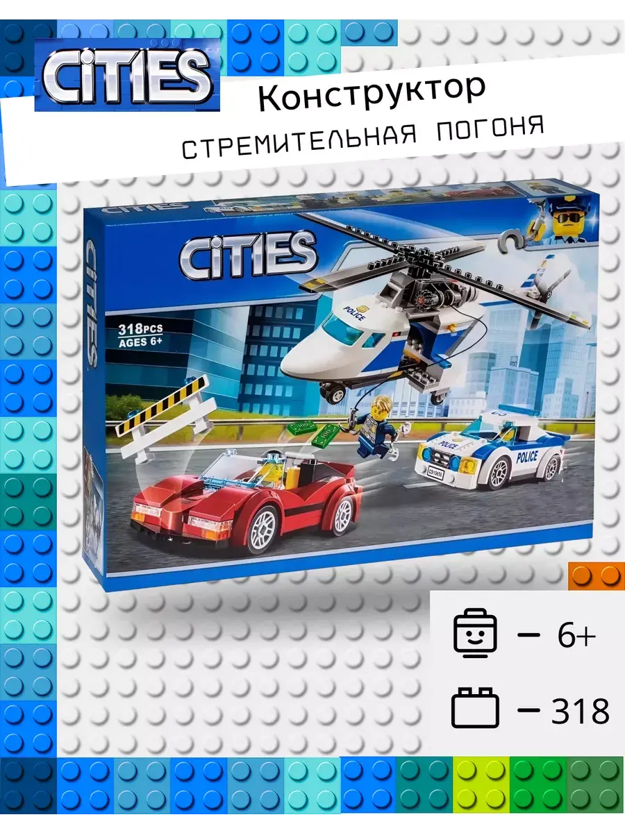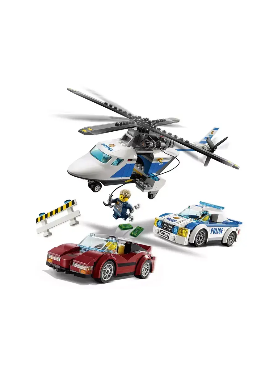 Тревога, тревога! Вор украл деньги и золотые слитки и бросился наутек! Срочно догони его вместе с отважными полицейскими. Садись в полицейскую машину, включай сирены на крыше, и мчись вдогонку за красным автомобилем. Или запрыгивай в вертолет, взлетай ввысь и догони преступника. А как будешь над ним – на лебедке спускайся в авто и запрыгивай в салон. Надень наручники на беглеца, прежде чем он покинет город. Как думаешь, удастся ли тебе это сделать? Особенности набора: · Вертолет с вместительным салоном для пассажиров, тремя колесами, вращающимися винтами на крыше и хвосте; · Лебедка с крюком на барабане, закрепленном на вертолете; · Полицейский автомобиль с сиреной сверху и задним спойлером; · Красный автомобиль преступника с открытым салоном; · Аксессуары: заграждения, деньги и слитки, наручники, головные уборы; 4 мини фигурки: пилот, 2 полицейских и преступник.