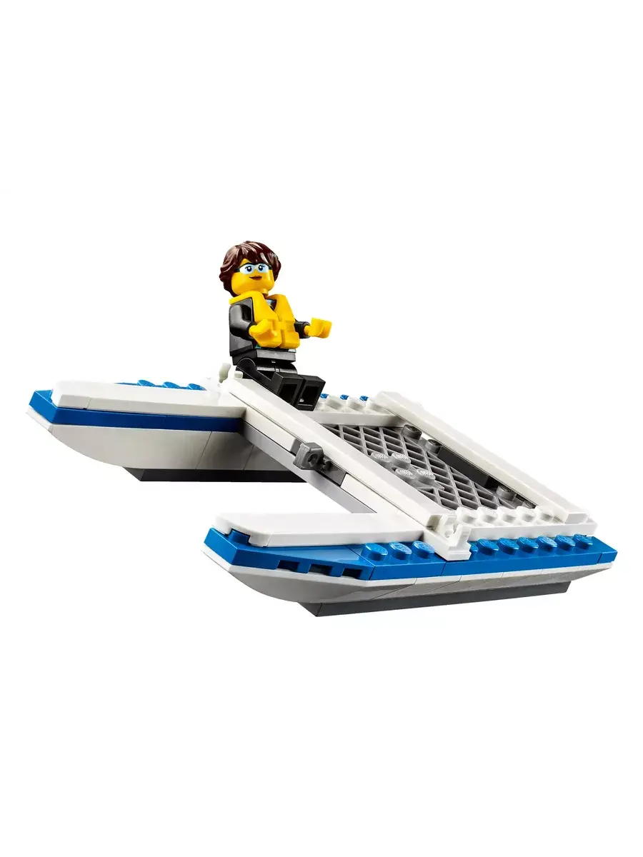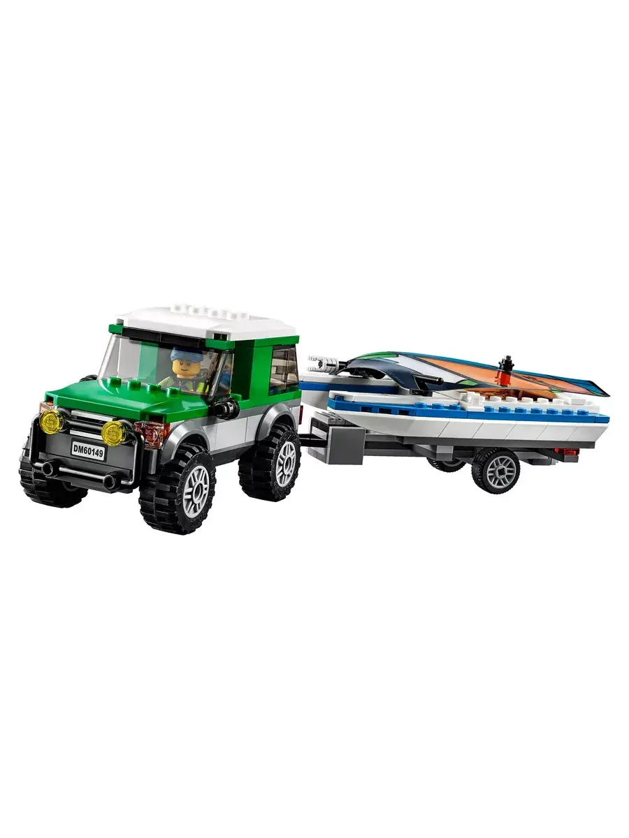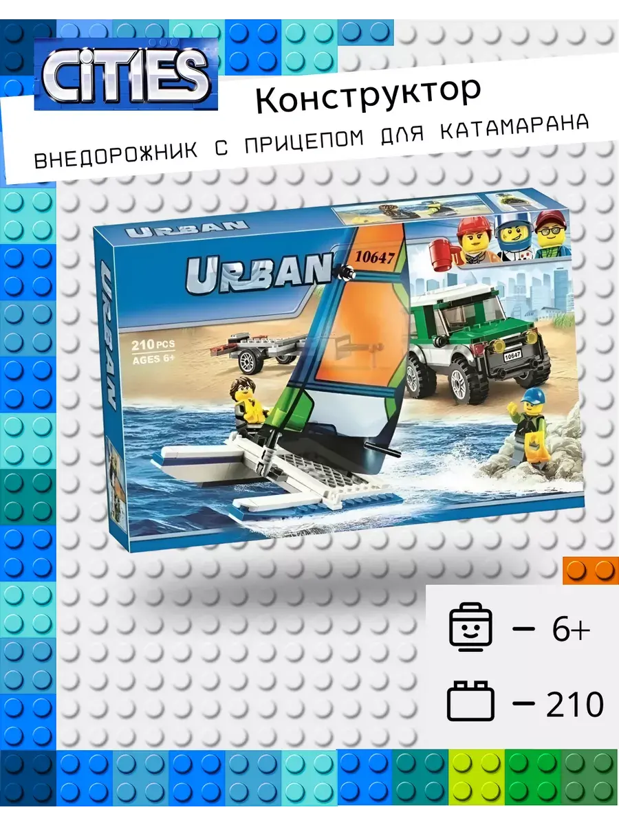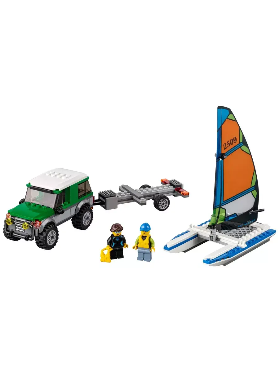 Из конструктора «Cities. Внедорожник с прицепом для катамарана» 10647 вы построите транспортное средство из 210 деталей. С его помощью вы сможете не только перевозить морские средства передвижения для активного отдыха, но и участвовать в увлекательных соревнованиях. Автомобиль выполнен в черно-зеленых тонах, а белая крыша и вставки серого, красного и желтого цветов выделяются на общем фоне. На капоте находится мощная система освещения, представленная фарами круглой формы. Кабина водителя оснащена защитным стеклом, которое не дает разгуляться ветру. Платформа для перевозок прикреплена к заднему бамперу. Она достаточно массивная, поэтому может выдерживать большие нагрузки. Почувствуйте дуновение теплого ветерка и поспешите приступить к своим повседневным обязанностям.