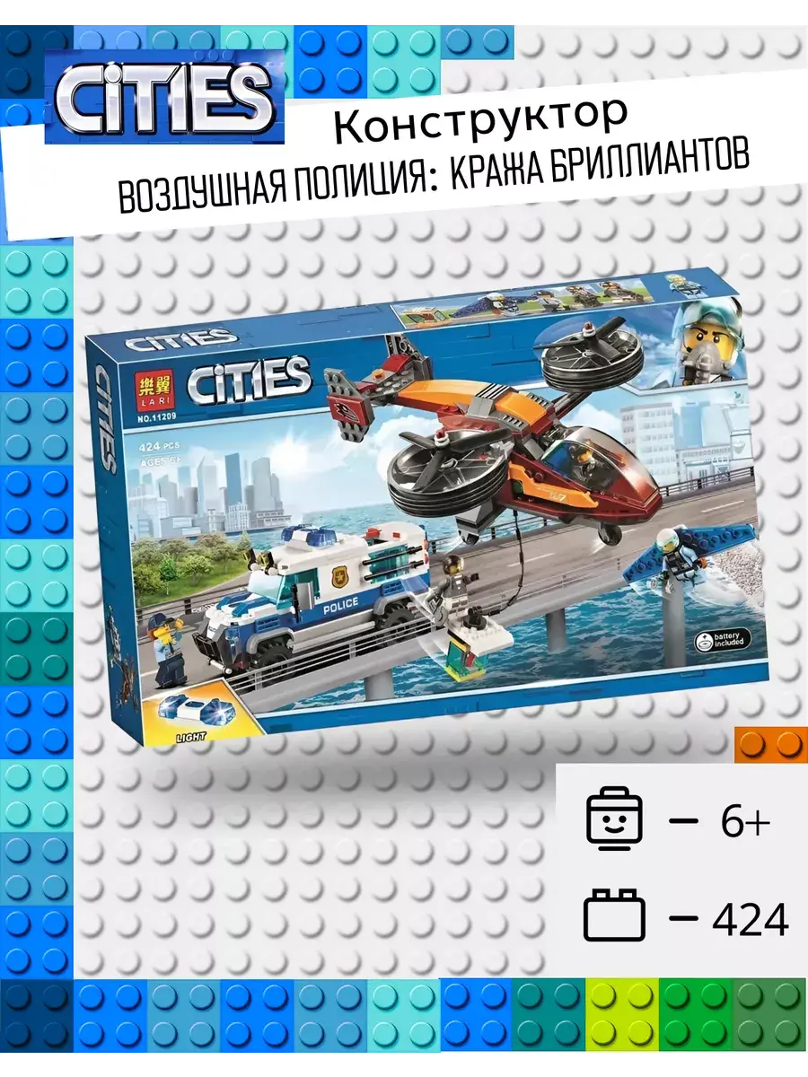 Конструктор "Воздушная полиция: Кража бриллиантов". Детский конструктор – это увлекательное путешествие в мир творчества и фантазии, он способствует развитию мелкой моторики, координации и воображения. Конструктор учит видеть конструкцию объекта и анализировать ее основные части, их функциональное назначение. Так же данный конструктор закрепляет навыки коллективной работы: умение распределять обязанности, работать в соответствии с общим замыслом, не мешая друг другу. Конструктор полностью безопасен, его удобно хранить, каждая деталь тщательно продумана и прорисована, что создает больше реалистичности и дарит незабываемые впечатления от сборки. Подходит как для одиночной, так и для игры командой. У конструктора есть подробная инструкция по сборке, следуйте инструкции и сборка не составит труда. Подарите ребенку незабываемые впечатления от данного конструктора, данный набор может стать как подарком на праздник, так и подарком без повода.