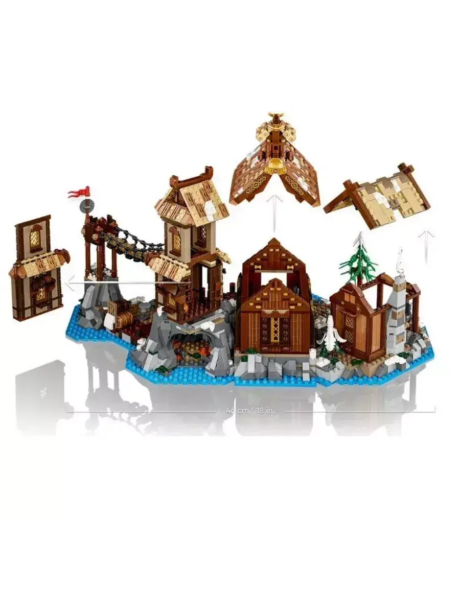 Скандинавская деревня представлена в виде трех соединяемых секций, которые можно собрать в единую модель высотой более 24 см, шириной 46 см и глубиной 26 см. Этот большой набор позволяет создать удивительную и детализированную модель, которая станет красочным украшением любой коллекции или интерьера.