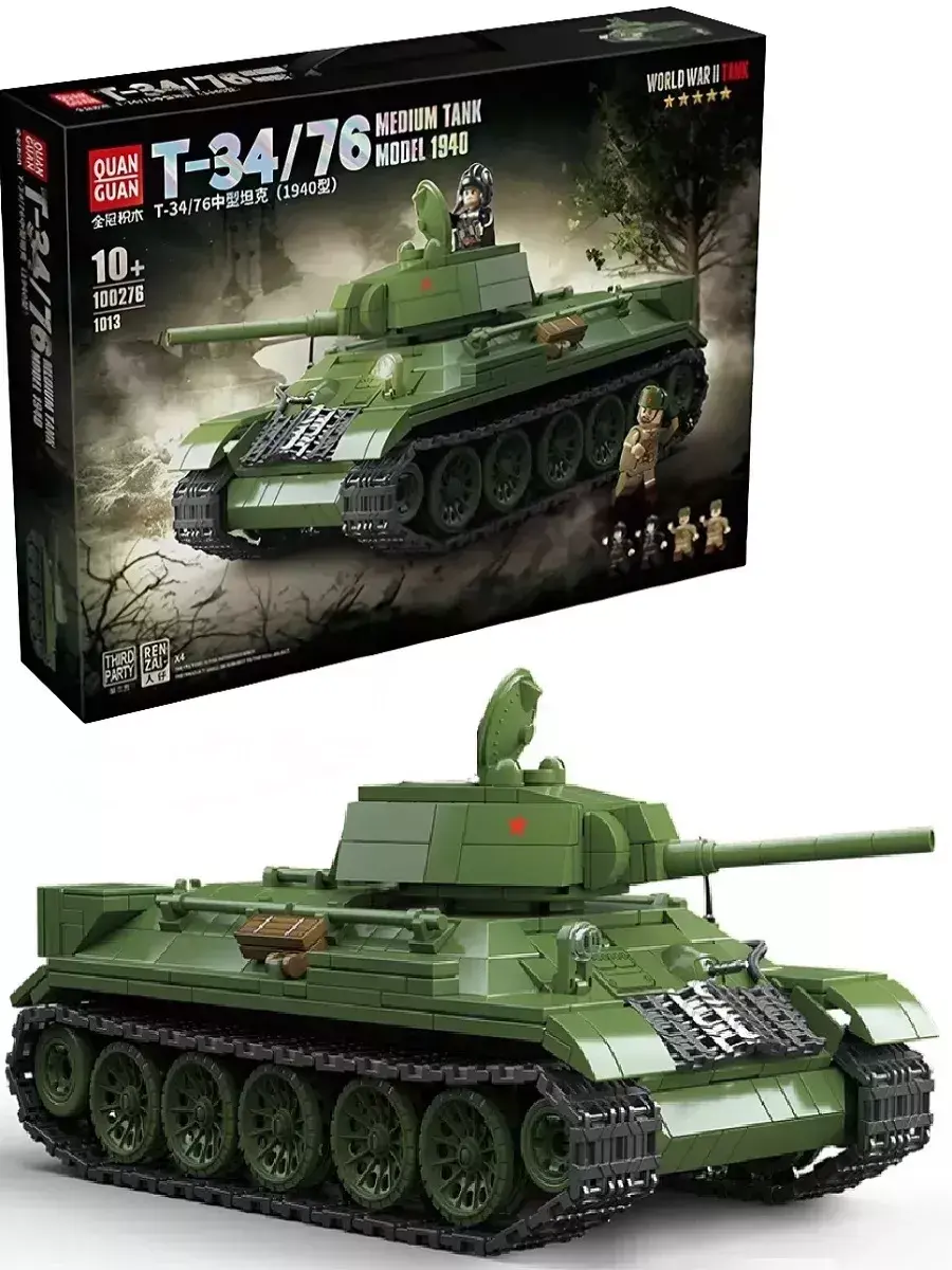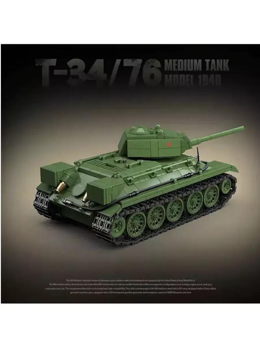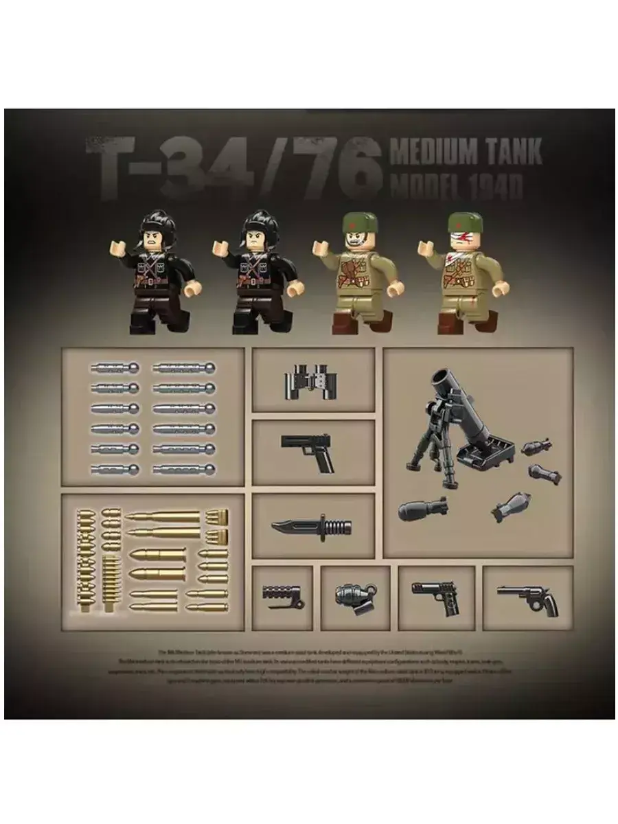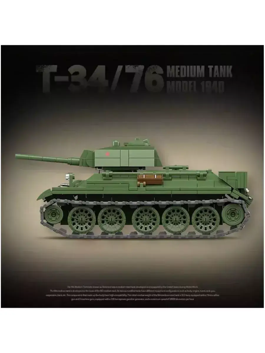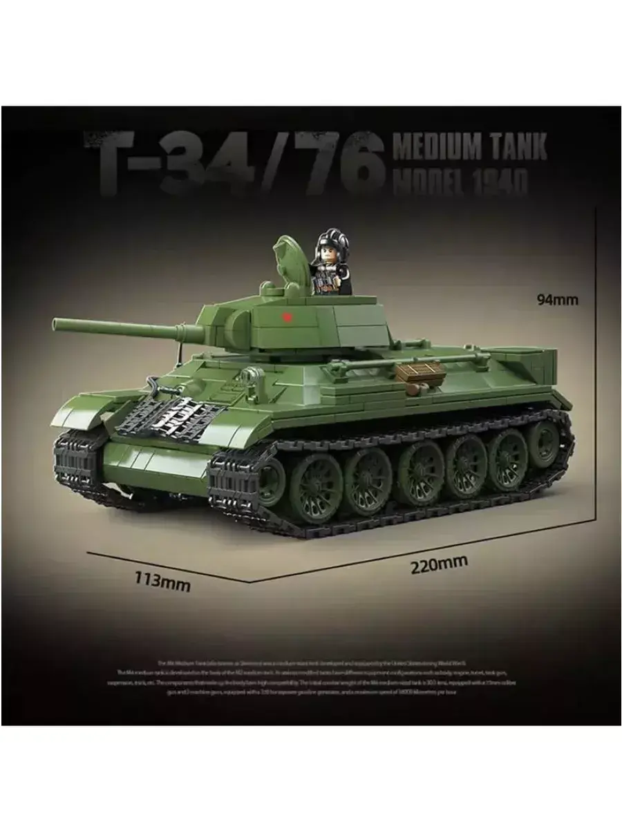 Конструктор из серии Военная техника Советский средний танк Т-34/76 Выпускался серийно с 1940 года. В период с 1942 по 1944 год был основным танком Красной армии. Из деталей набора можно собрать очень детализированную модель легендарного советского танка времён Второй мировой войны, Башня, гусеницы подвижны. Башню можно снять и заглянуть внутрь. В комплекте минифигурки и аксессуары. Детский военный конструктор – лучший подарок ребёнку. Яркая подарочная упаковка может стать отличным фоном для будущих гонок и сражений.