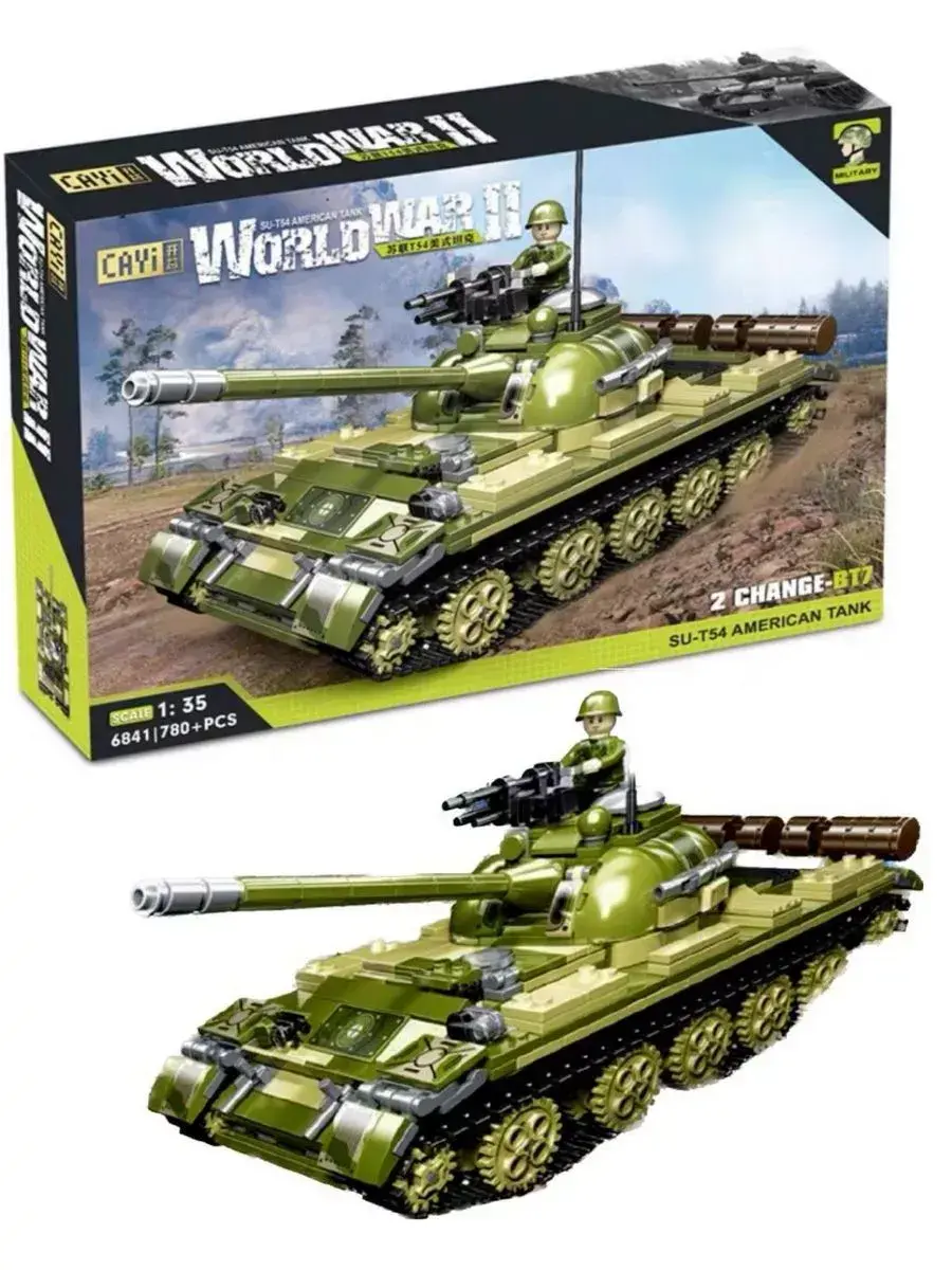 Средний танк Т-54 разработали в 1946 году в Нижнем Тагиле в КБ под руководством А. А. Морозова. Модель танка выполнена в масштабе 1:35 В комплект входят 2 минифигурки, благодаря которым процесс игры станет еще более увлекательным. С этой игрушкой ребенок сможет в полной мере проявить фантазию и реализовать множество сюжетов военного времени!