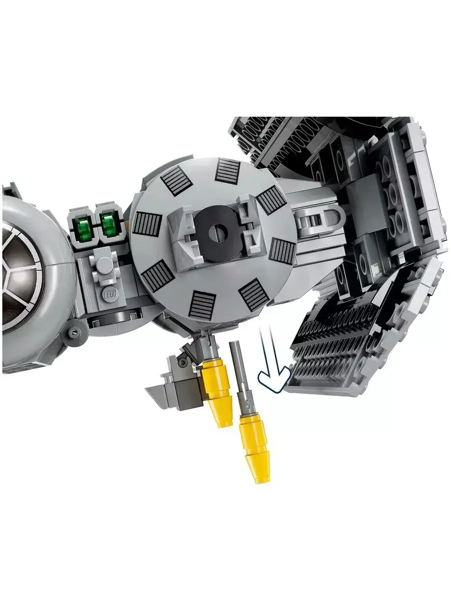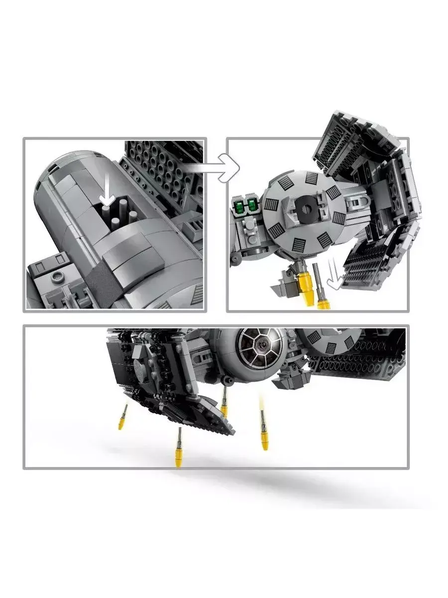 В набор входят все необходимые элементы для сборки корпуса с характерными острыми формами и яркими деталями, что придаёт модели высокую степень аутентичности. Особое внимание уделено мелким деталям, таким как кабина пилота, оружие и крылья, что делает собранный корабль похожим на оригинал из знаменитой саги. Модель оснащена подвижными элементами, позволяющими менять позы и создавать динамичные сцены боя.