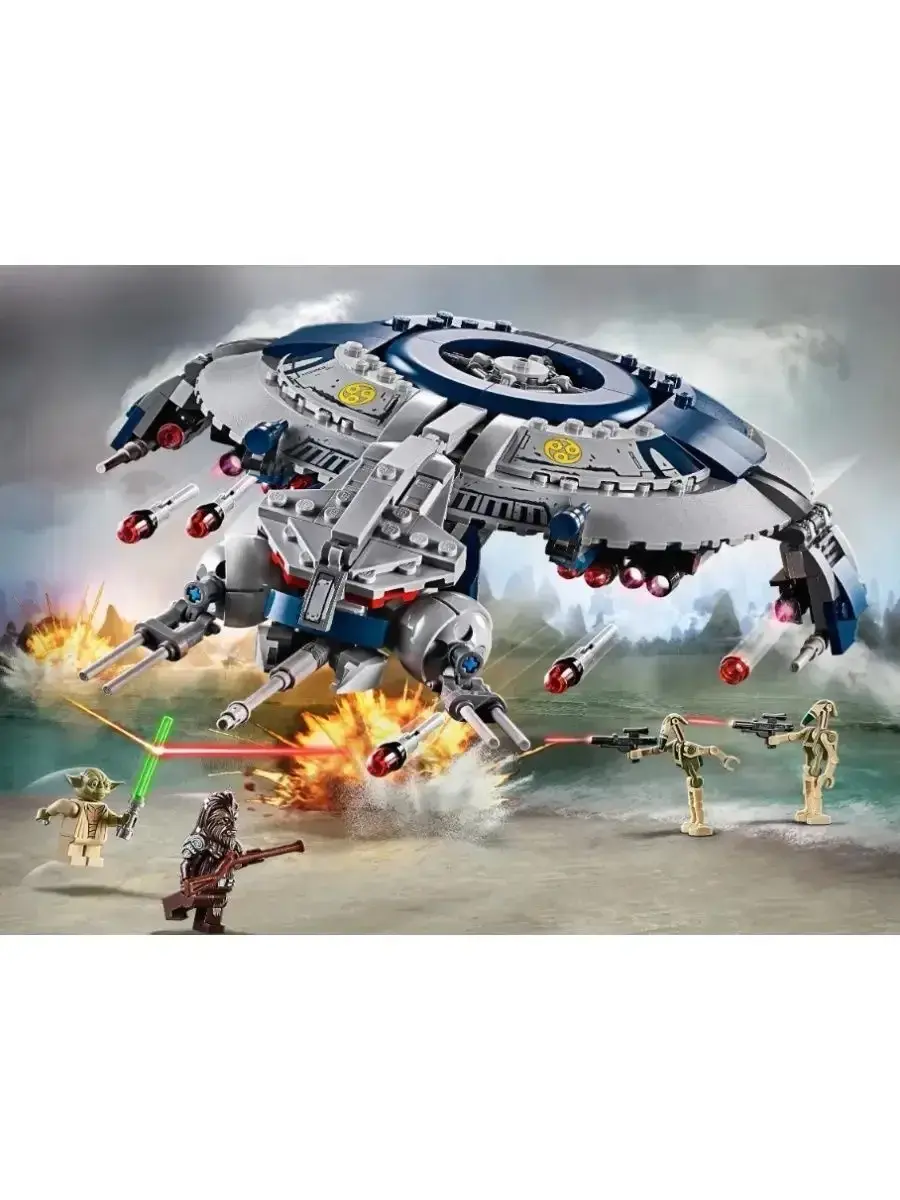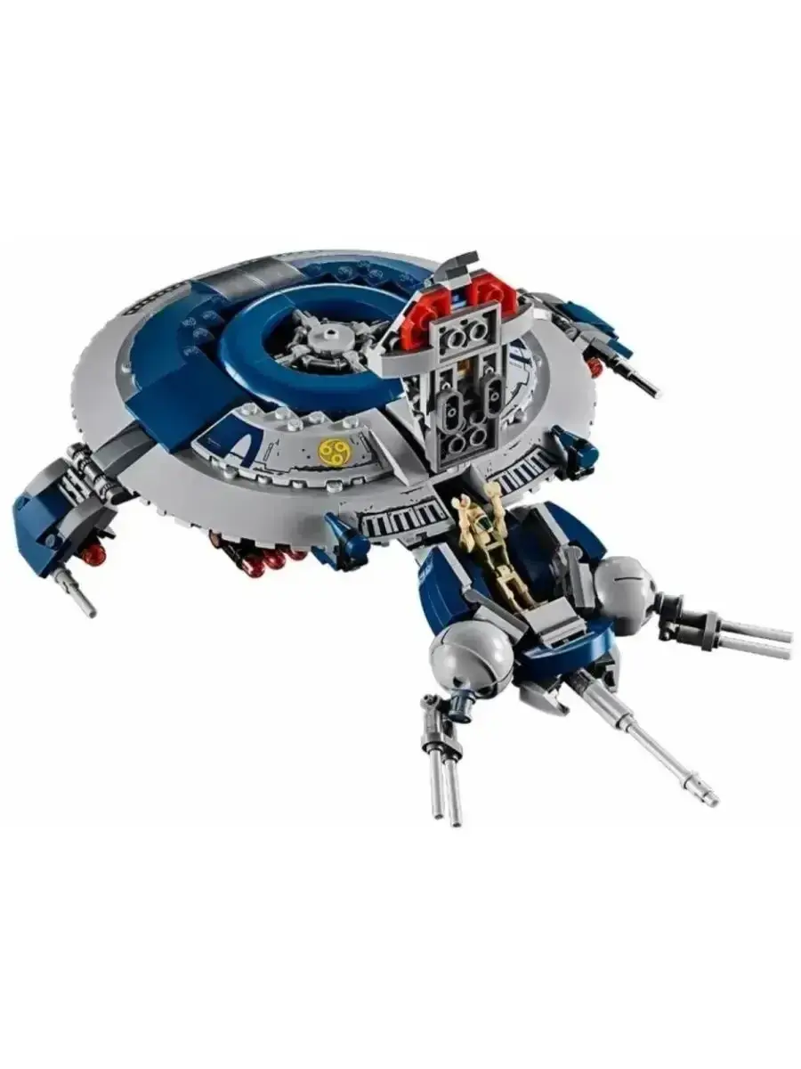 Конструктор пластиковый Дроид-истребитель - игровой набор по мотивам "Звездных Войн". Знаменитое транспортное средство саги, боевой корабль дроидов - округлый истребитель, оборудованный великолепно детализированной кабиной, принтованными отсеками, опускающимися шасси, двумя пушками и четырьмя ракетными установками, выстреливающими попарно. В набор включены минифигурки Йоды, вуки Тарфулла и двух стрелков-дроидов. Собранный дроид-истребитель отличным подарком для детей, увлеченных космическими кораблями и сражениями.