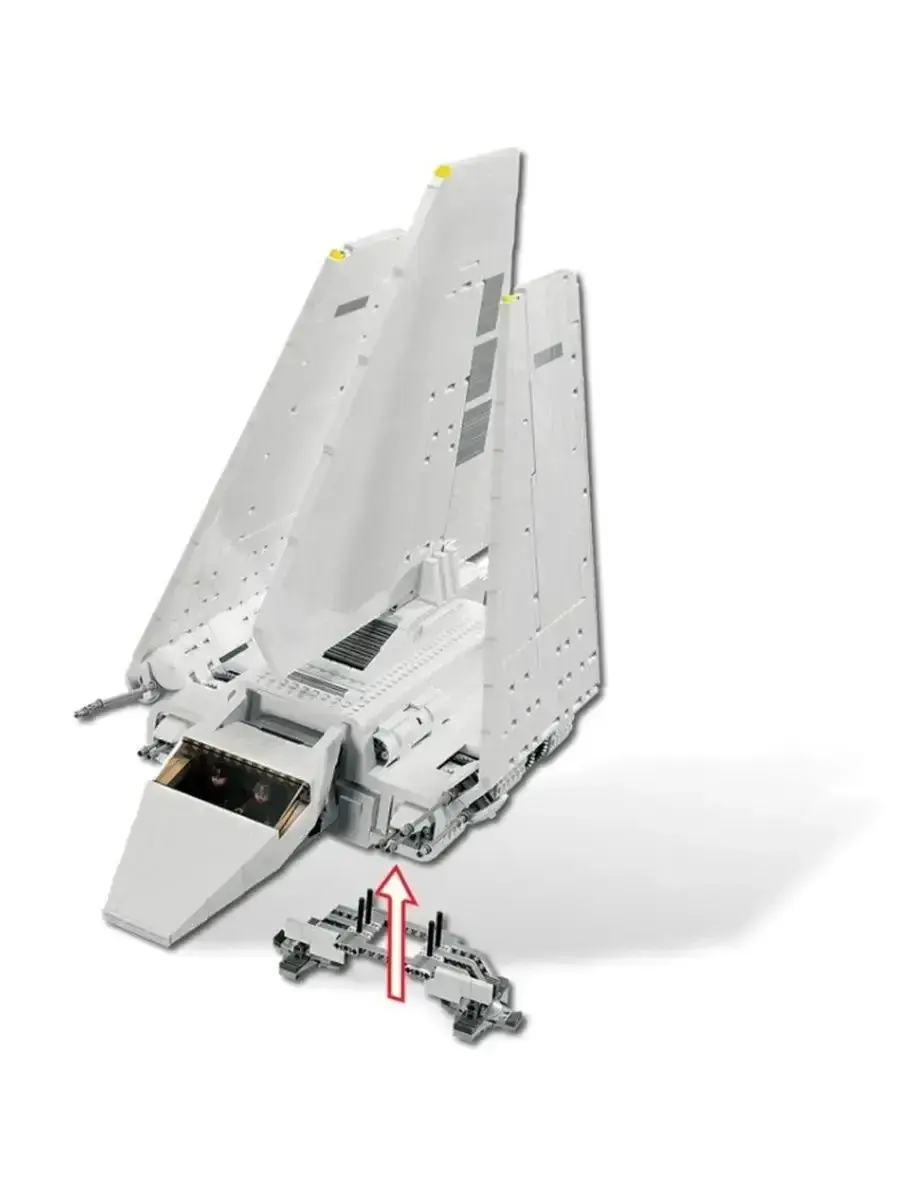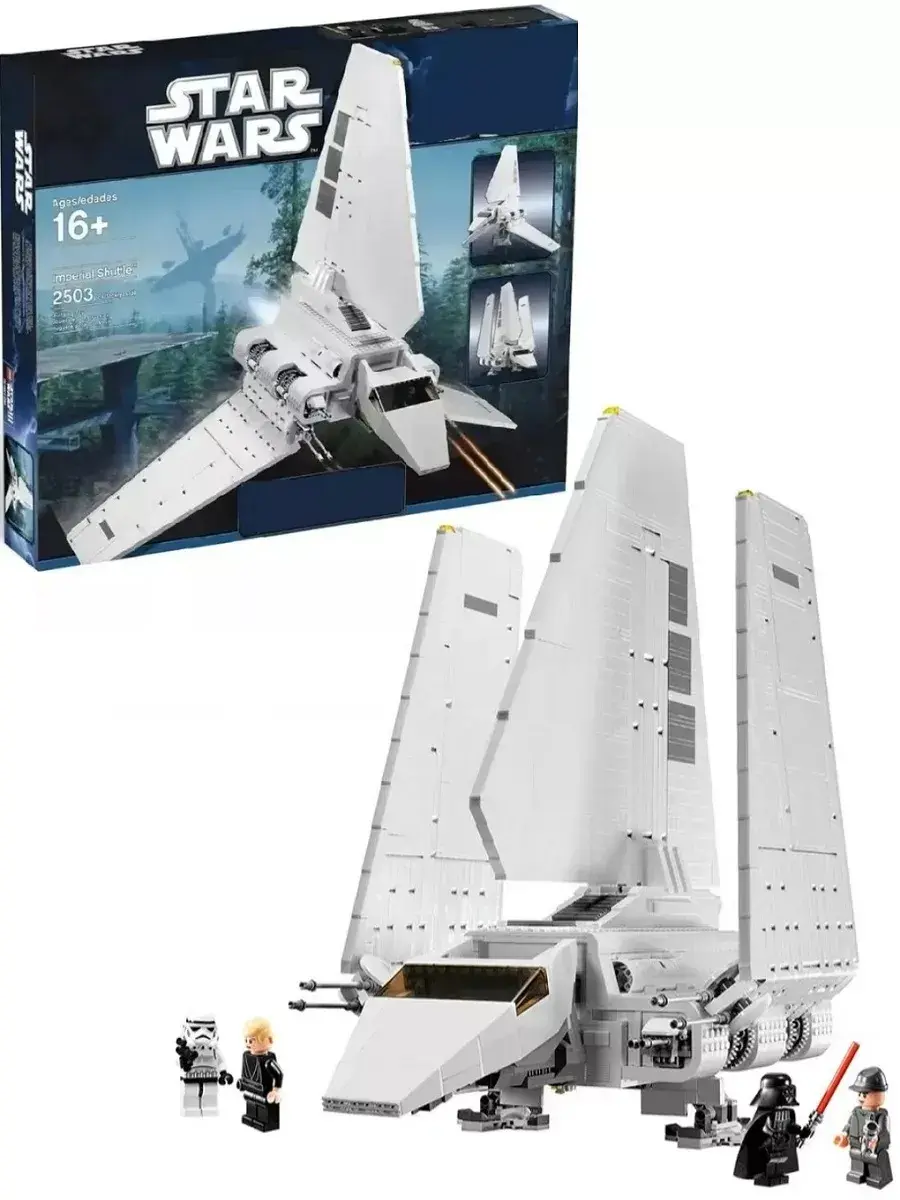 Модель Имперского Шаттла выполнена с высокой степенью детализации: подвижные крылья, раздвижные боковые двери, кабина пилота и грузовой отсек — всё это делает сборку захватывающим процессом, а готовую модель — впечатляющим экспонатом. В комплект входят мини-фигурки имперских офицеров и штурмовиков, что позволяет воссоздавать легендарные сцены из фильмов «Звёздные войны» и разыгрывать собственные сюжеты.