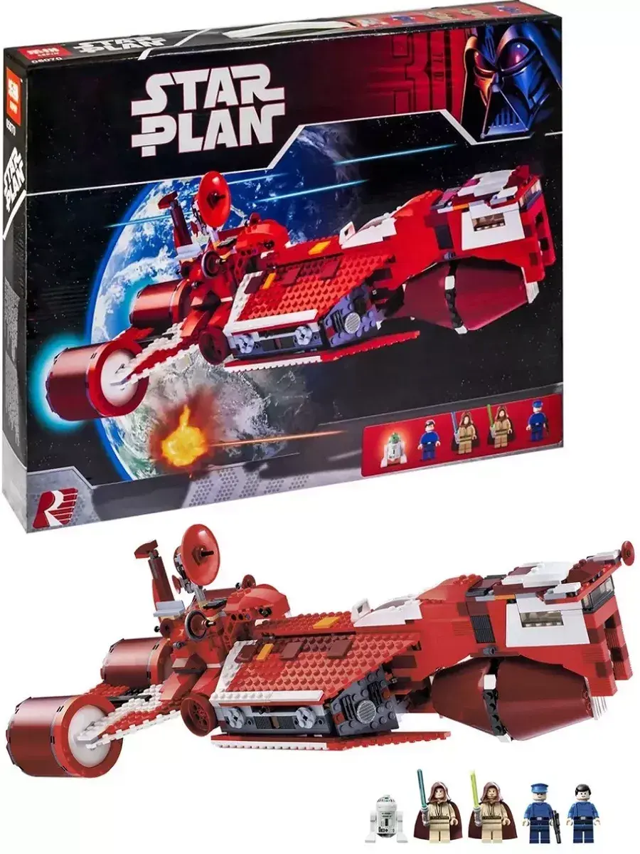 Модель крейсера выполнена с высокой степенью детализации: здесь есть характерные формы корпуса, подвижные элементы и тщательно проработанные детали, которые делают конструкцию максимально реалистичной. В комплект входят мини-фигурки пилотов и экипажа, что позволит воссоздавать захватывающие сцены из эпической саги и создавать собственные истории.