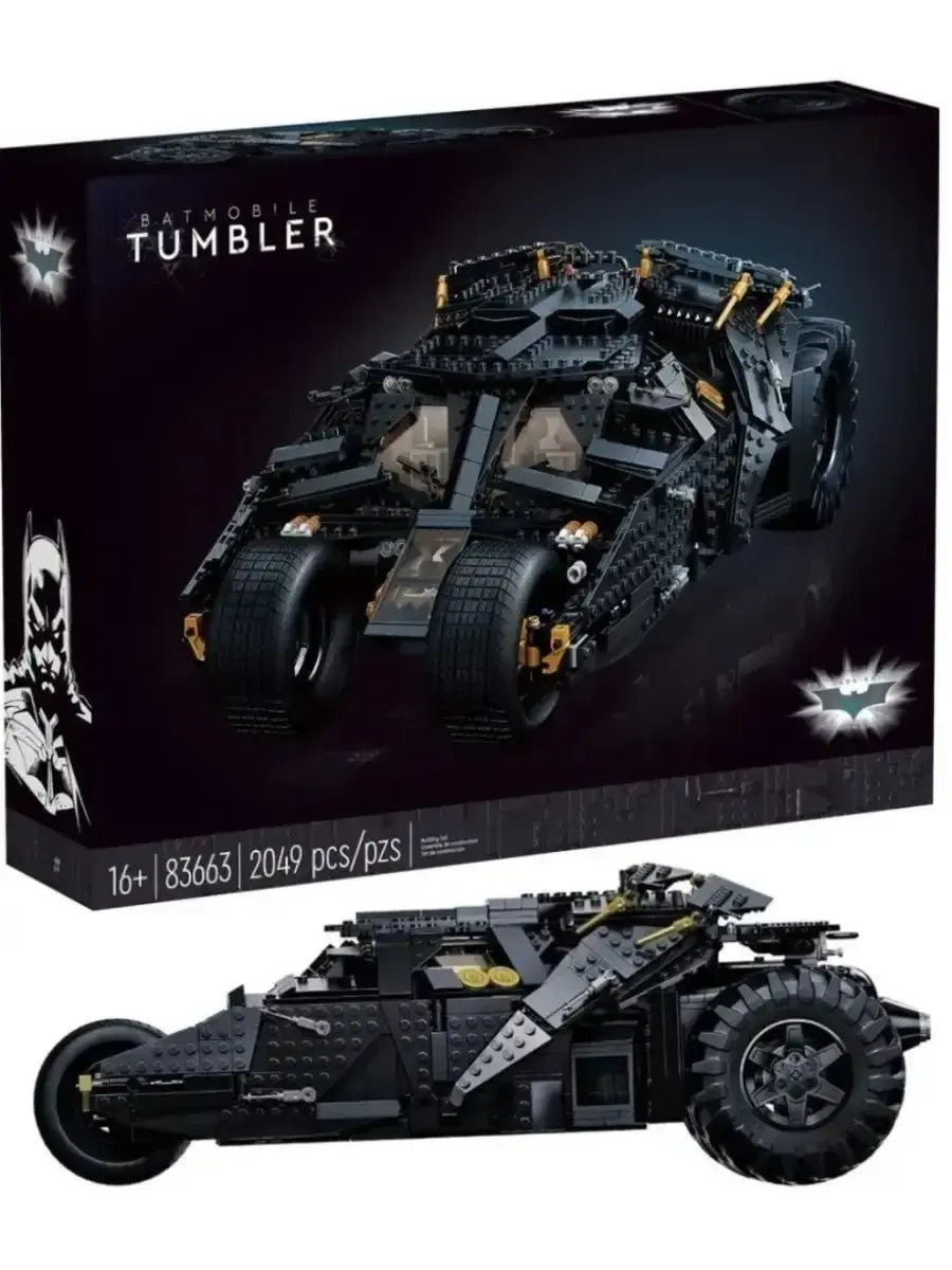 Эксклюзивный набор посвящён обновлённой версии бэтмобиля, показанной в двух фильмах Кристофера Нолана Бэтмен: Начало и Тёмный рыцарь. интересной особенностью автомобиля является конструкция моторного отсека, расположенного сзади. Размер модели бэтмобиля в собранном виде составляет 45х23х13 см. Также в наборе Вы найдёте демонстрационную панель с описанием технических характеристик реального бэтмобиля и 2 эксклюзивные минифигурки: Бэтмен и Джокер.
