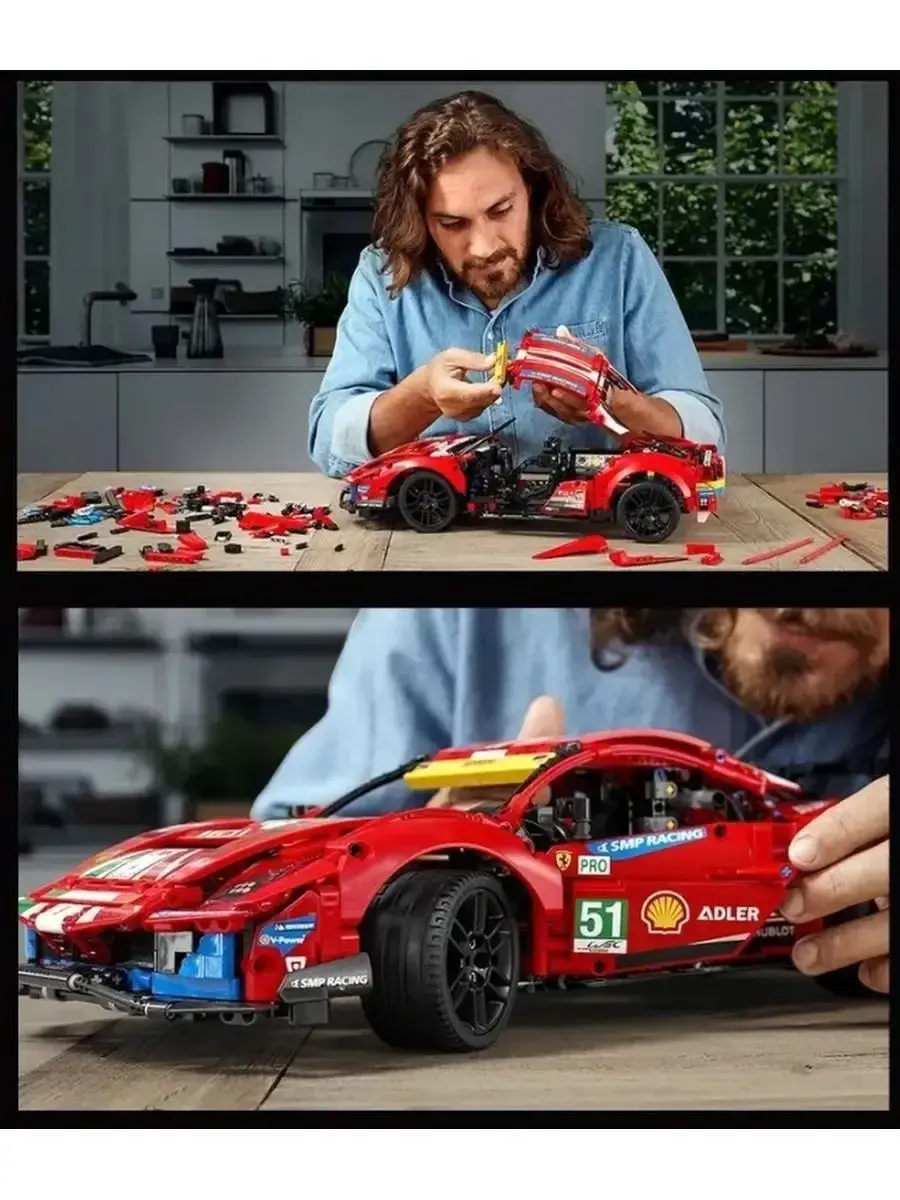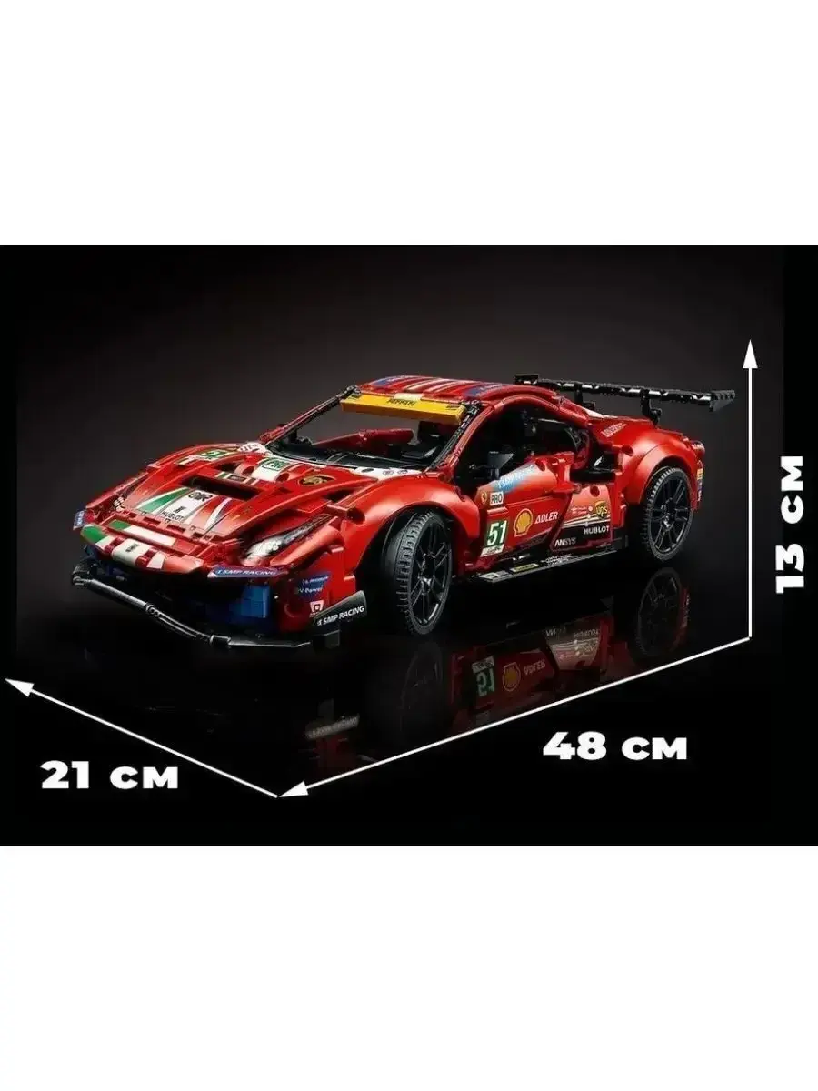 Из деталей конструктора собирается детализированная масштабная модель легендарного гоночного болида, дебютировавшего на гоночных трассах в 2016 году. После ошеломительного появления Ferrari 488 GTE на треках, автомобиль, что называется, перевернул мир автогонок. Победы просто преследовали детище итальянских конструкторов. Множество великолепных достижений и престижных наград постоянно пополняют послужной список этого незаурядного автомобиля. Набор является прекрасным подарком всем любителям гонок на выносливость и станет достойным украшением полки коллекционера или интерьера истинного поклонника мира автоспорта. Коллекционная модель Ferrari имеет в своем арсенале работающую копию мощного восьмицилиндрового двигателя V8, поршни которого приходят в движение, как только автомобиль начинает перемещаться по игровой поверхности. Модель оснащена независимой подвеской всех колес, имеющей довольно большие ходы, позволяющие ей без труда преодолевать неровности поверхности. Размеры модели: более 13 см. в высоту, 48 см. в длину и 21 см. в ширину.