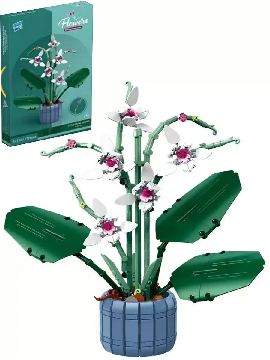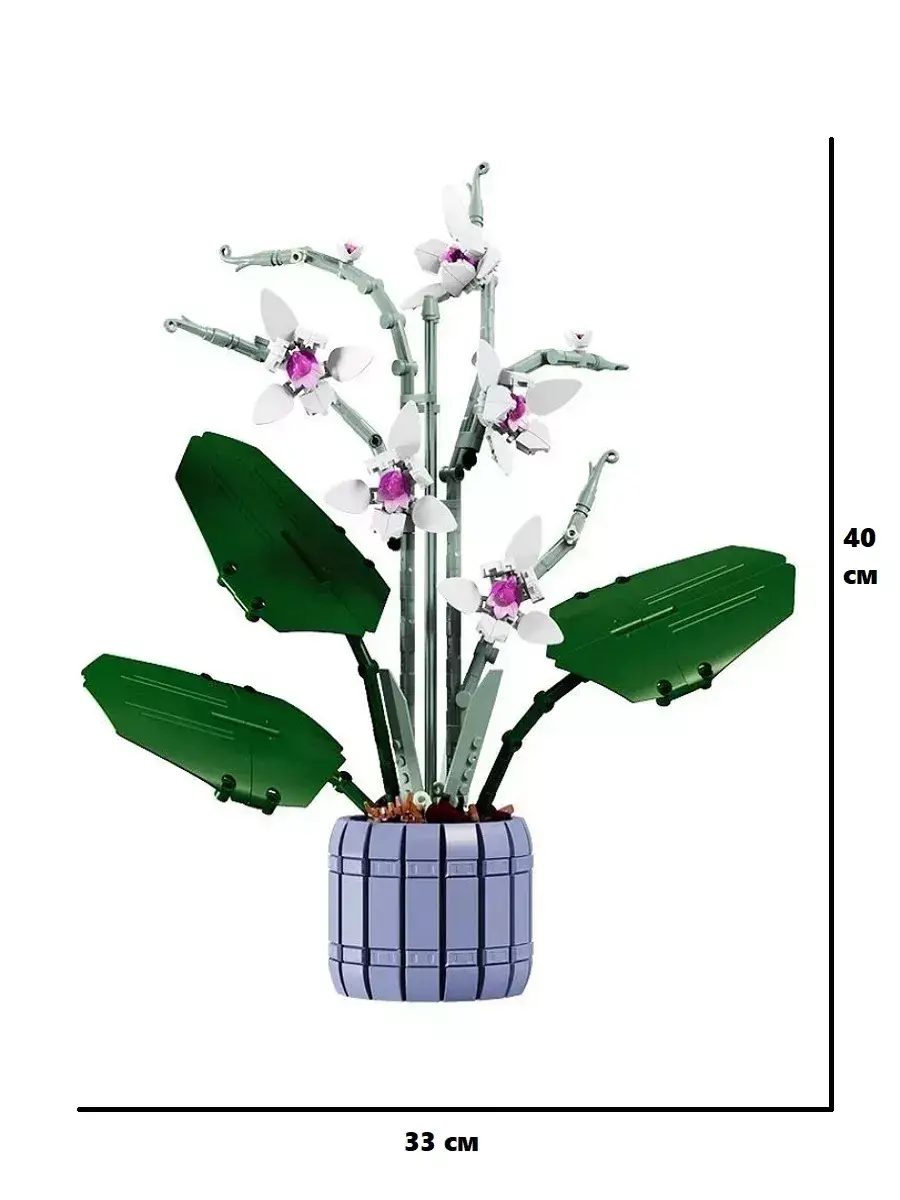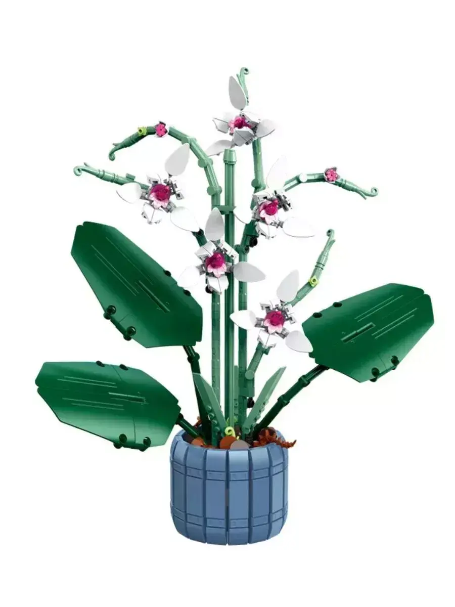 Вдохновленная настоящими орхидеями, модель имеет пять листьев у основания и два подвижных воздушных корня, которые придают растению реалистичный вид. Синяя рифленая ваза в форме кирпича может быть заполнена коричневыми элементами, изображающими кору настоящих орхидей. Ваше собственное украшение Орхидею можно расположить по-разному, перемещая ее стебли, цветы, корни и листья по желанию. Стебли также можно полностью перестроить для создания новых цветочных композиций. Собери свою собственную орхидею. Сделайте полезный проект, собрав конструктор орхидея с декоративным растением, чтобы украсить свой дом или офис. Ваша собственная модель - стебли, цветы, корни и листья можно вращать, чтобы изменить внешний вид украшения. Стебли также можно перестраивать для создания новых цветочных композиций. Расслабляющее строительство. Найдите минутку для себя, чтобы заняться этим строительным проектом.