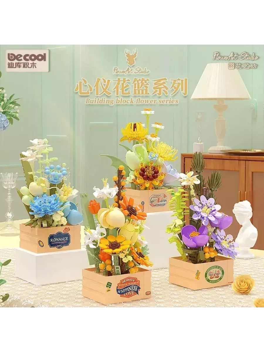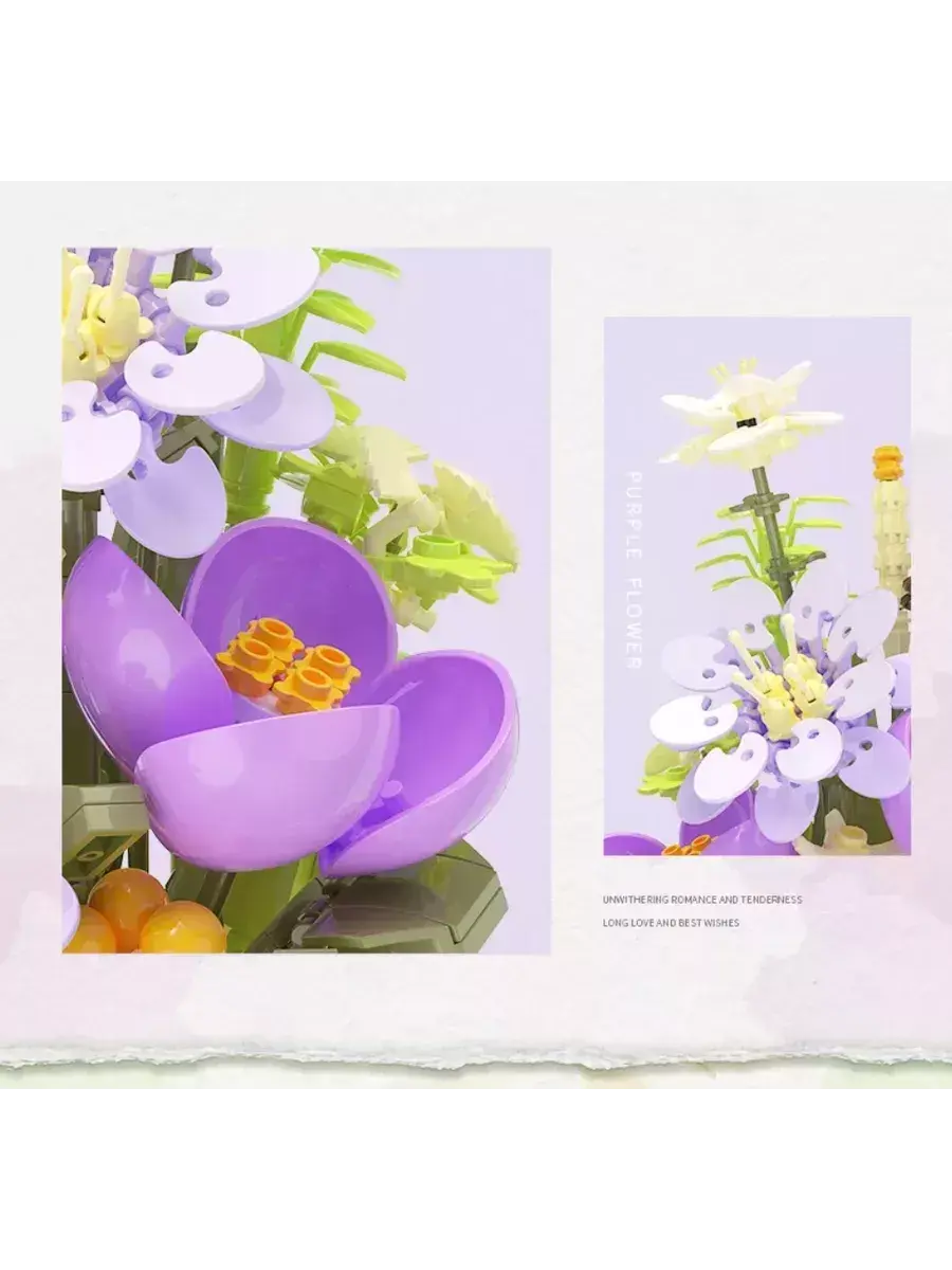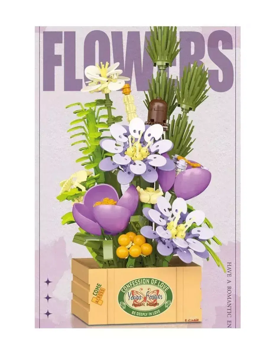 Создавайте свои уникальные композиции, экспериментируйте с размещением и сочетанием растений, чтобы получить неповторимый дизайн. Оригинальный букет впишется в любой интерьер. Набор цветов в ящичке способен украсить любой дом! Можно расположить собранный букет в гостиной, детской комнате или на рабочем месте. Цветочная композиция не только украсит пространство, но и будет притягивать к себе много внимания, вызывать восхищение глубиной и изяществом проработанных деталей! Конструктор Flowers подойдет в качестве подарка не только взрослым, но будет интересен детям и многим подросткам.