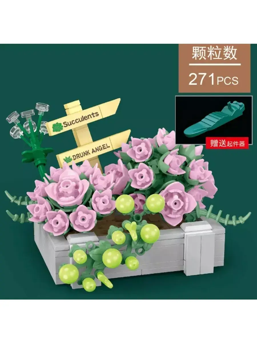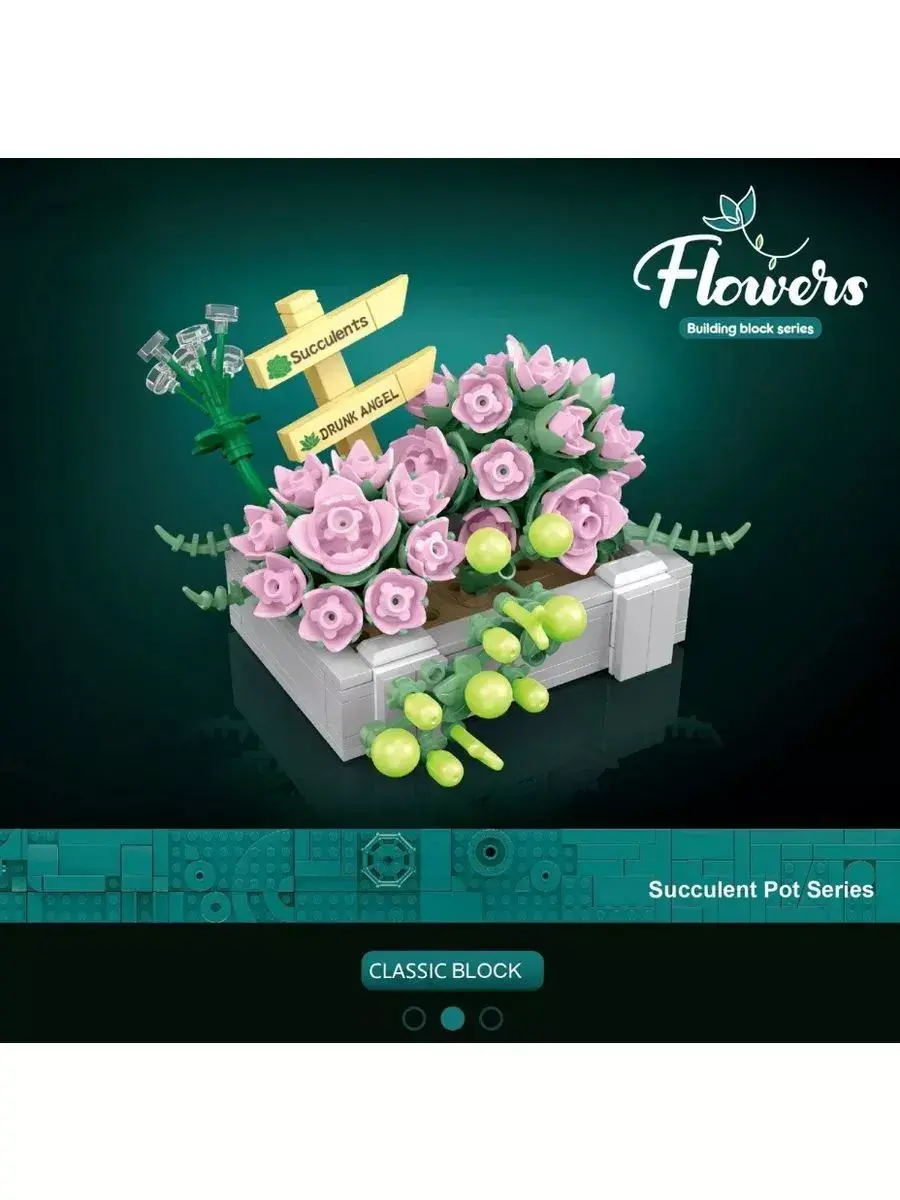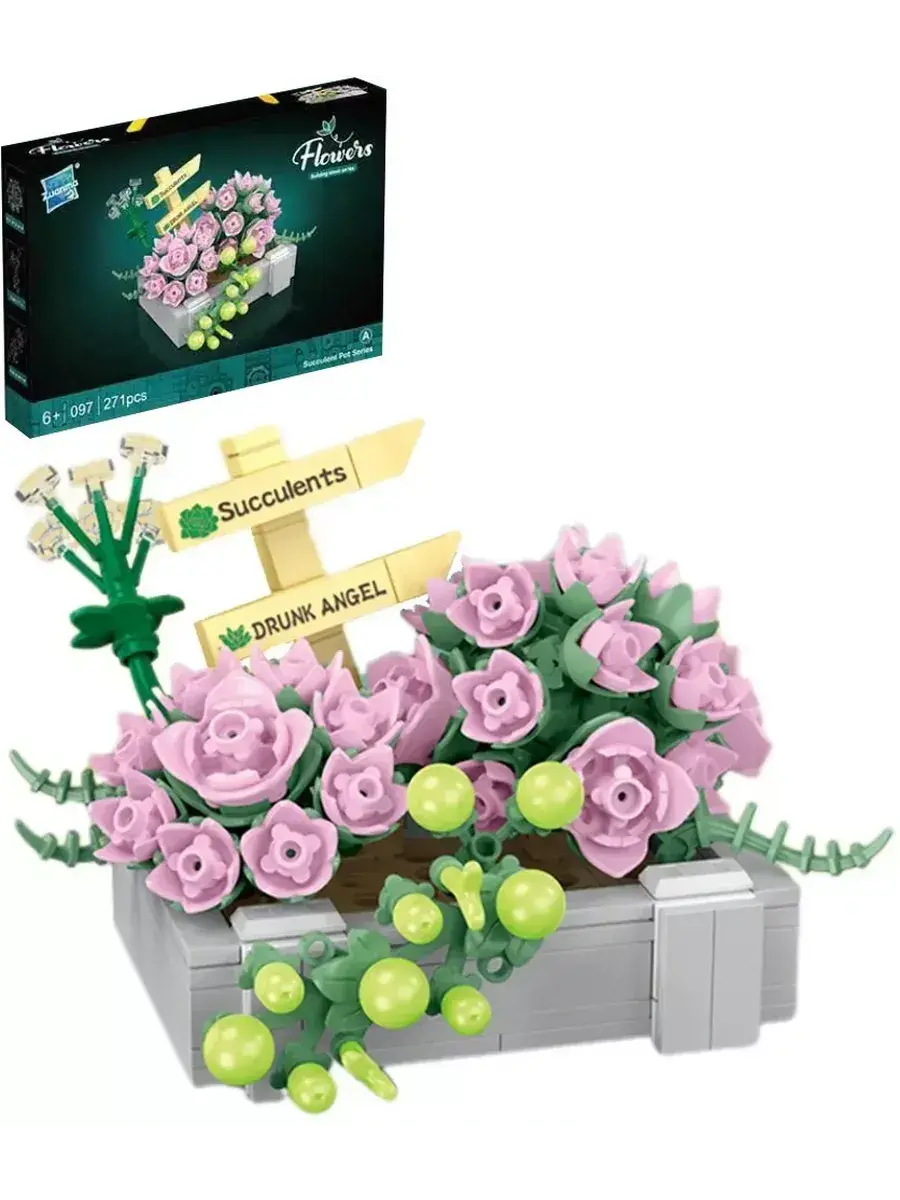 Конструктор Цветы суккуленты в горшке станет отличным подарком не только для ребенка, но и для взрослой девушки. Невероятно нежный, красивый набор наполнит время сборки релаксом и восстановлением. Детали приятные на ощупь, их легко совмещать между собой. Готовую модель можно поставить рядом со светильником и получится необычная композиция. Рекомендуем собирать с чашкой горячего чая под любимую музыку!